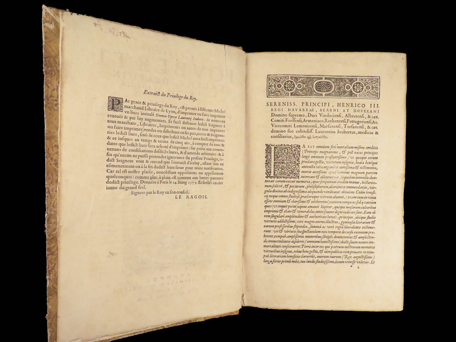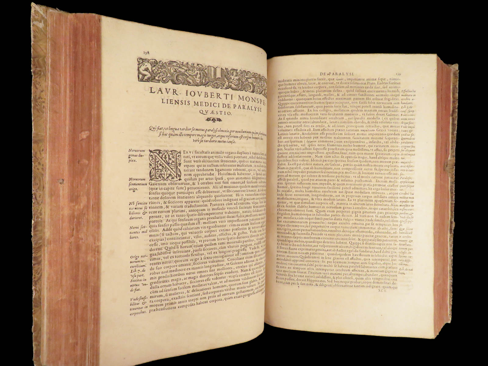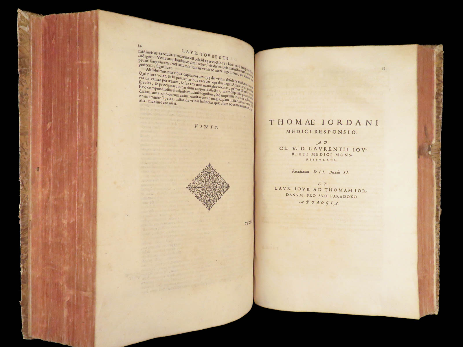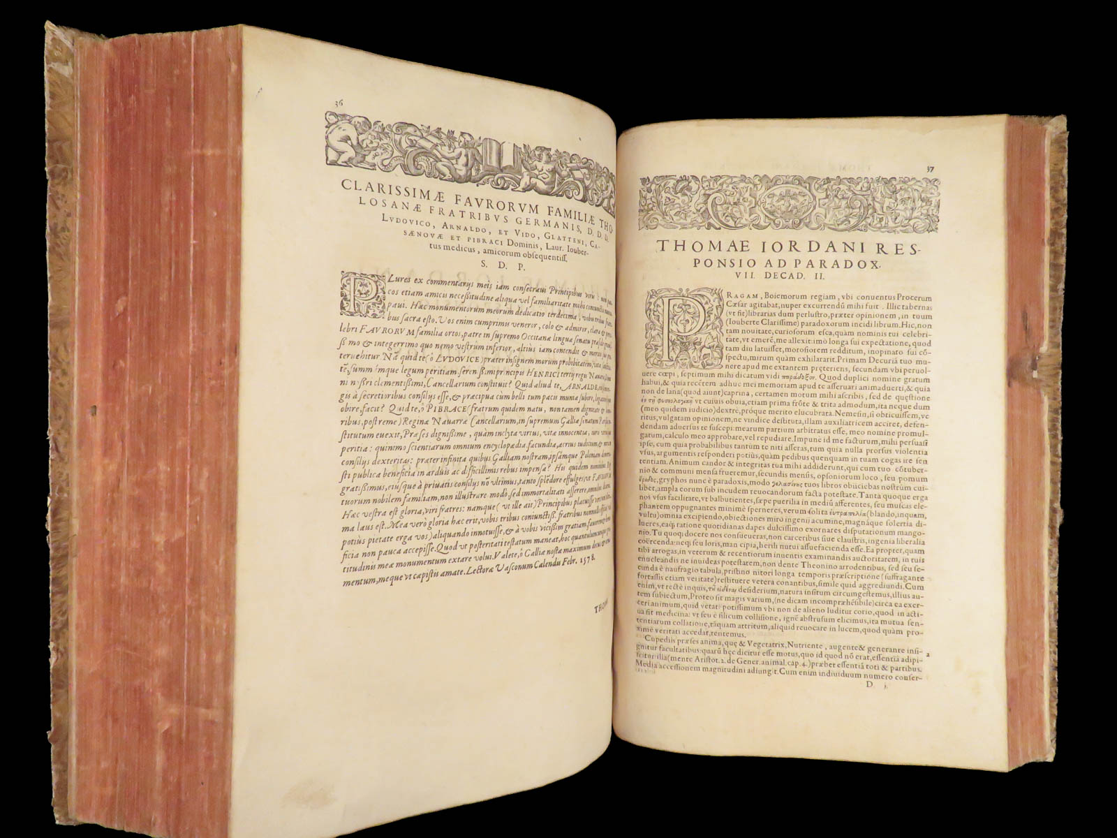 An enormous 16th-century folio of the medical works of French physician Laurent Joubert. Joubert was a royal physician serving Queen Catherine de Medici and Henry III.