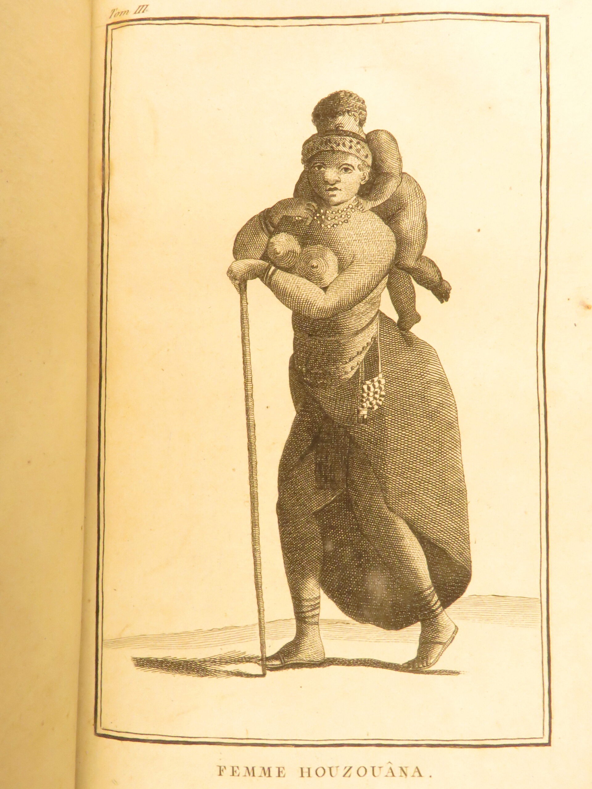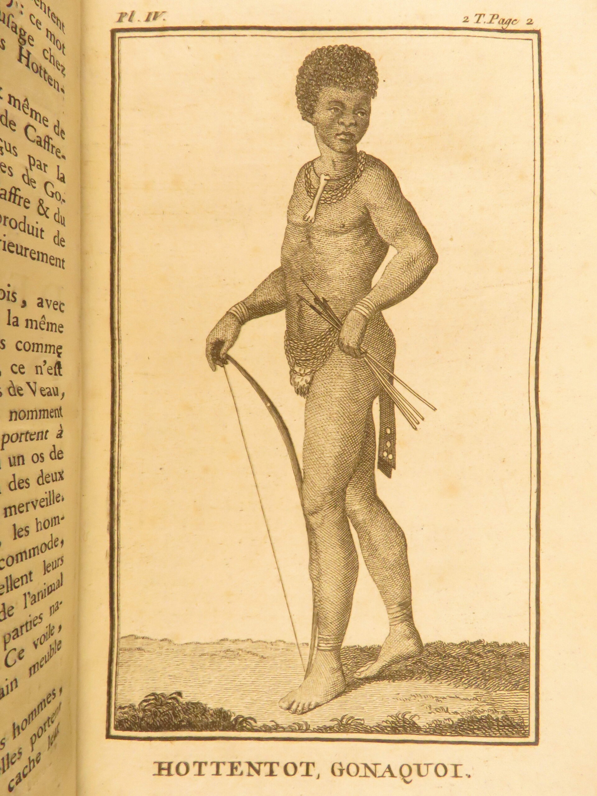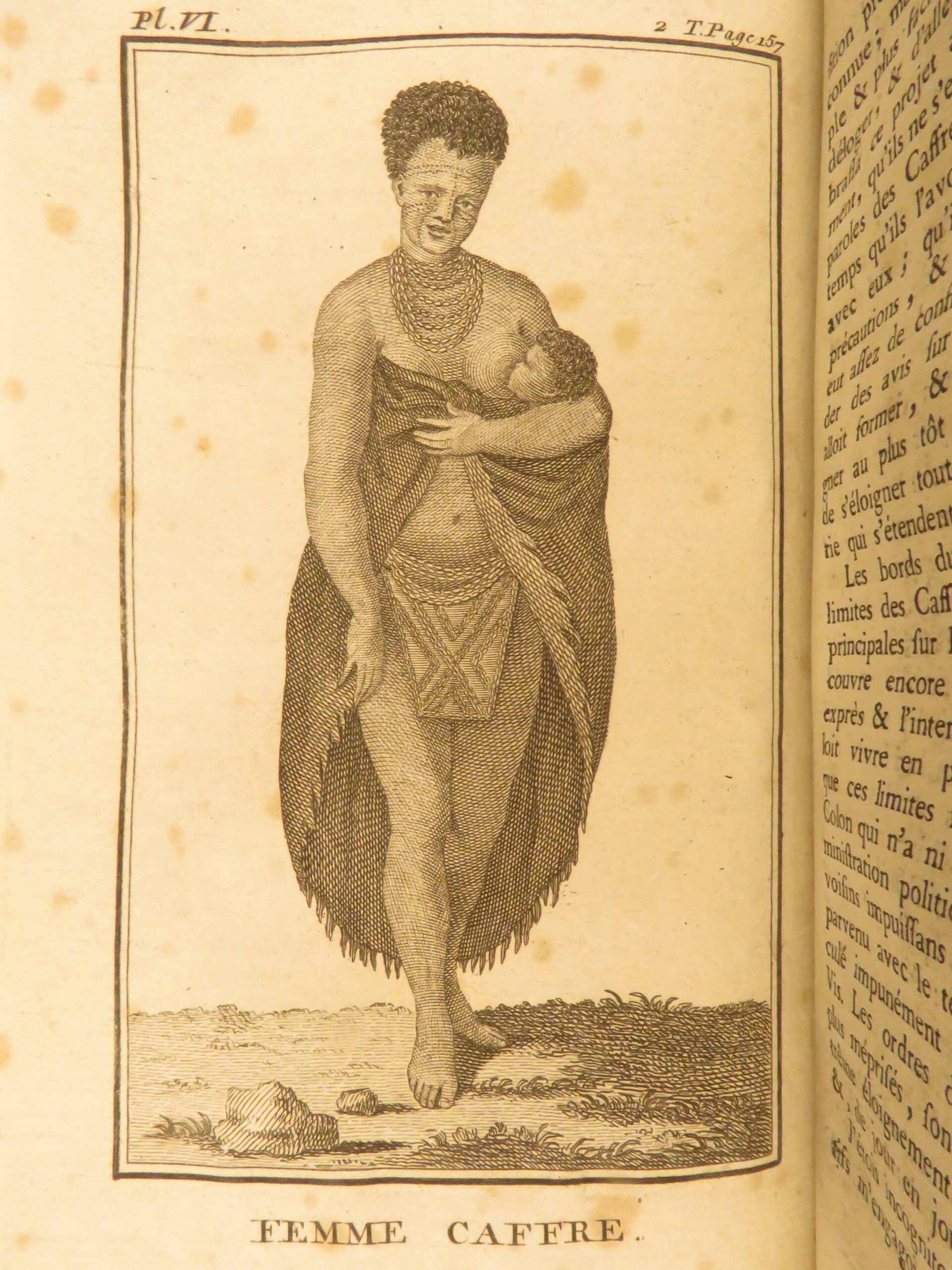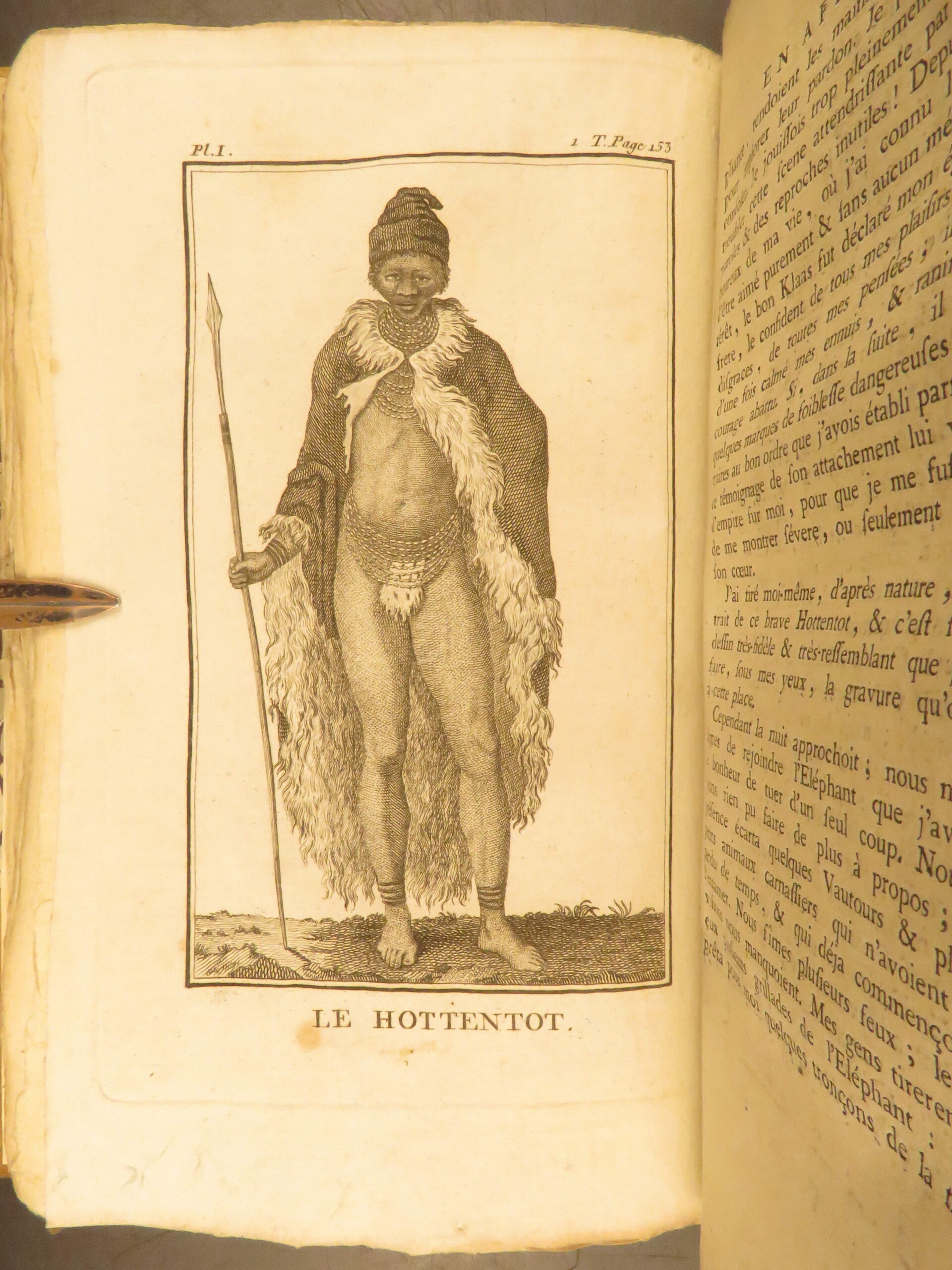 This particular 1791 edition of Le Vaillant is notable for including the often extracted and censored ‘Hottentot Woman’ engraving. It also includes the 1797 printing of Le Vaillant’s Second Voyage. A beautiful five-volume set.