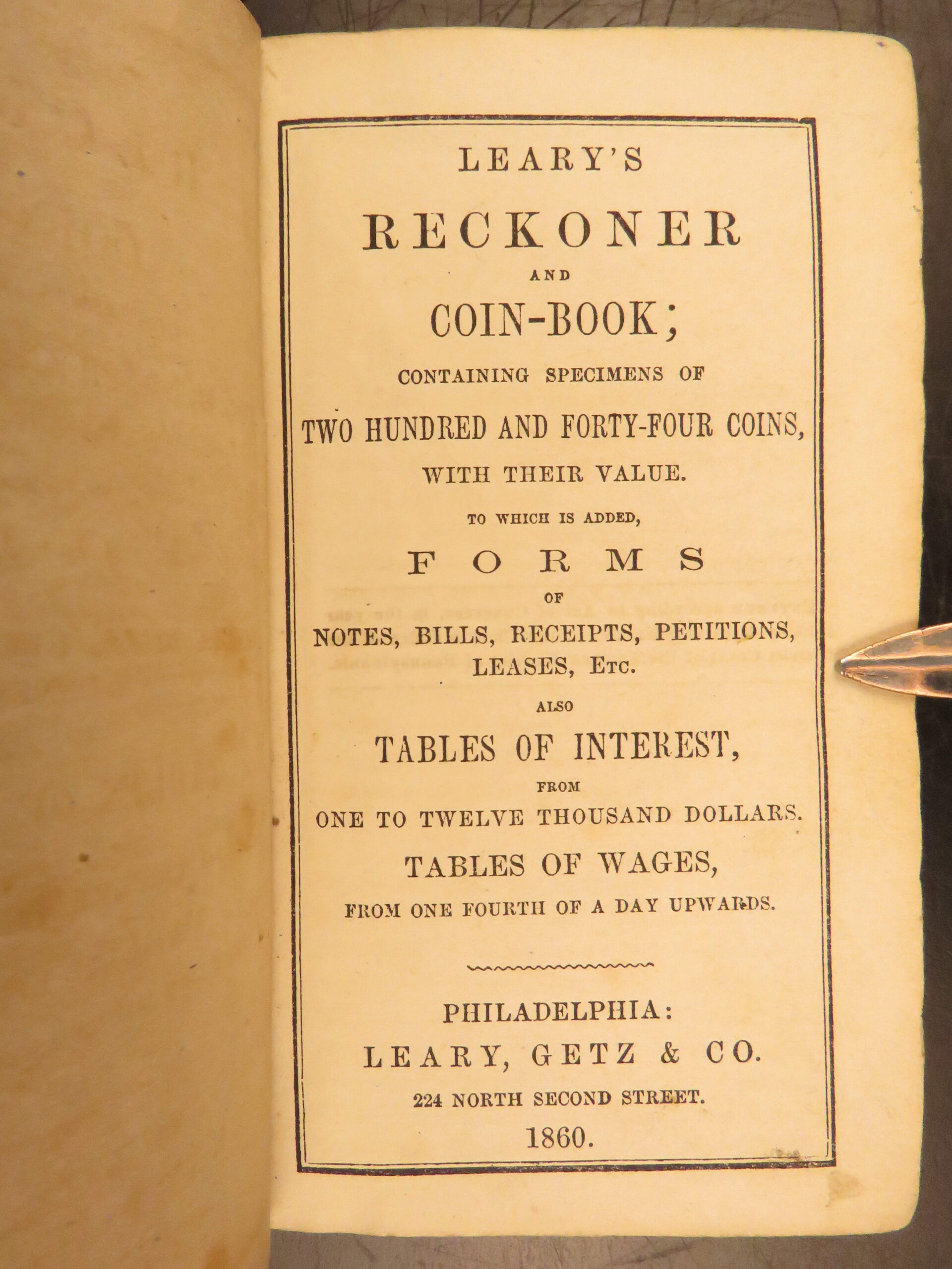 1860 – Leary’s Ready-Reckoner & Coin Book | 244 Engraved Coins & Math Tables