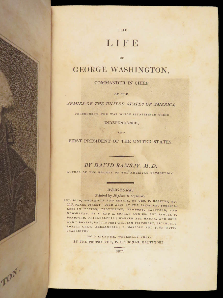 The life of george washington – david ramsay – 1807 | first edition | first edition of david ramsay’s life of george washington (new york, 1807), a cornerstone early biography that chronicles washington’s leadership and the revolutionary era with a portrait frontispiece and original leather binding.