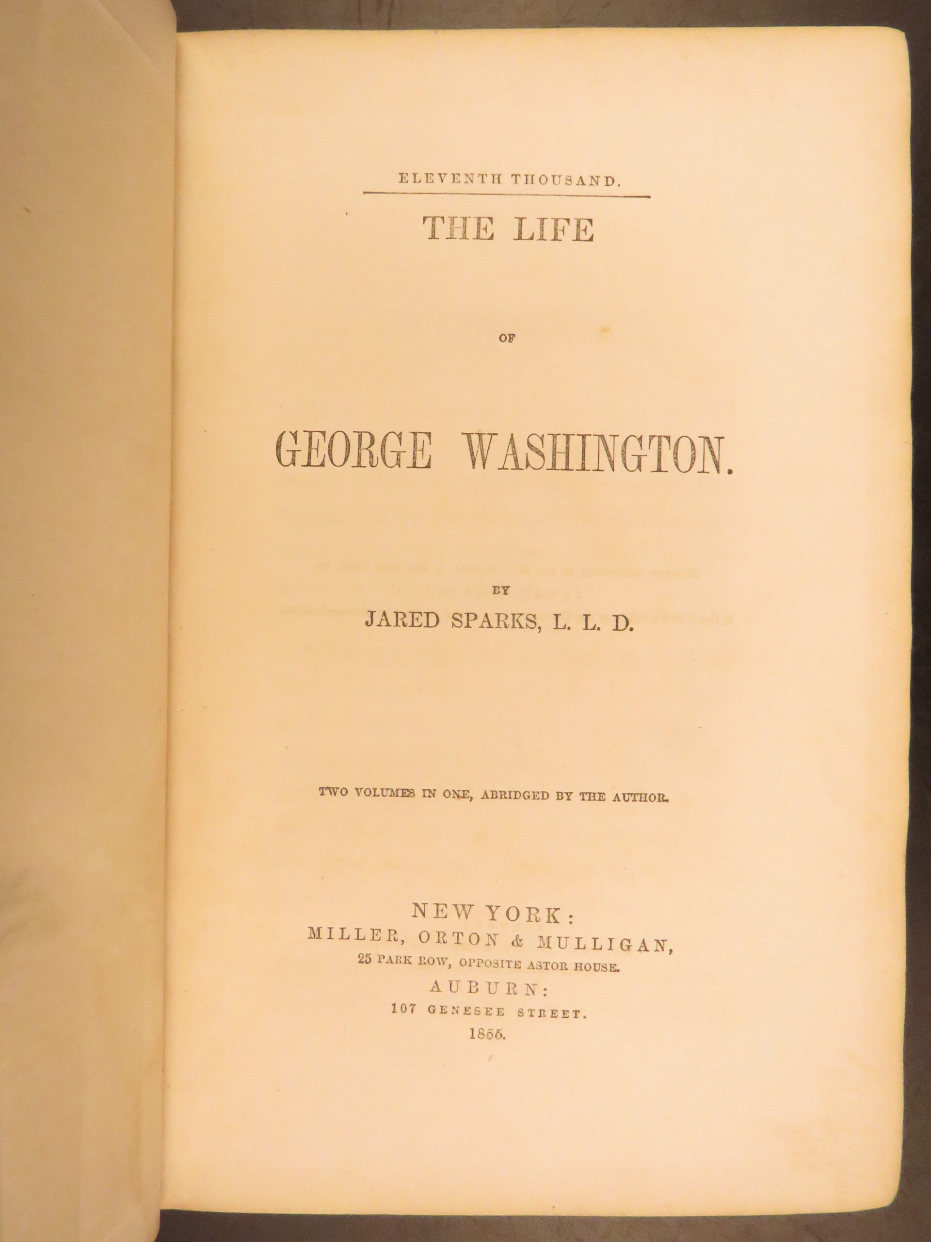 1855 – life of george washington – jared sparks | early americana & colonial united states | <em>the life of george washington</em> by jared sparks condenses his earlier twelve-volume collection of the first u. S. President’s writings, integrating what were previously unpublished manuscripts and archival documents into a convenient single-volume edition.
