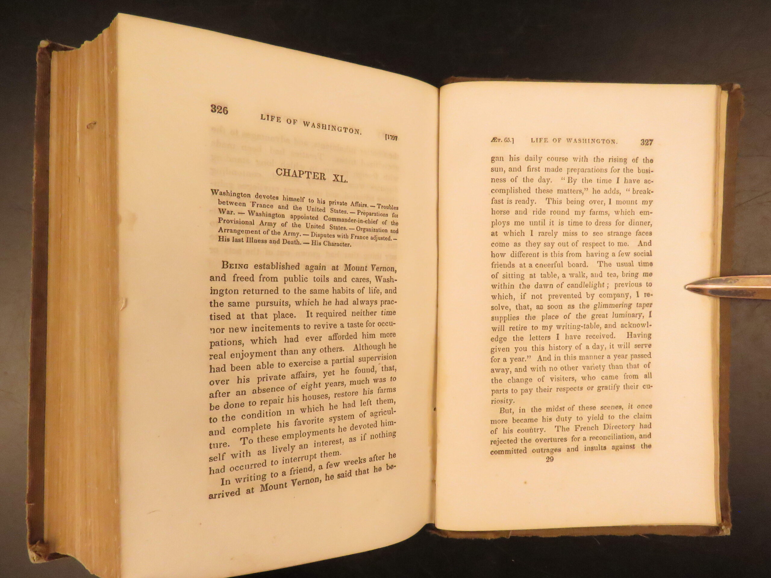 Very Good. Bound in original publisher’s cloth with blind-stamped boards and gilt spine lettering. Corners and spine show light wear. The text block is secure. Original endpapers. The two full-page engraved portraits are sharp, and the facsimile leaf reproducing Washington’s signature is present and intact. Internally, the pages show consistent toning with minimal foxing.