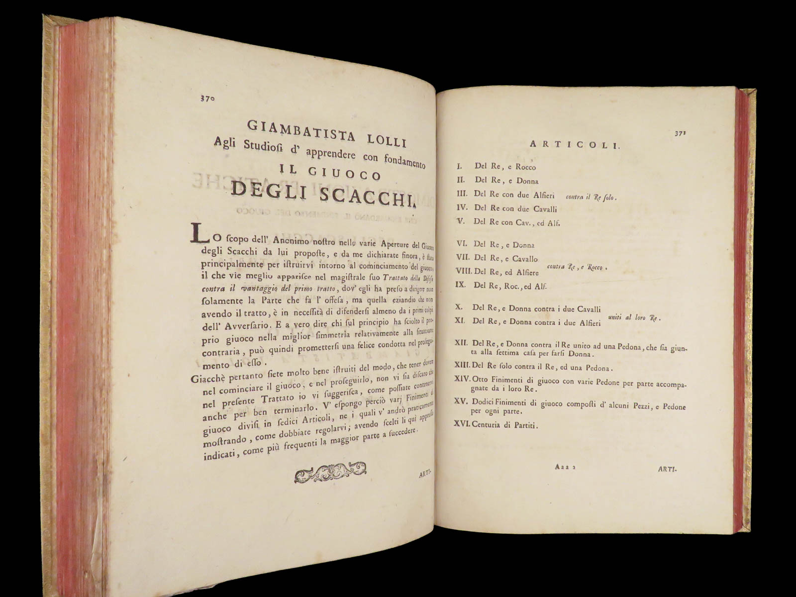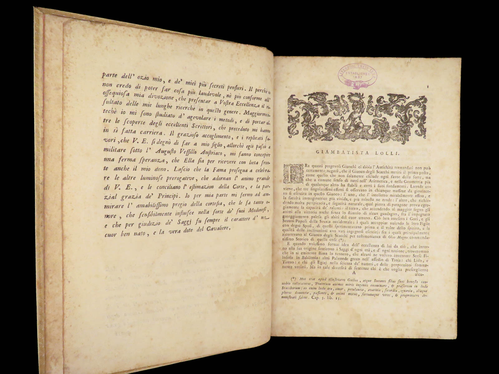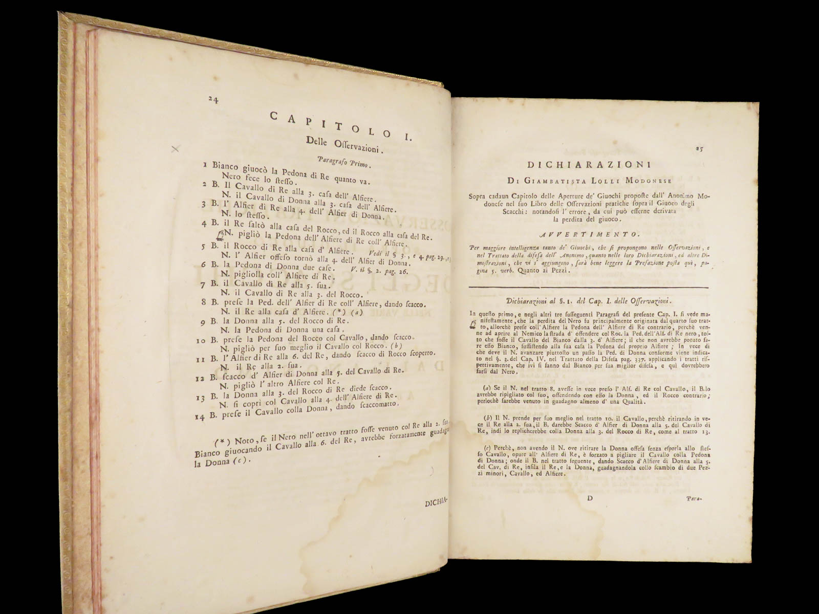Osservazioni sopra il giuoco degli scacchi – Lolli – 1763 | First Edition | Chess Manual
