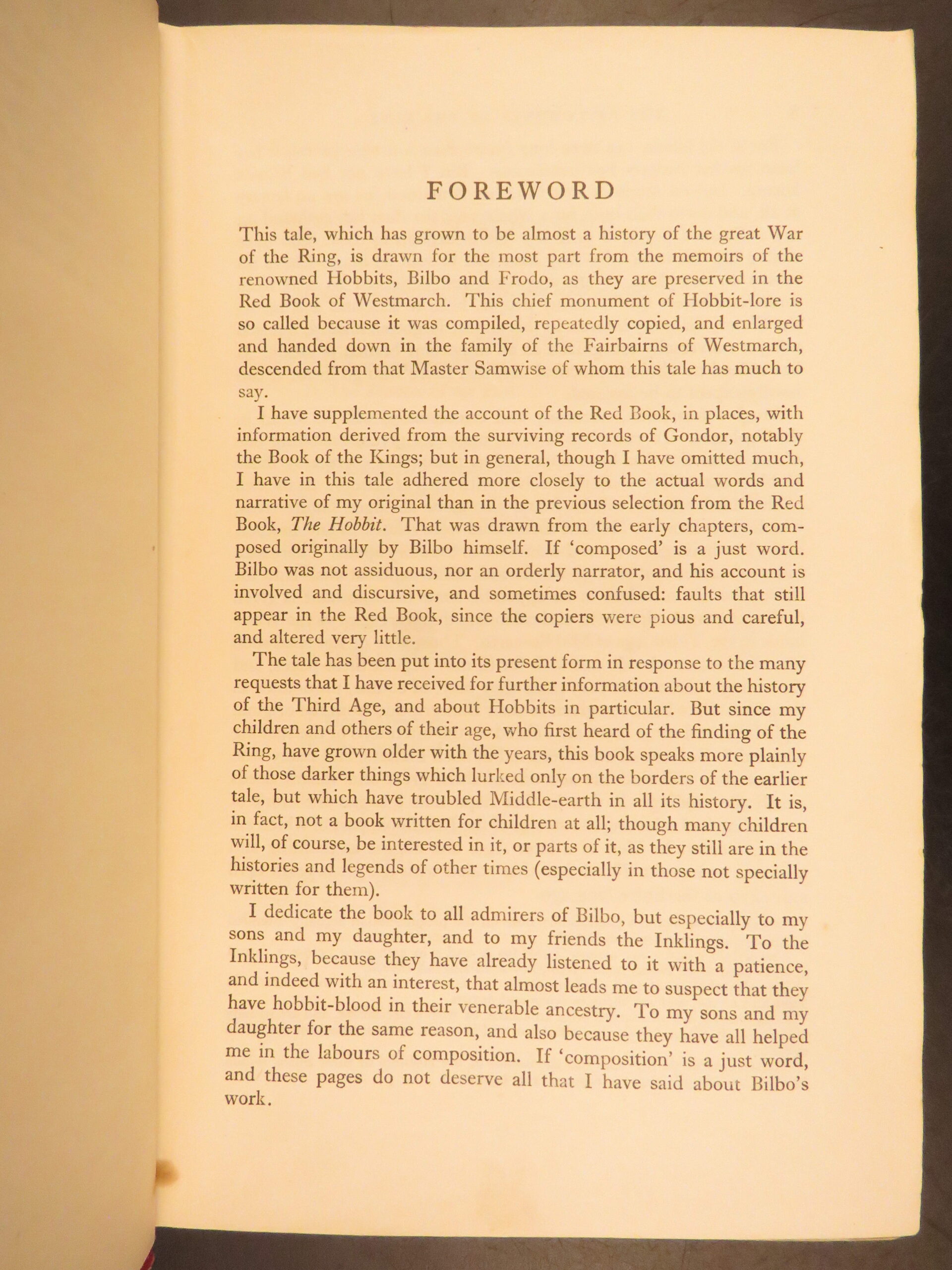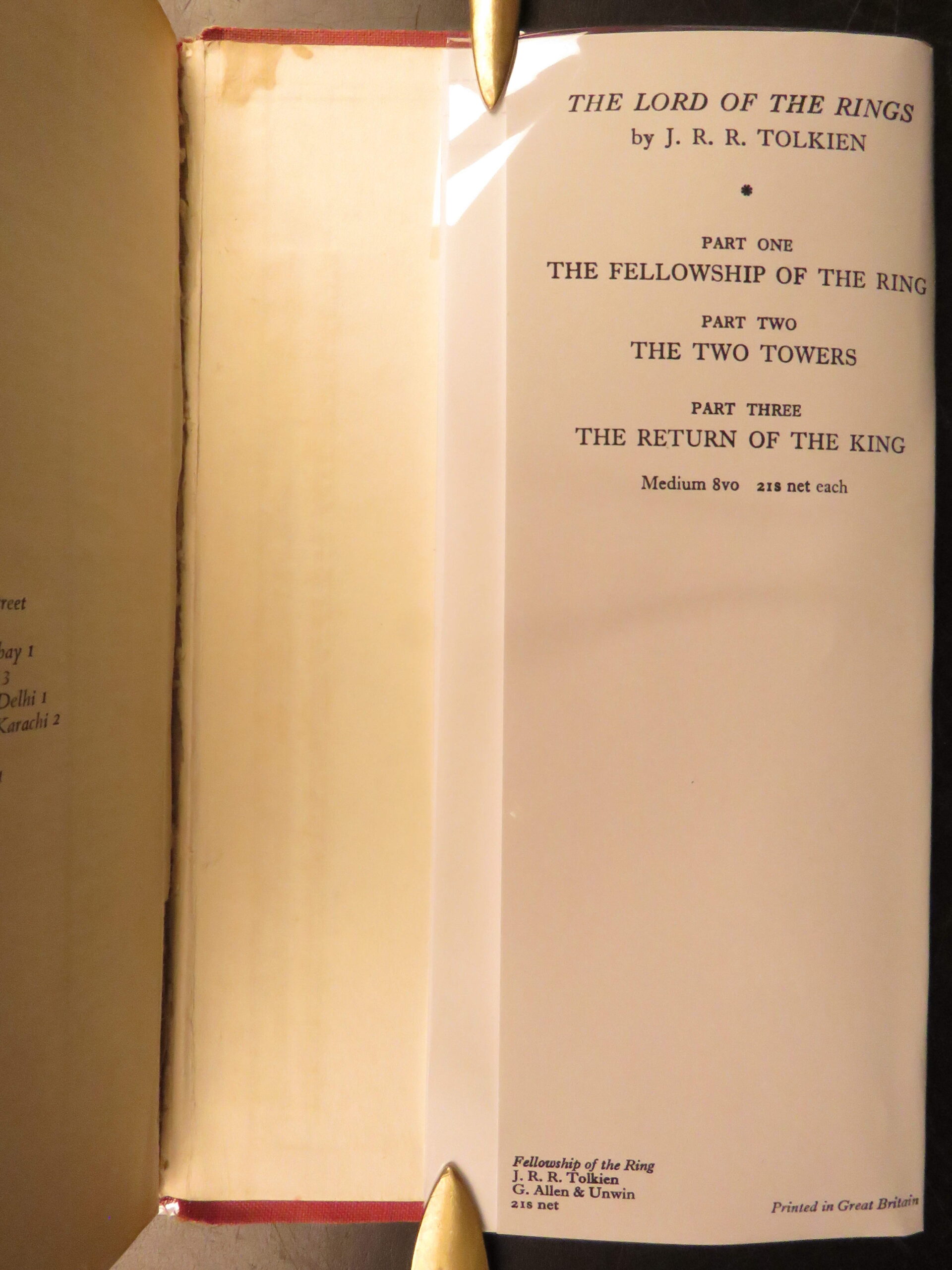 - Illustrations: Full-page map of the Shire in Fellowship; Fold-out map in Return of the King (wanting folding maps from Fellowship and Two Towers)
