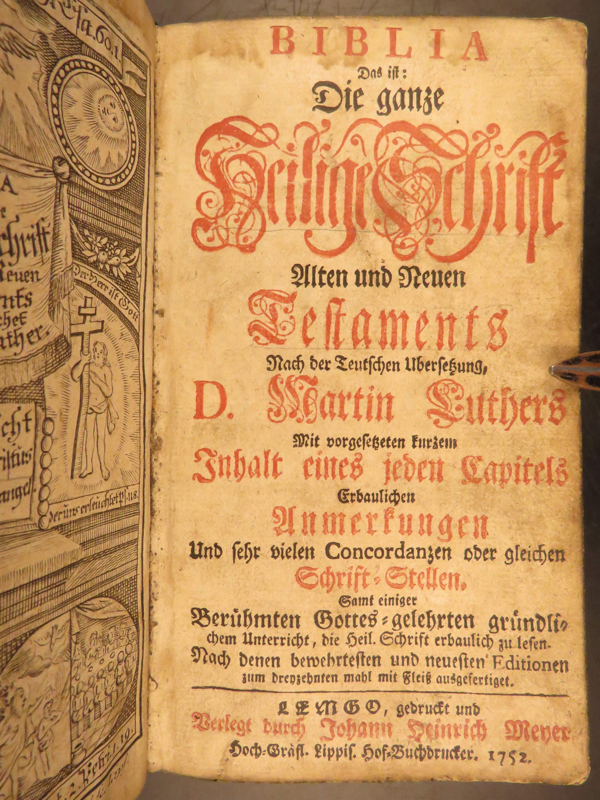 1752 – Martin Luther German Bible | Die Ganze Heilige Schrift | Lemgo Printing