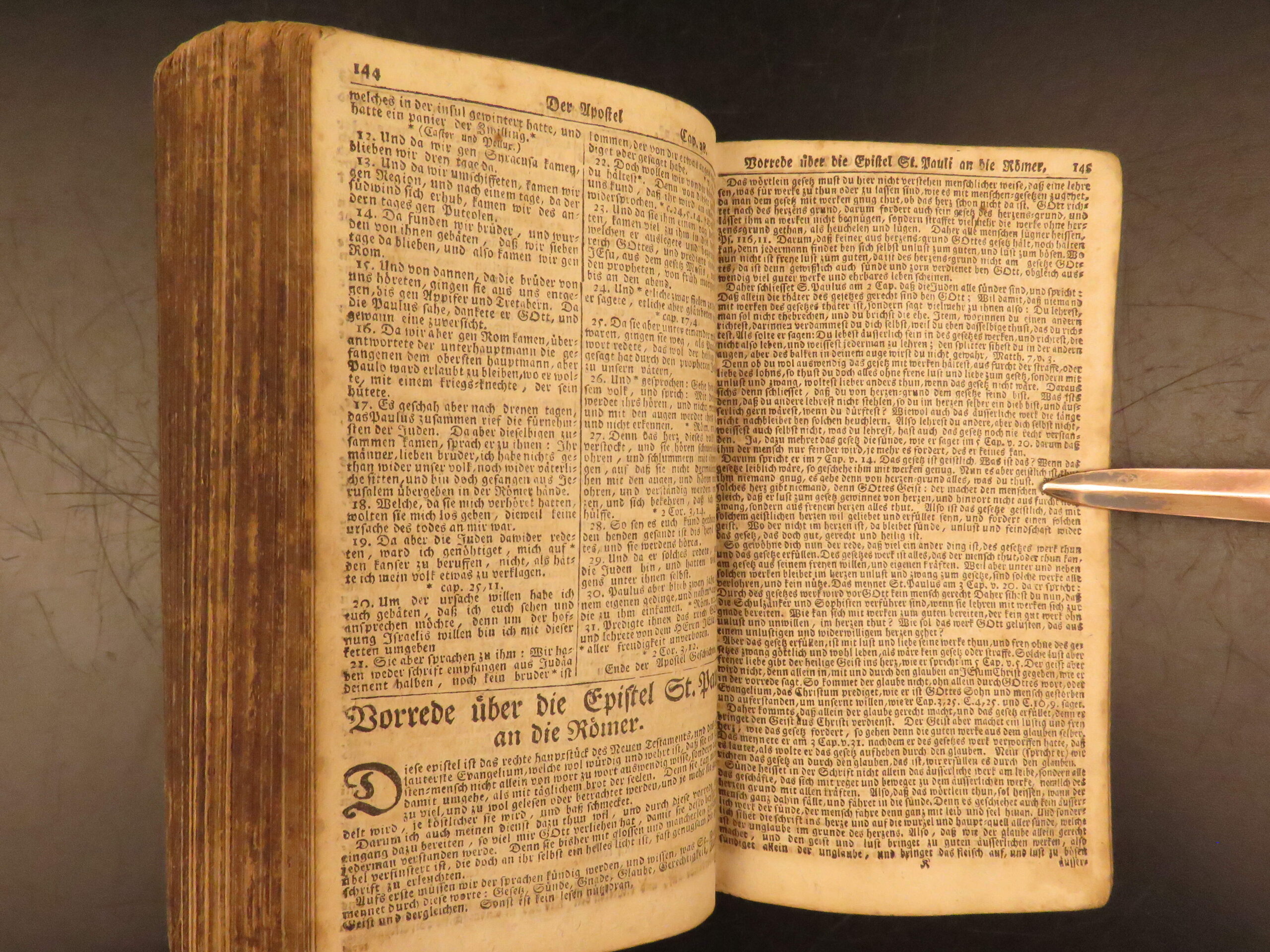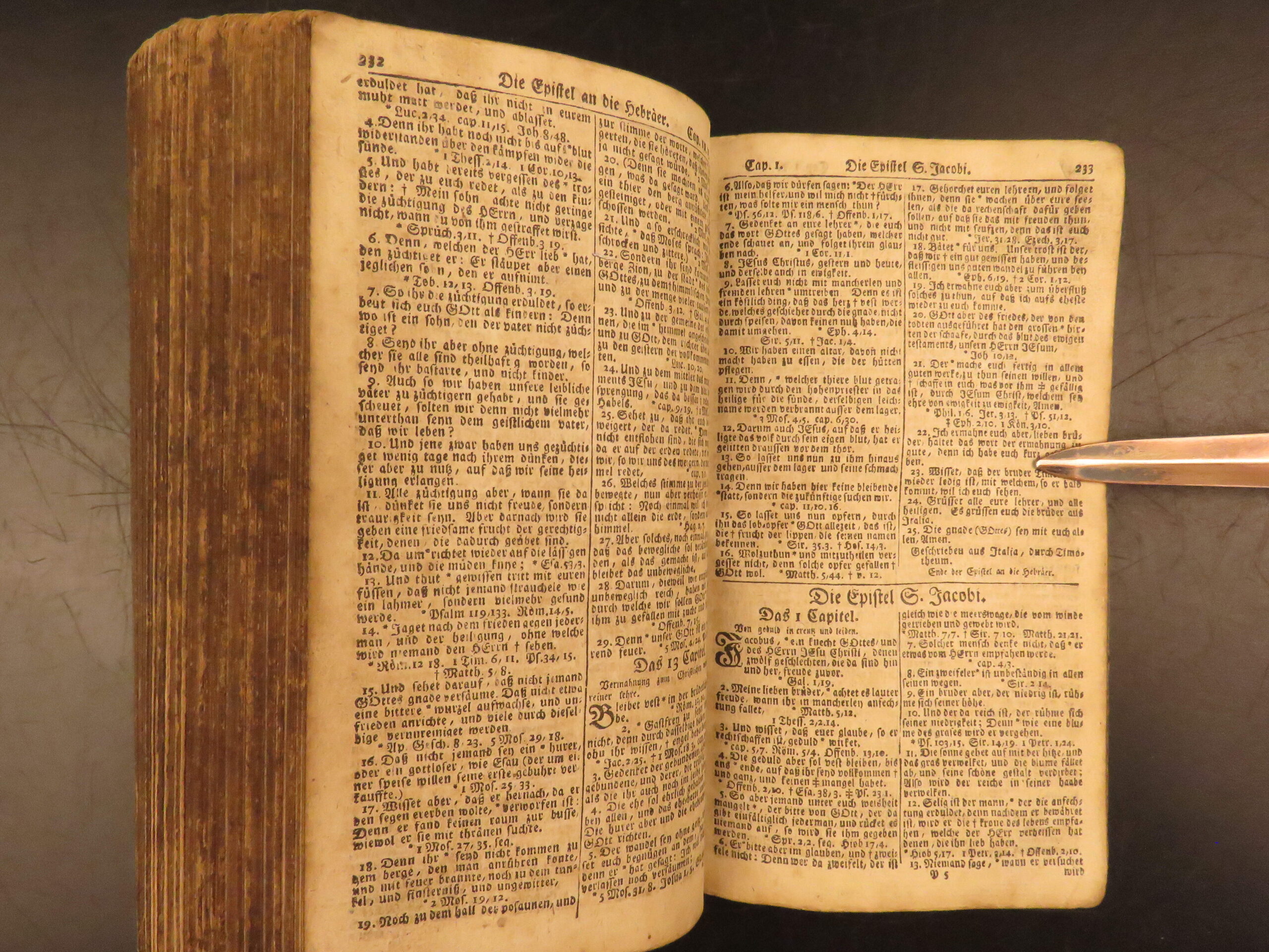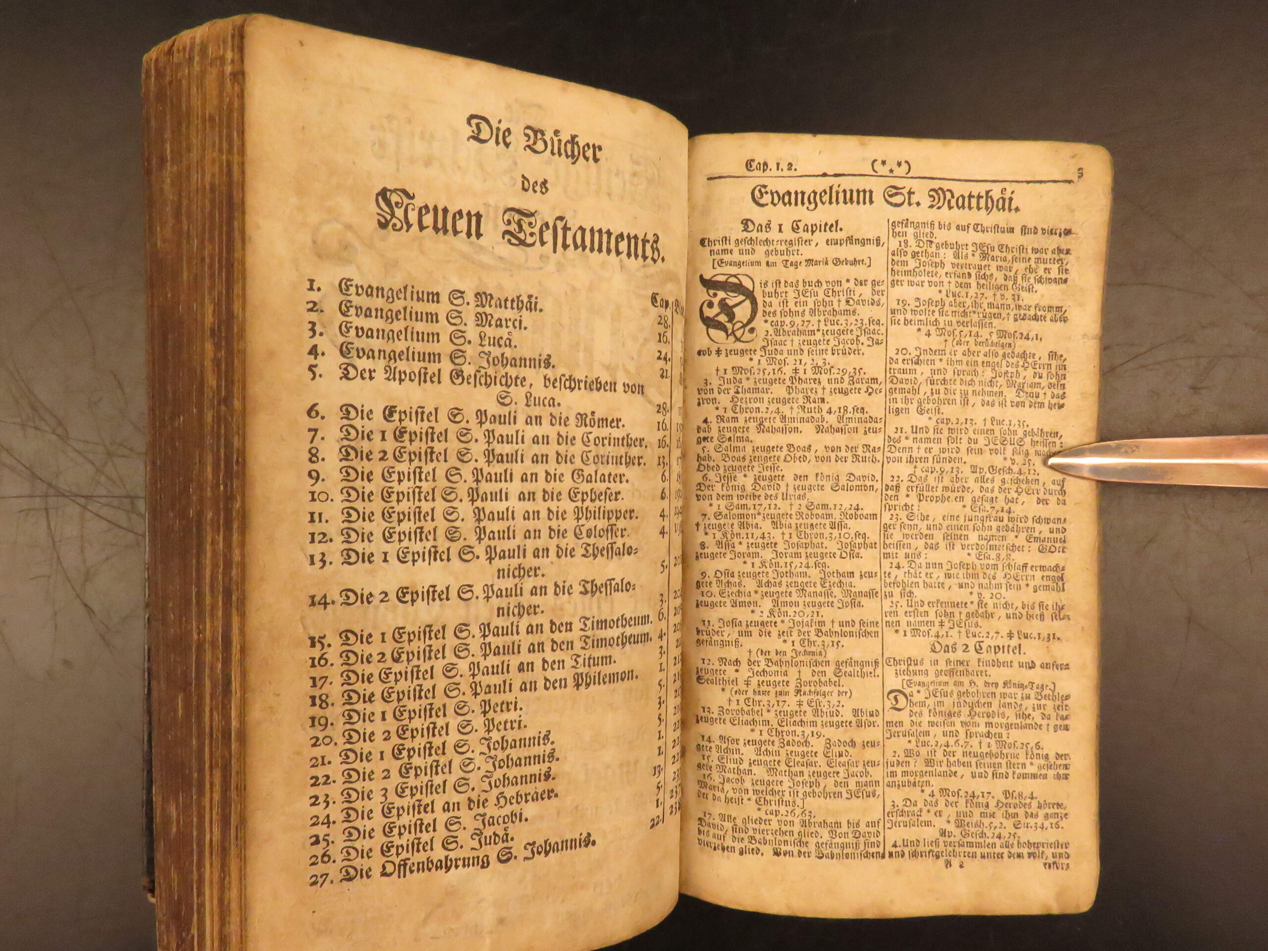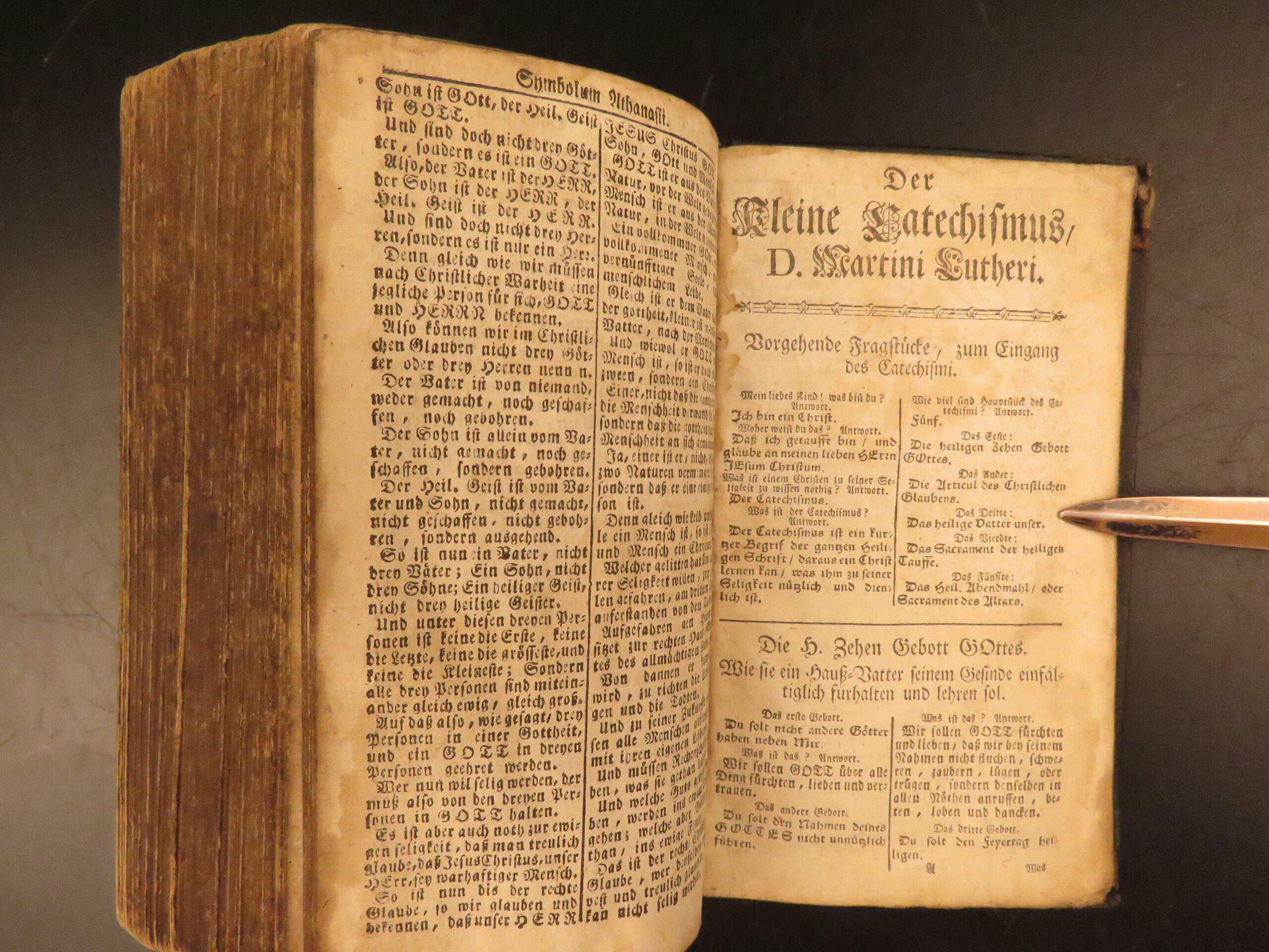 A massive 18th-century Martin Luther German Holy Bible printed in Lemgo! Luther Bibles have always maintained their popularity throughout the centuries both in German and non-German speaking areas. This edition is notable, not only for the Luther translation but also for the inclusion of Lutheran song book and Luther’s own Small Catechism.