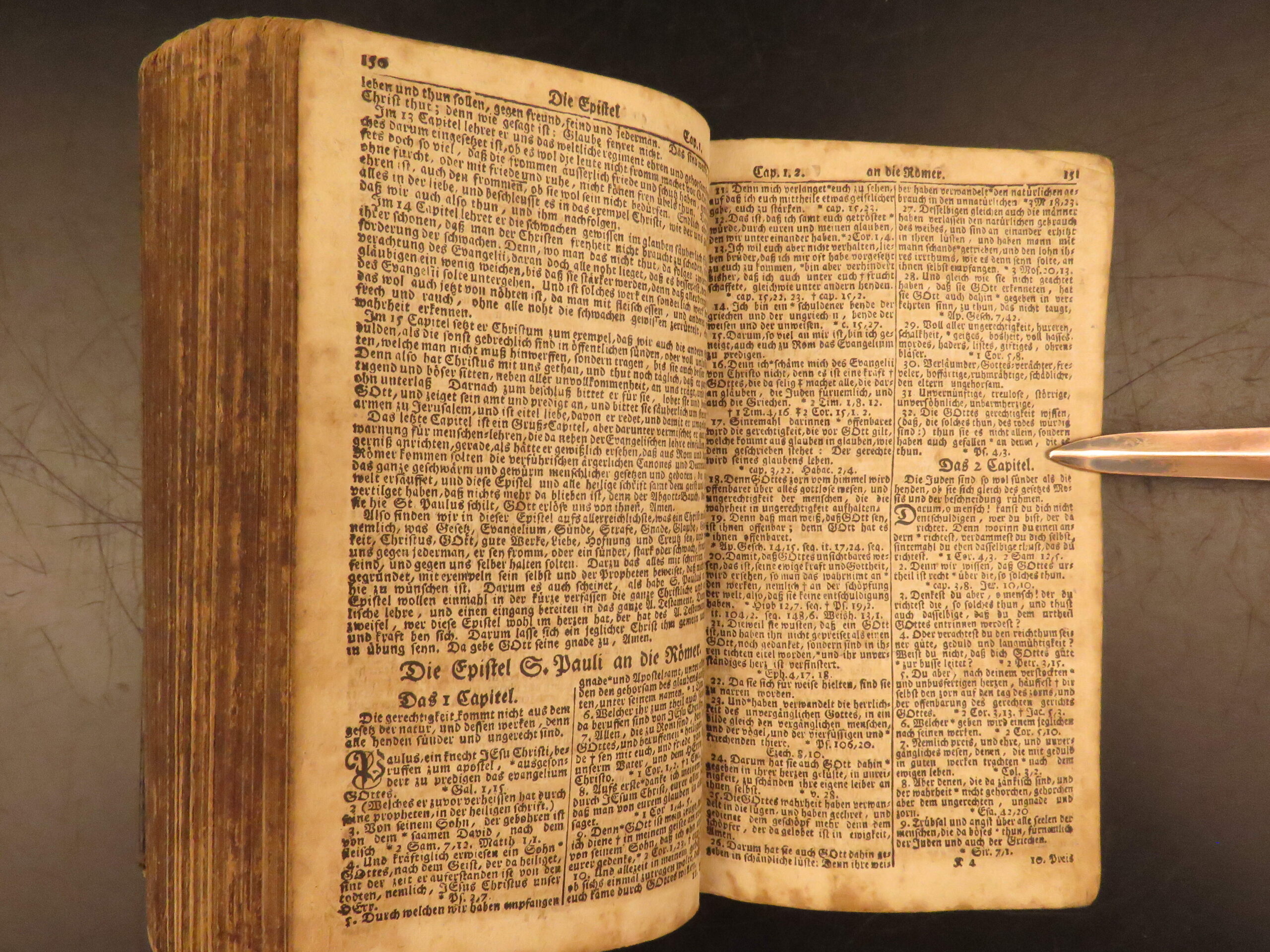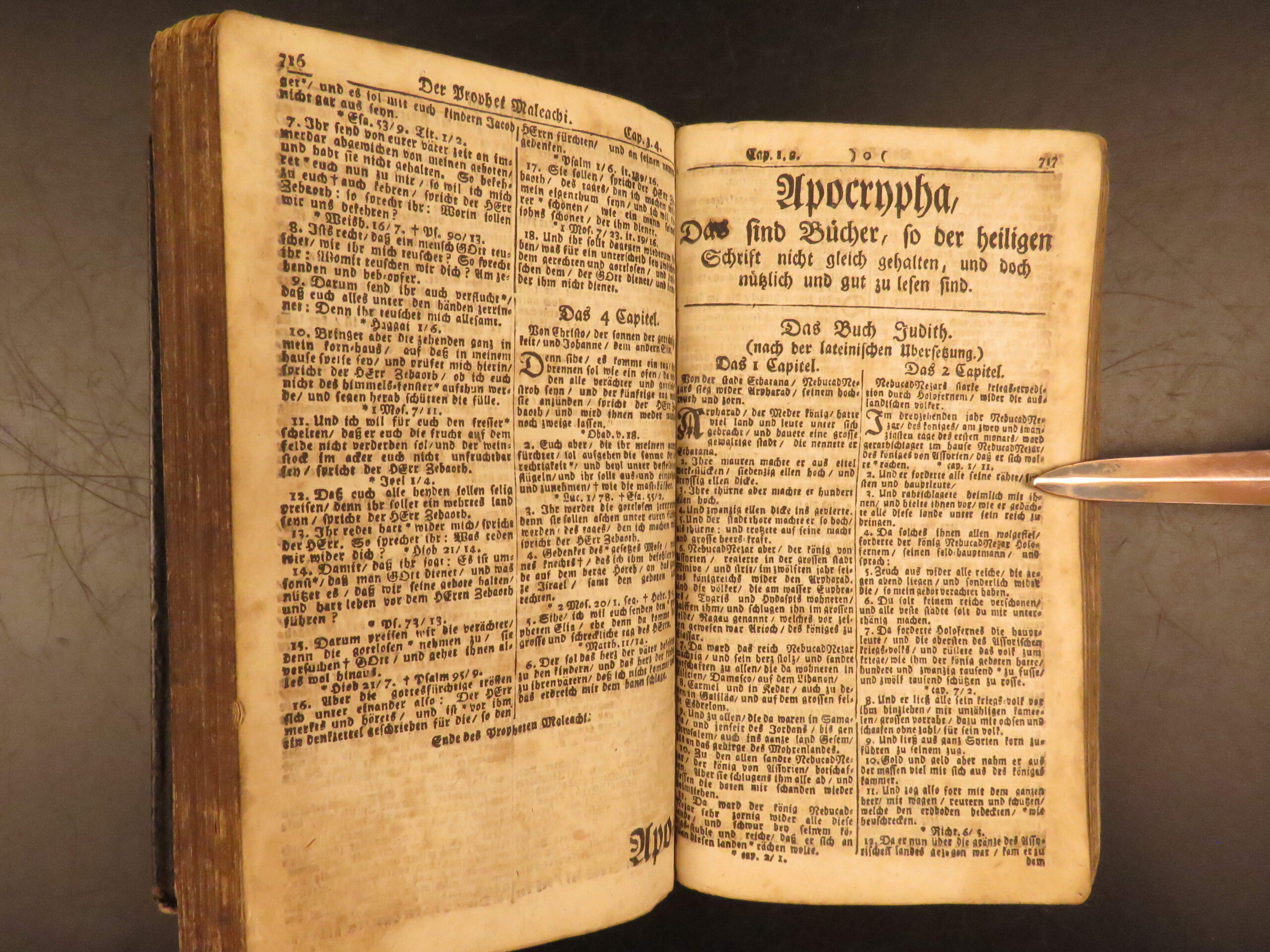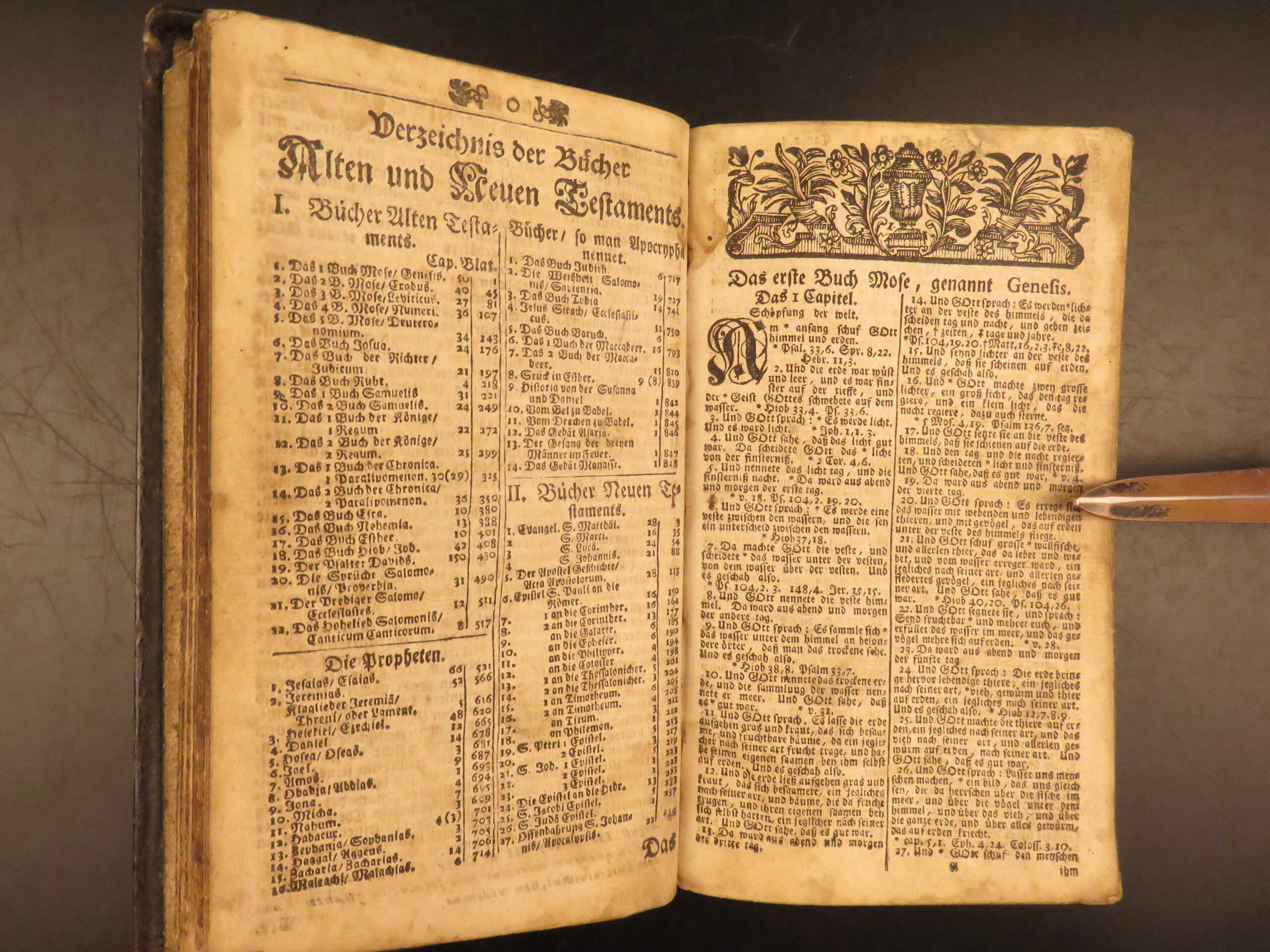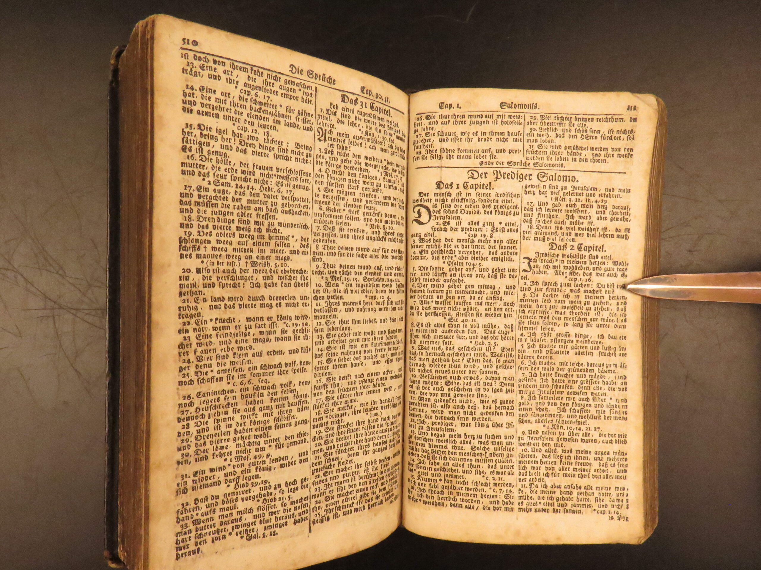 A massive 18th-century Martin Luther German Holy Bible printed in Lemgo! Luther Bibles have always maintained their popularity throughout the centuries both in German and non-German speaking areas. This edition is notable, not only for the Luther translation but also for the inclusion of Lutheran song book and Luther’s own Small Catechism.