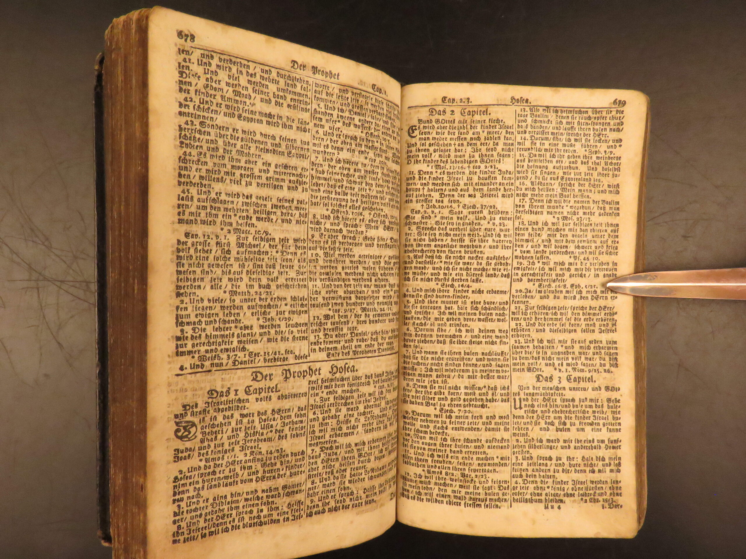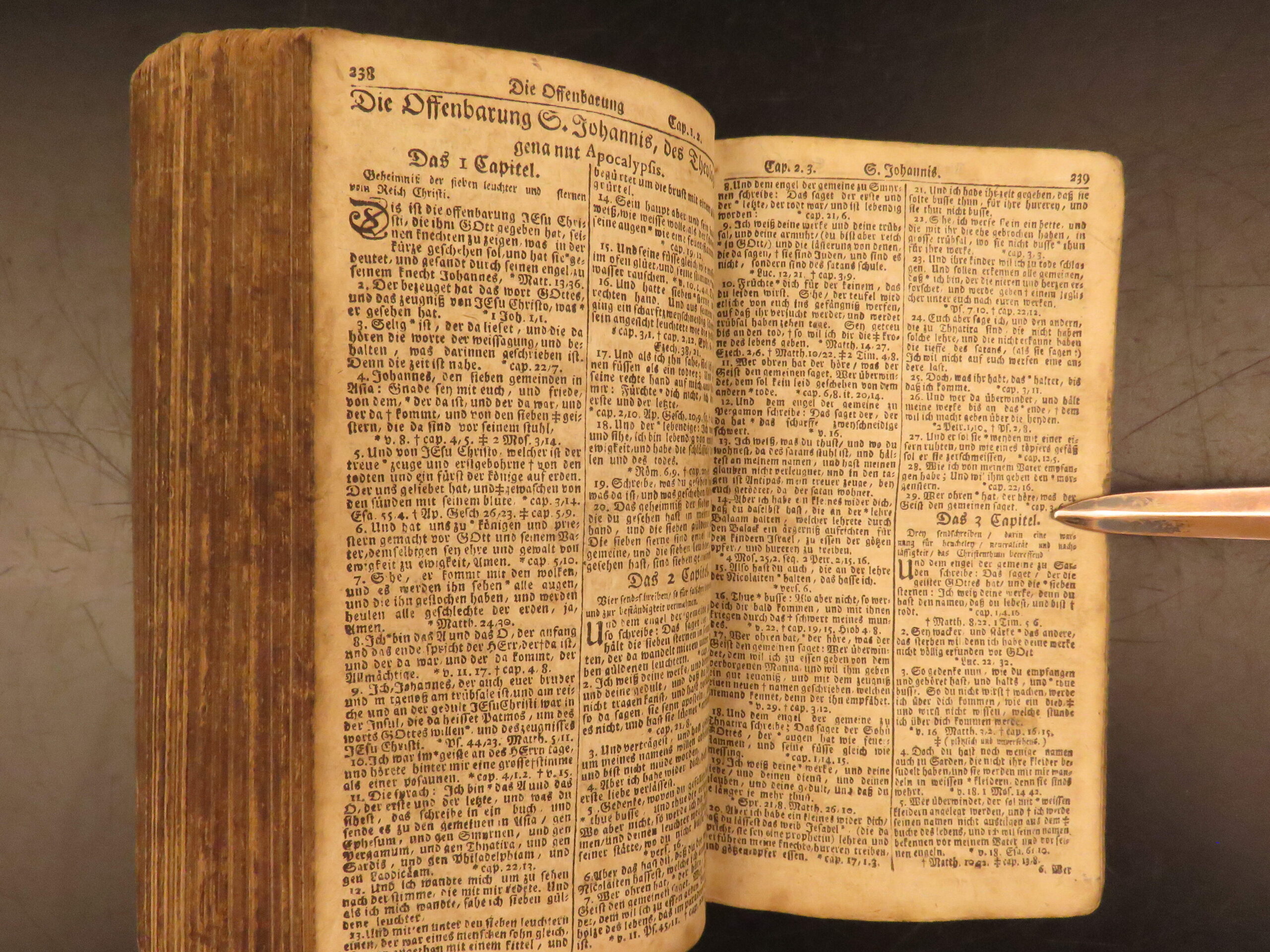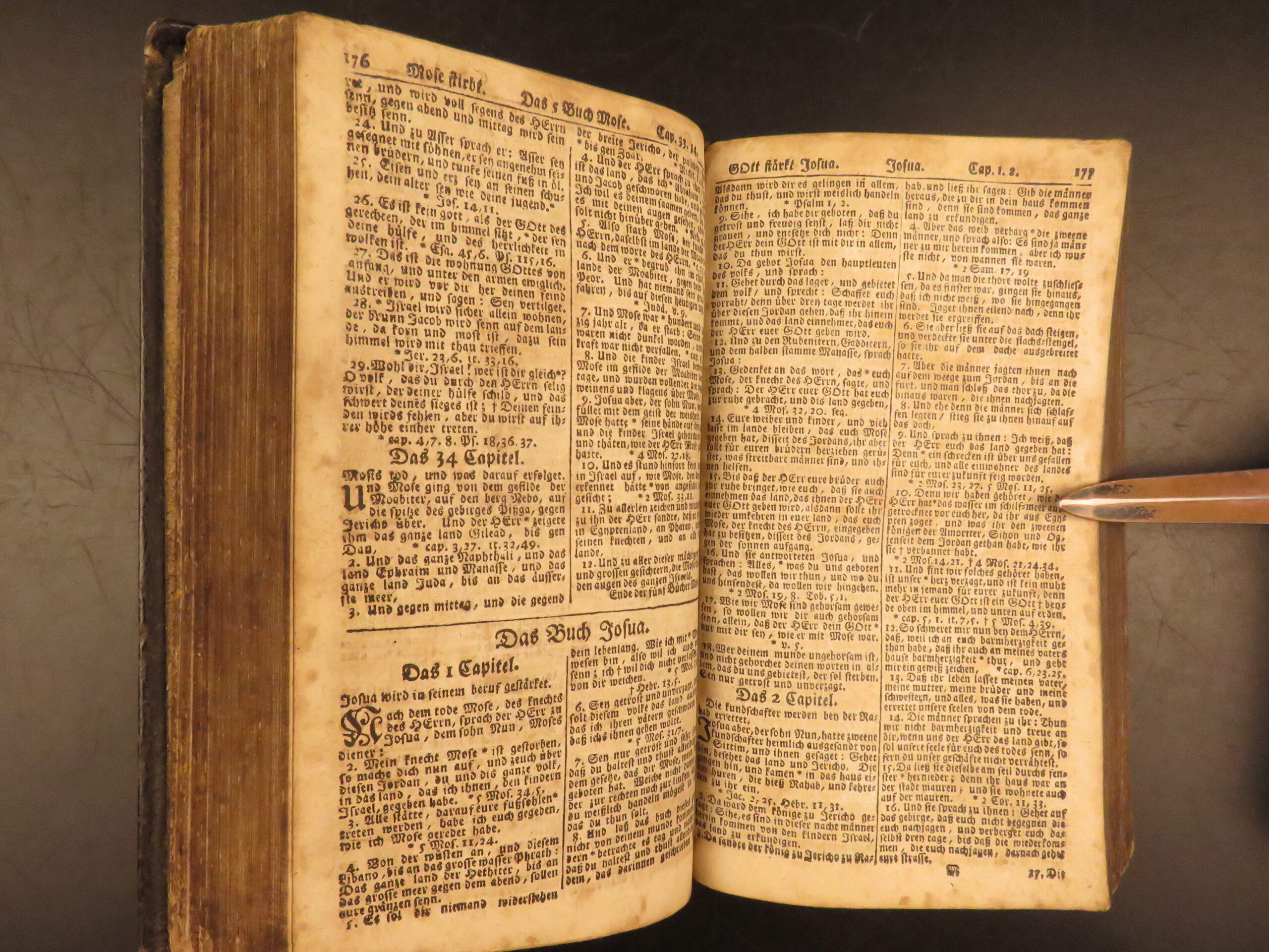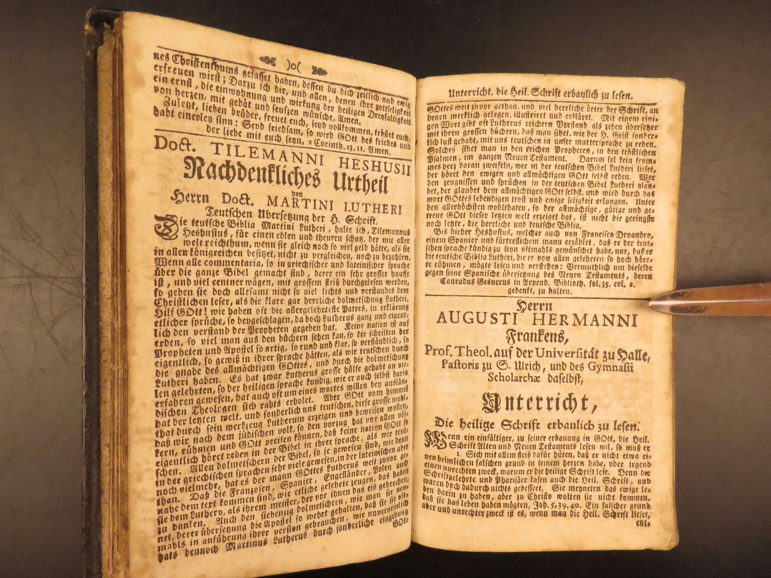 A massive 18th-century Martin Luther German Holy Bible printed in Lemgo! Luther Bibles have always maintained their popularity throughout the centuries both in German and non-German speaking areas. This edition is notable, not only for the Luther translation but also for the inclusion of Lutheran song book and Luther’s own Small Catechism.