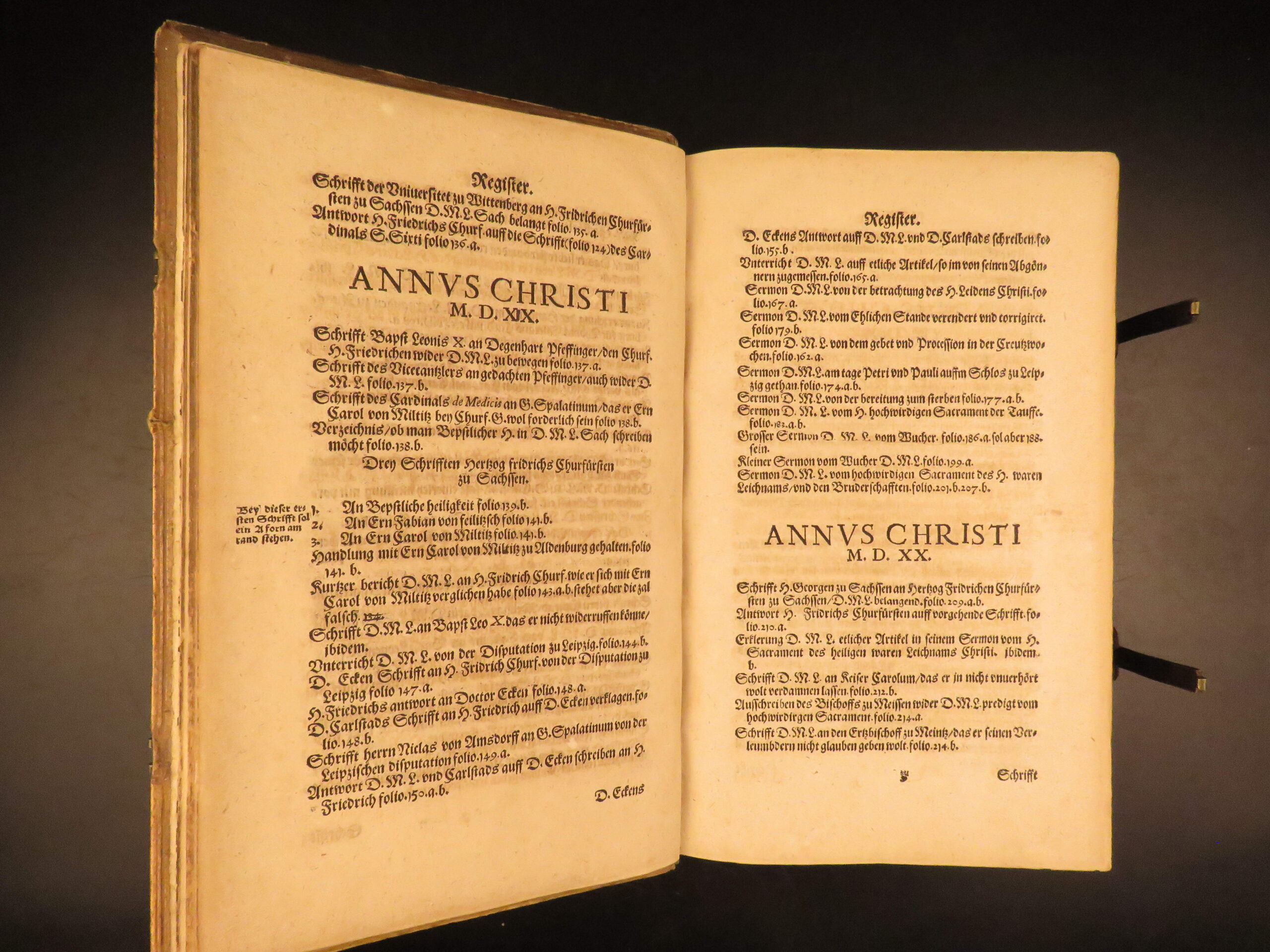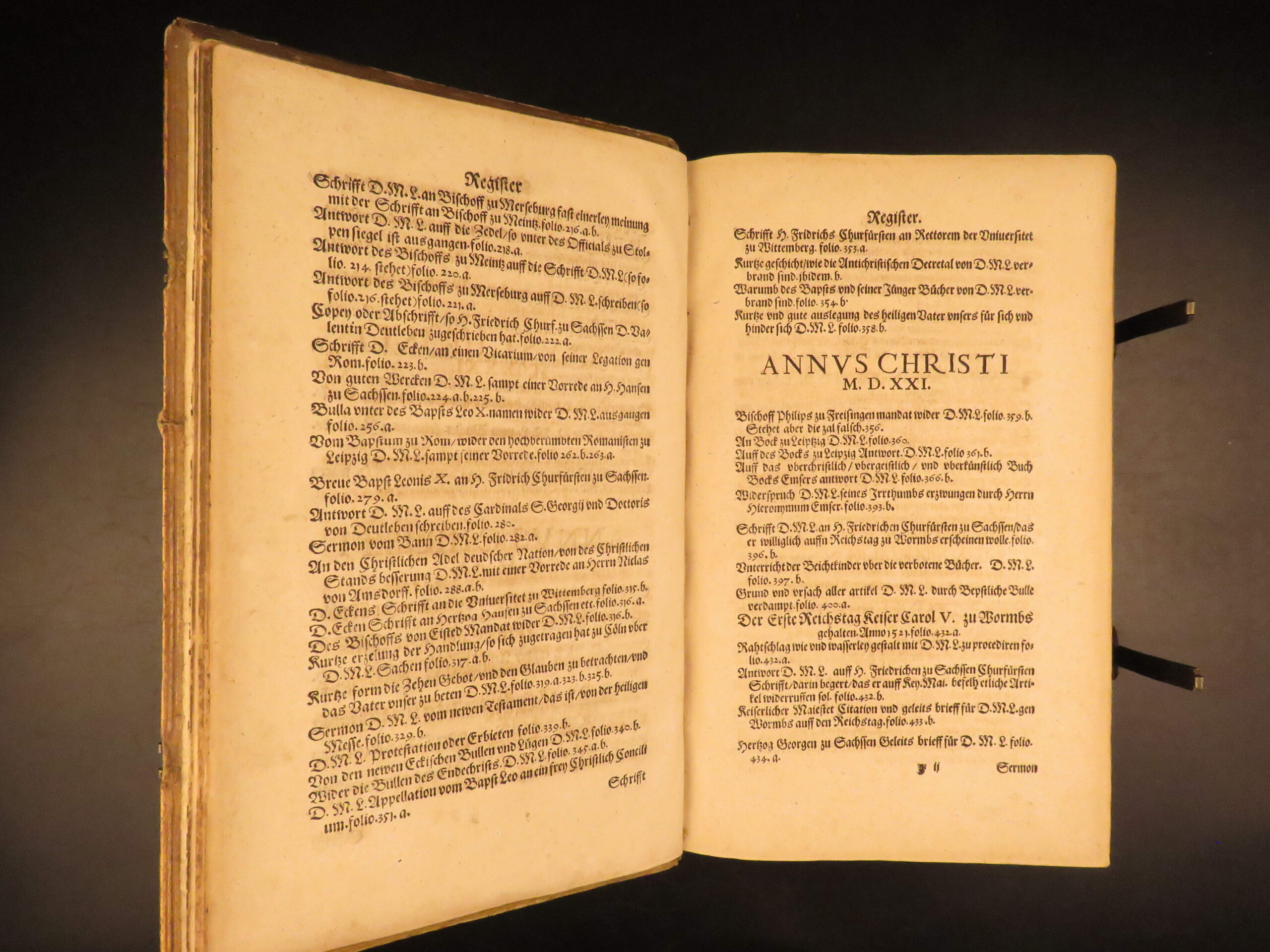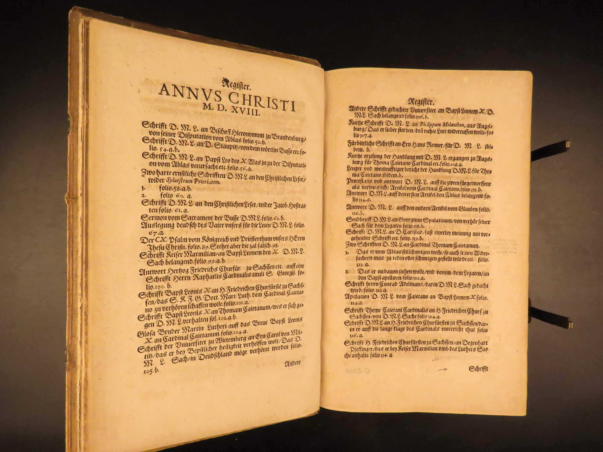 This first volume from the 1567 third edition includes sermons, theological commentary, and historical writings central to early Lutheran thought. Notable texts include the Sermon on the Sacrament of Penance, commentary on the Lord’s Prayer, Psalms commentary, the Augsburg meeting with Cardinal Cajetan in 1518, and the Exposition of the Magnificat.