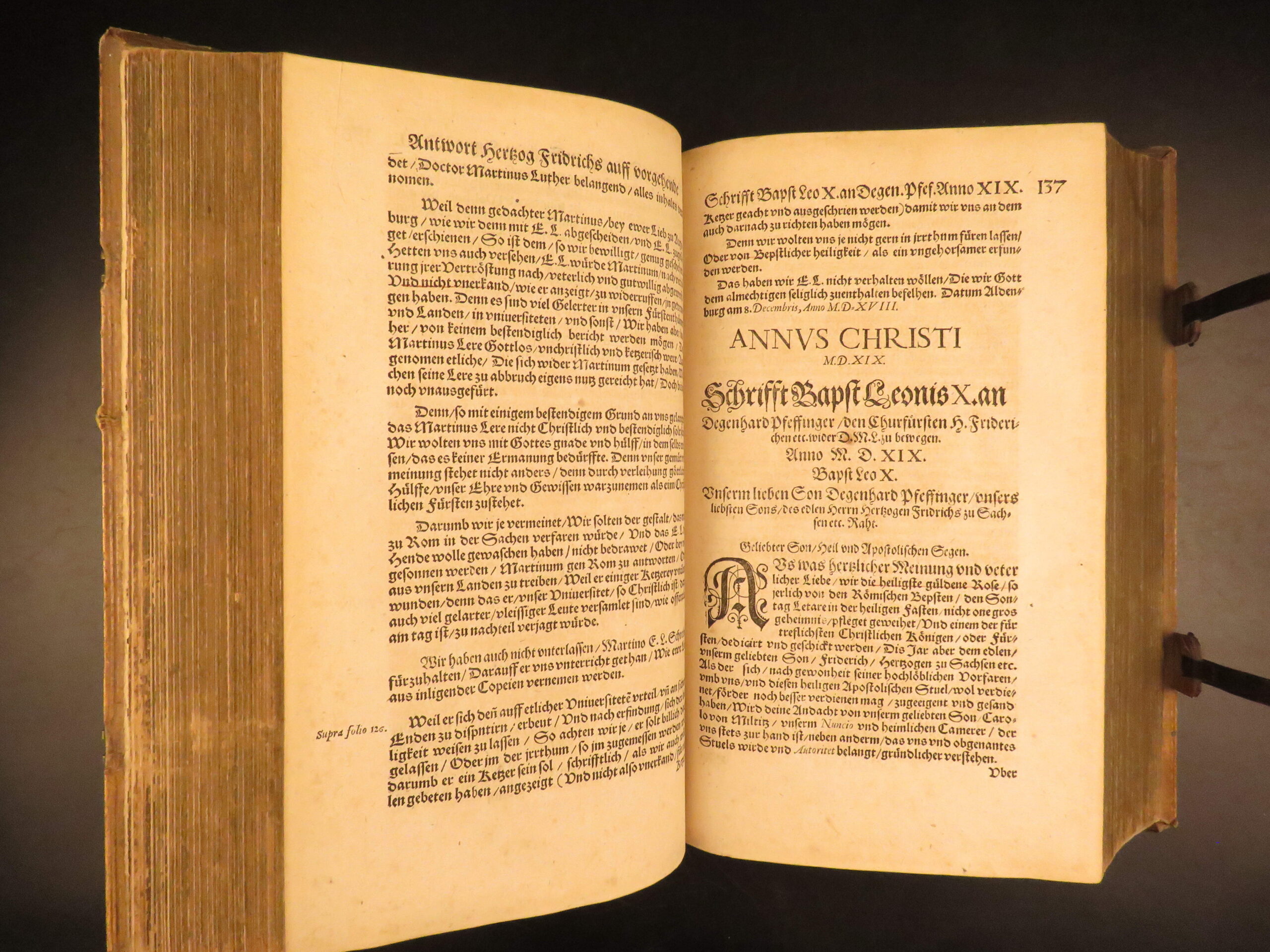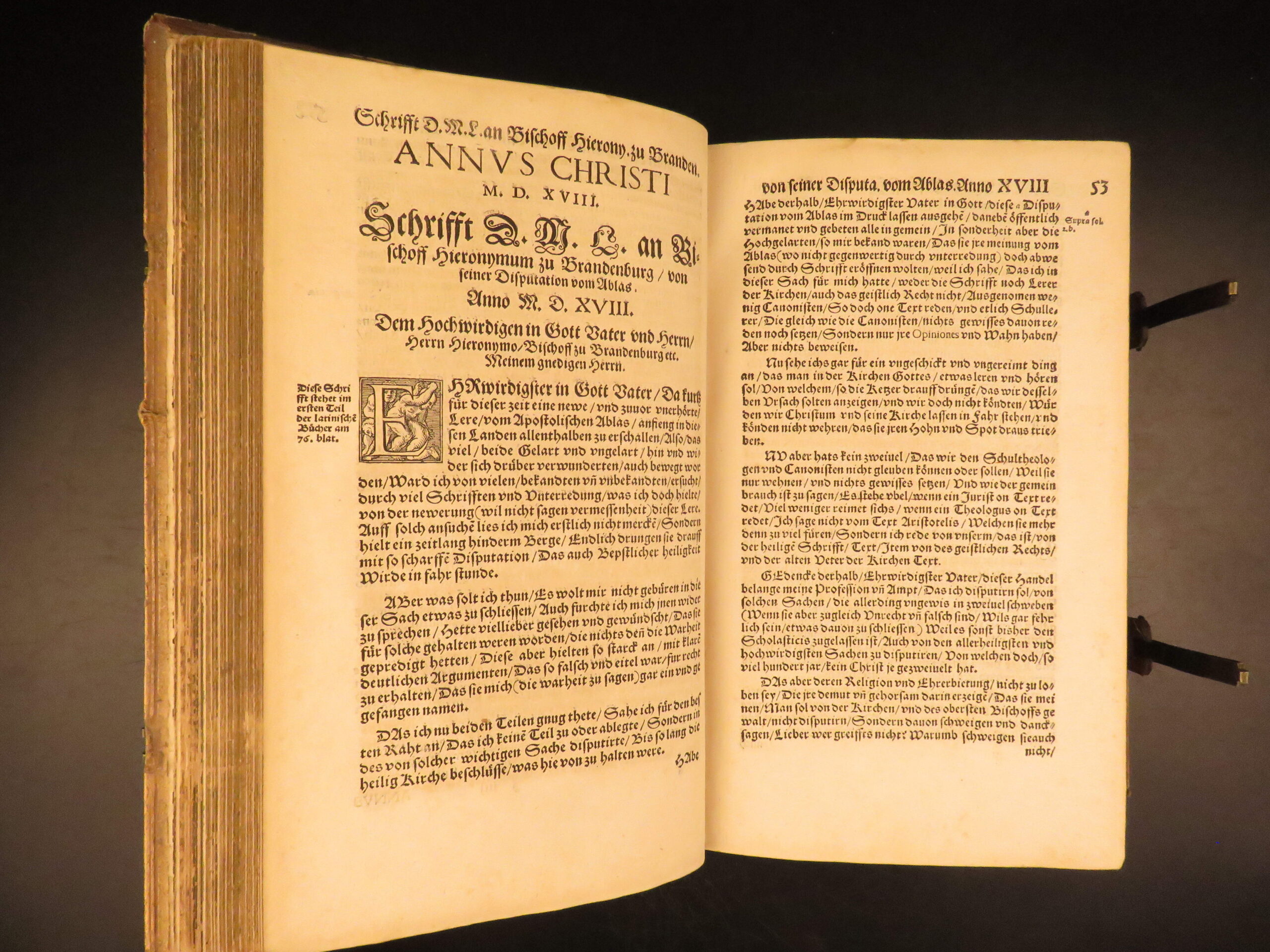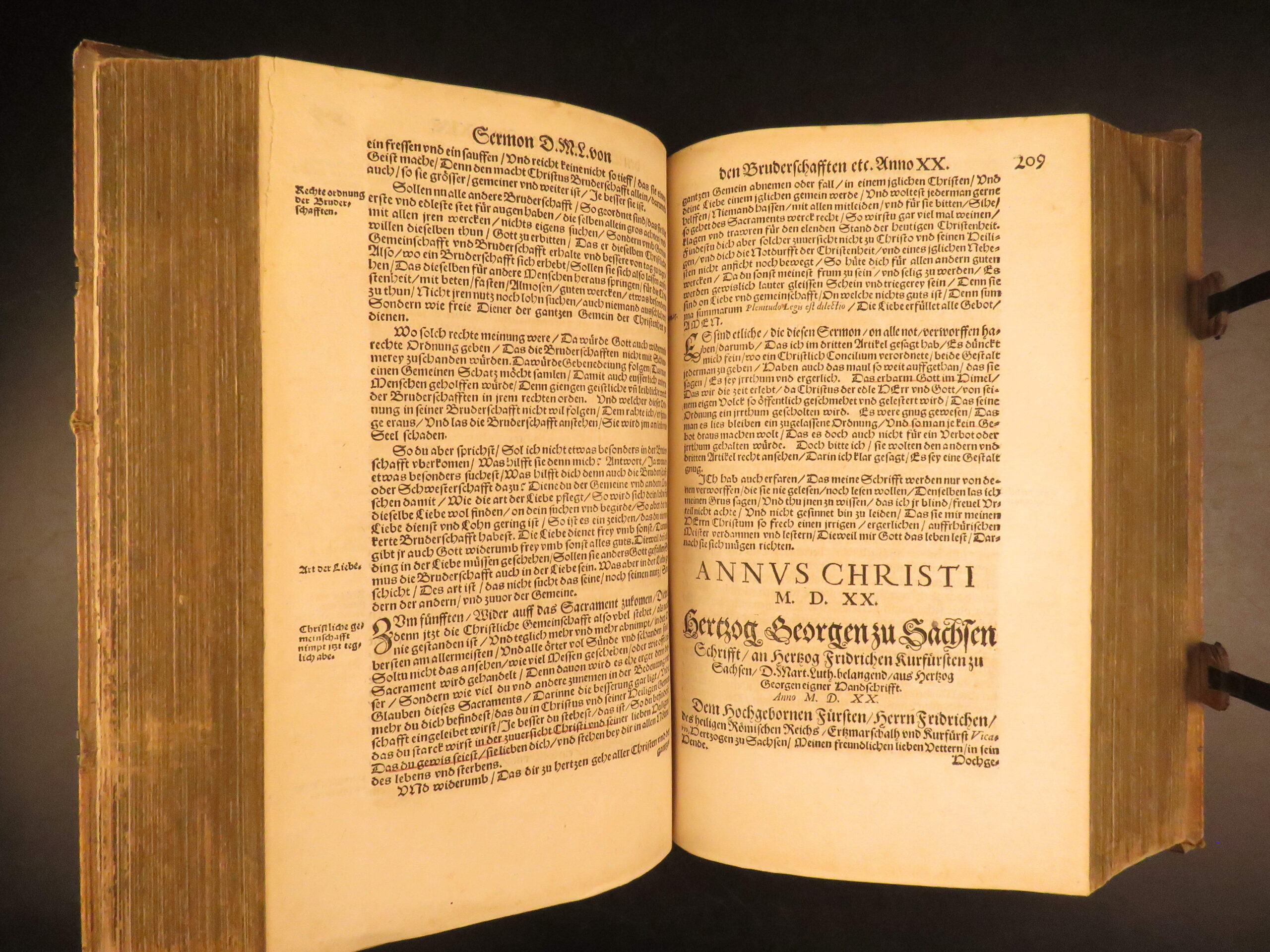 This first volume from the 1567 third edition includes sermons, theological commentary, and historical writings central to early Lutheran thought. Notable texts include the Sermon on the Sacrament of Penance, commentary on the Lord’s Prayer, Psalms commentary, the Augsburg meeting with Cardinal Cajetan in 1518, and the Exposition of the Magnificat.