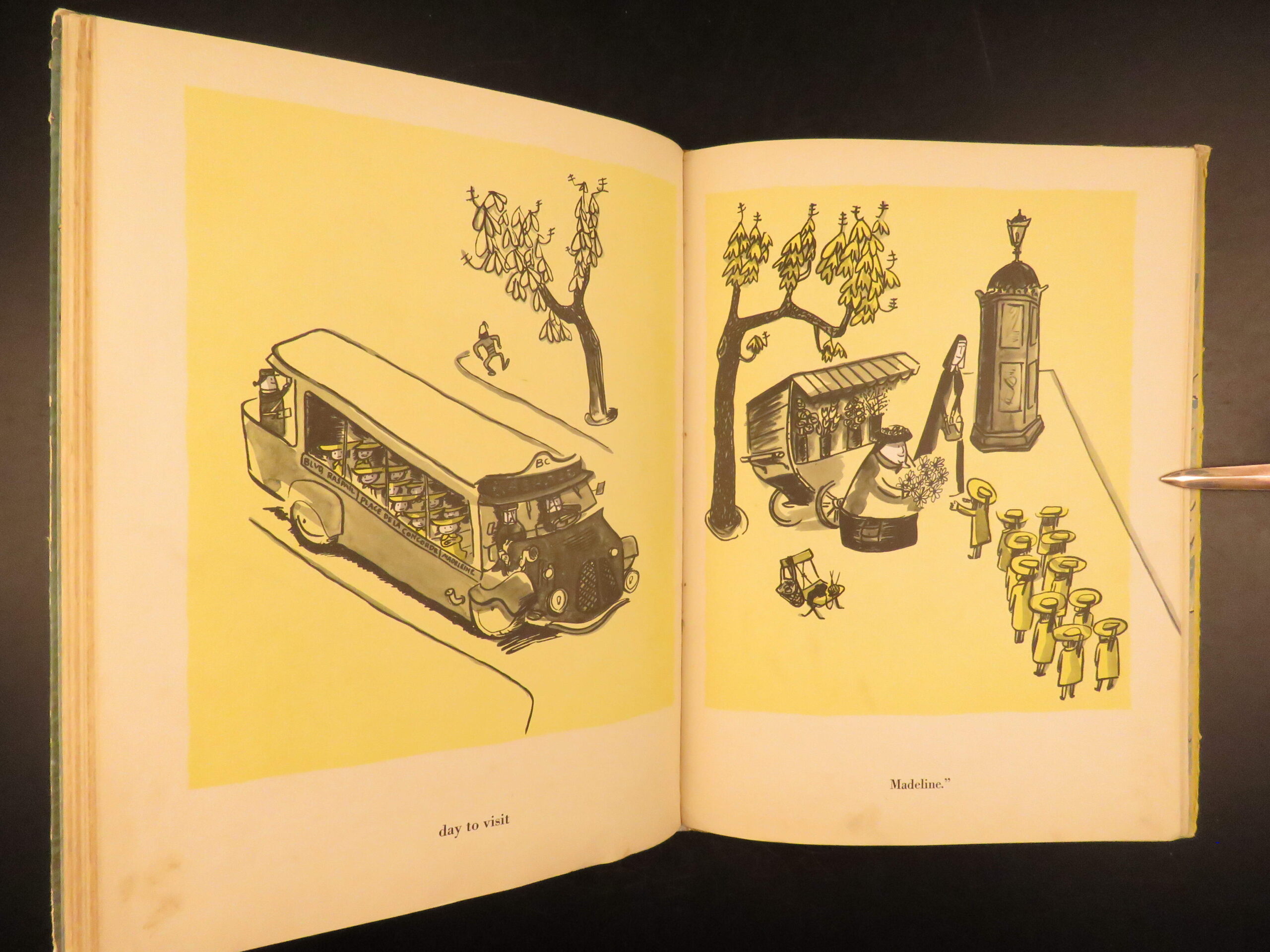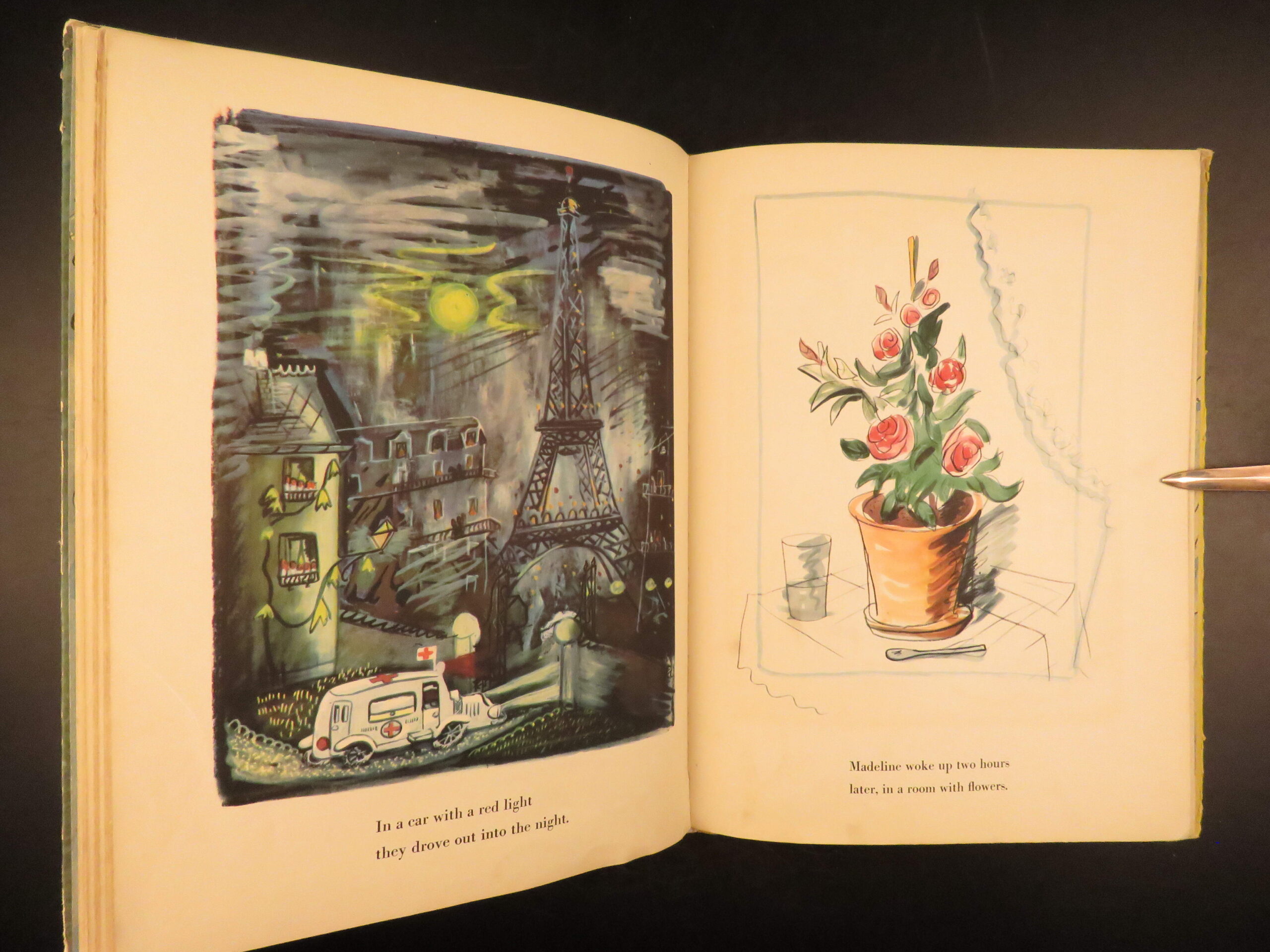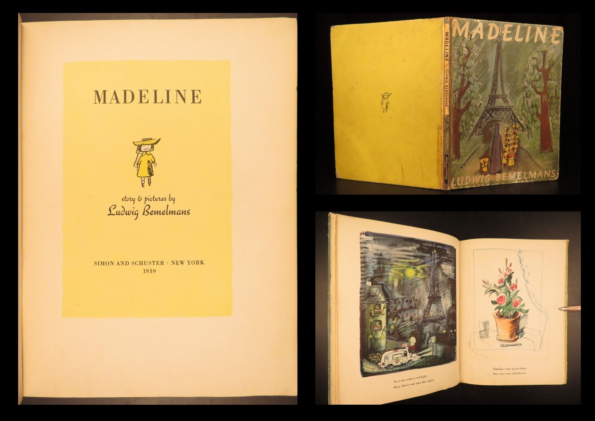 Madeline is a famous 20th-century children’s book by author Ludwig Bemelmans. The title character has appeared in numerous books and films since her inception in 1939 all of which follow the stories of Madeline in a Catholic boarding school in Paris under the eye of a loving nun, Miss Clavel. This impressive first printing includes both edition points – see below.