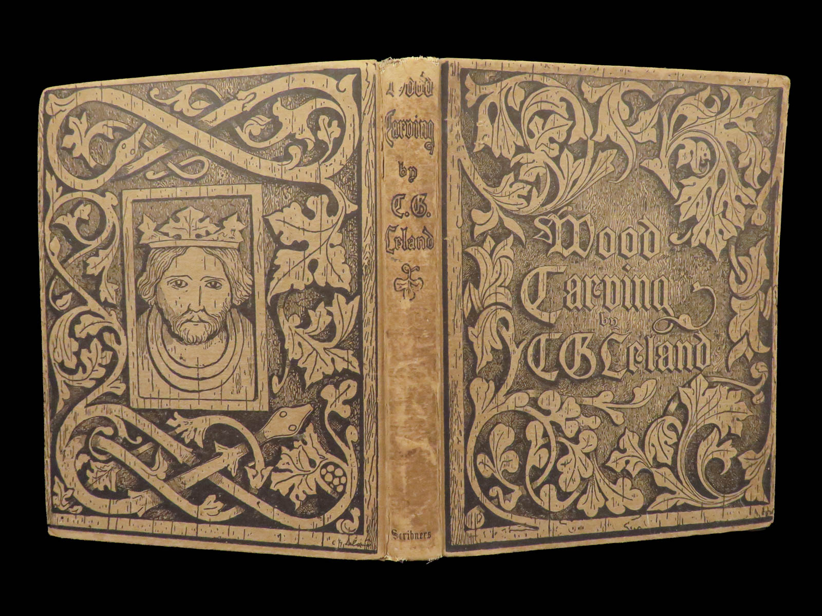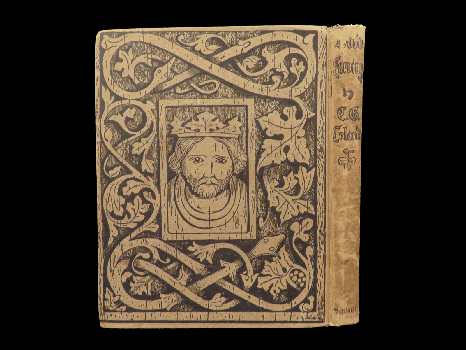 - Distinctive publisher’s cloth imitating carved wood