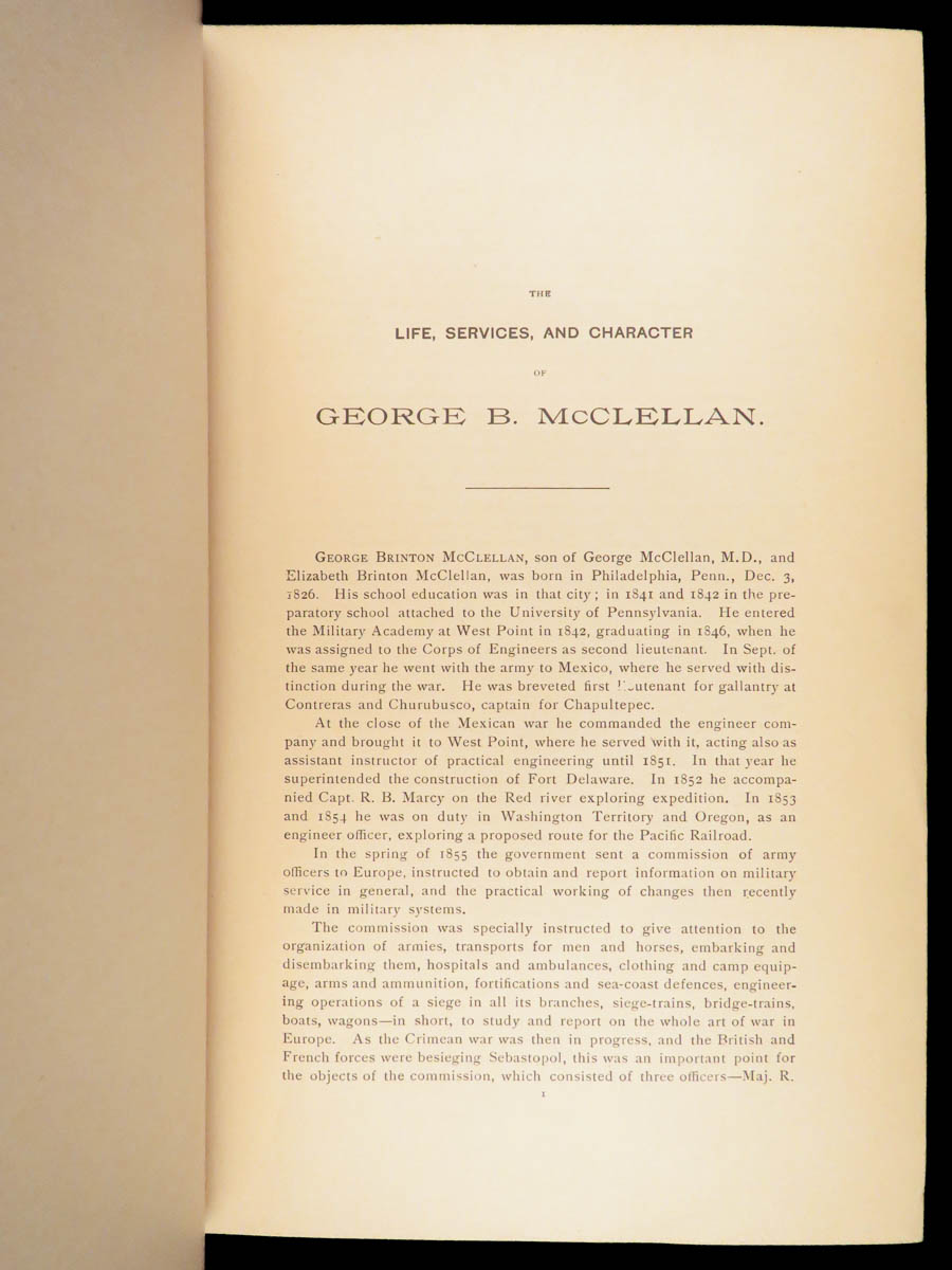 “This is in large part a reworking of McClellan’s ‘Letter of the Secretary of War’…offers a biographical sketch of McClellan, a treatise on the causes of war…the value of this work is reduced to a historical reflection of his psychology in the early chapters.”