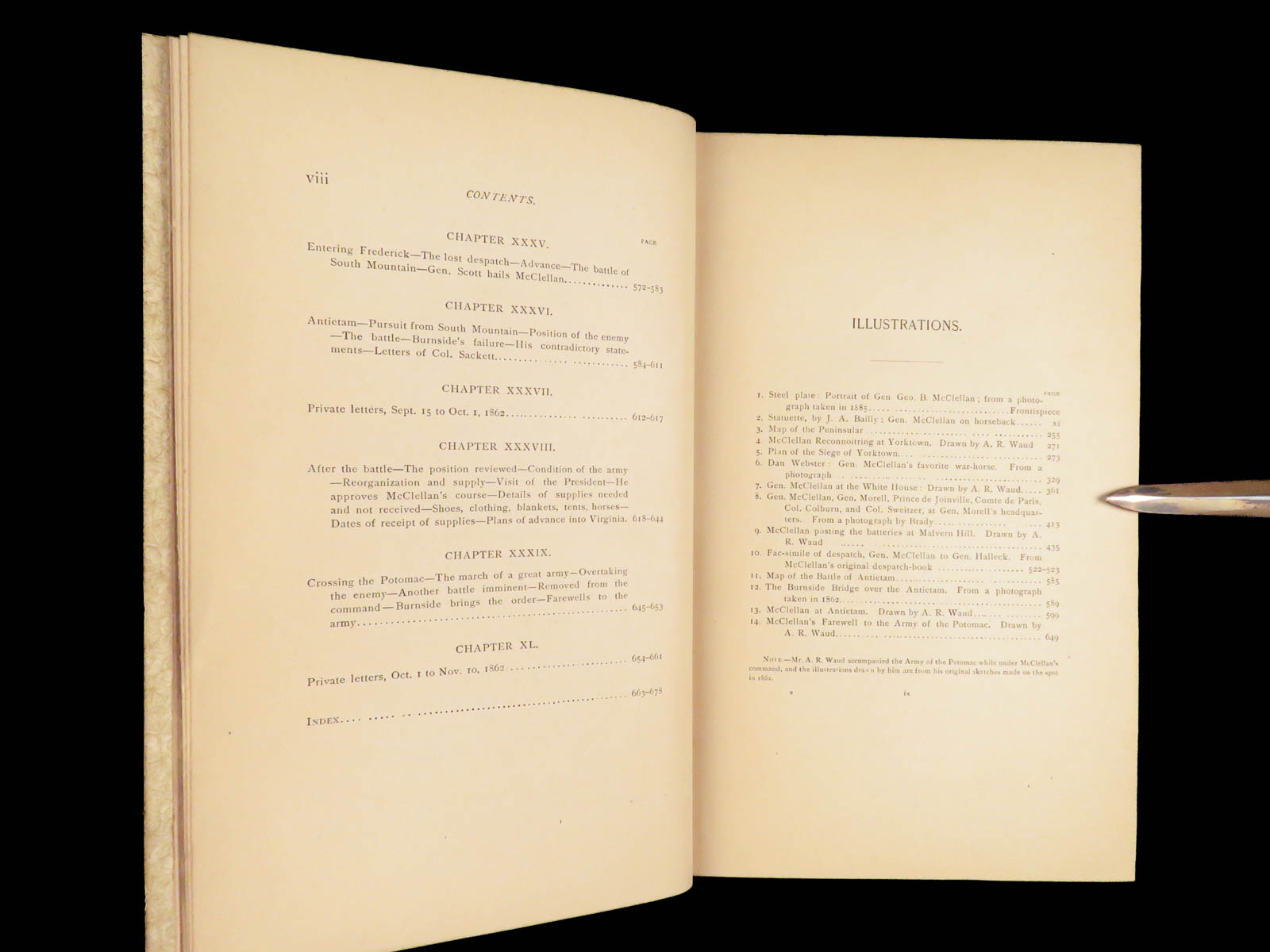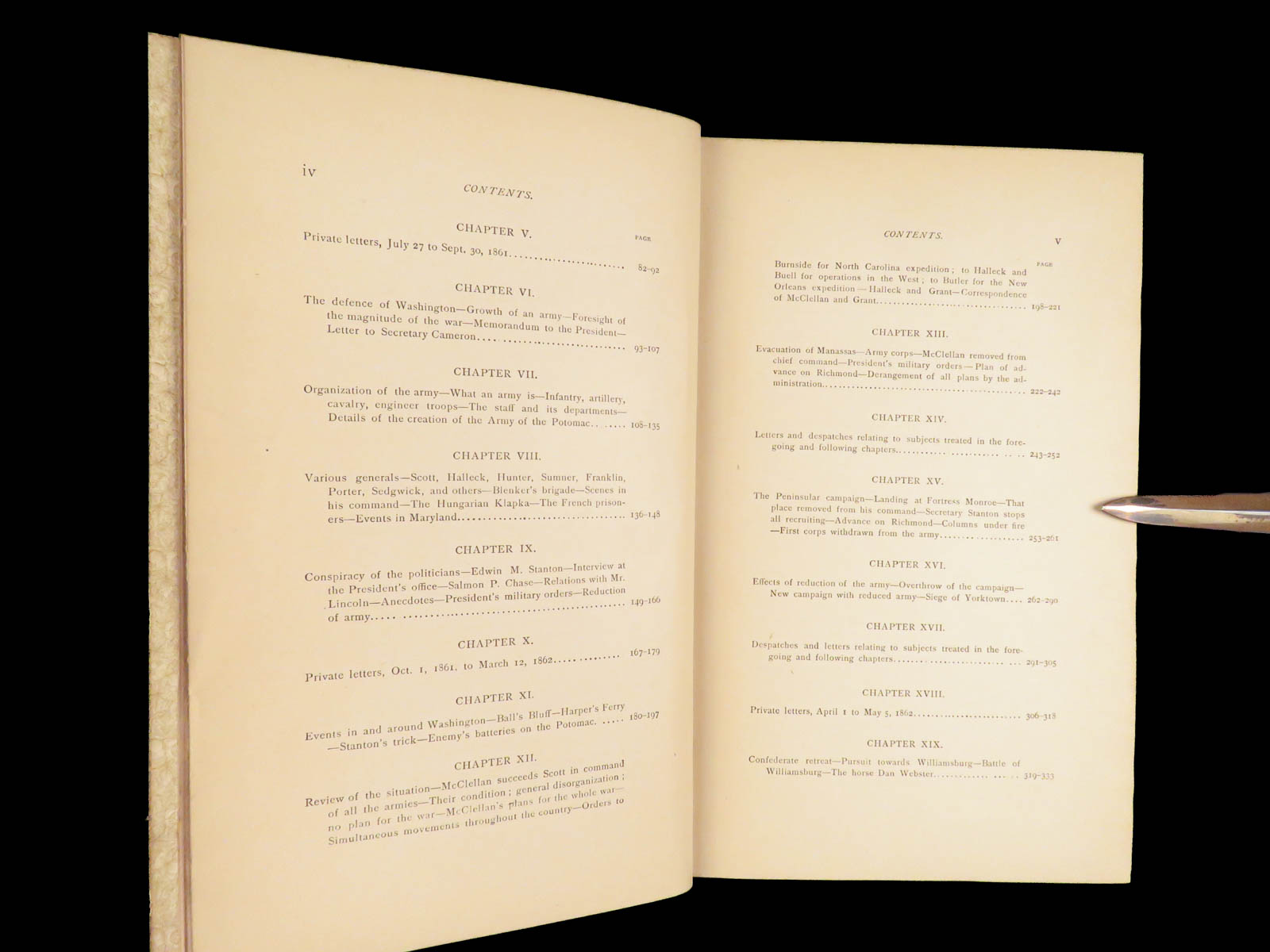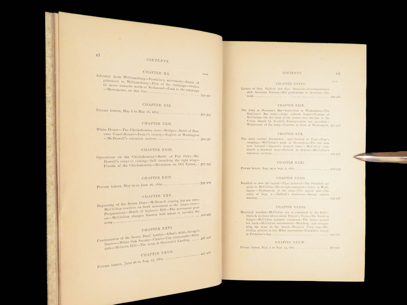 This book also has interesting letter correspondence between McClellan and Abraham Lincoln, in which Lincoln questions McClellan’s decisions and reasoning for not following Lincoln’s tactical plans.