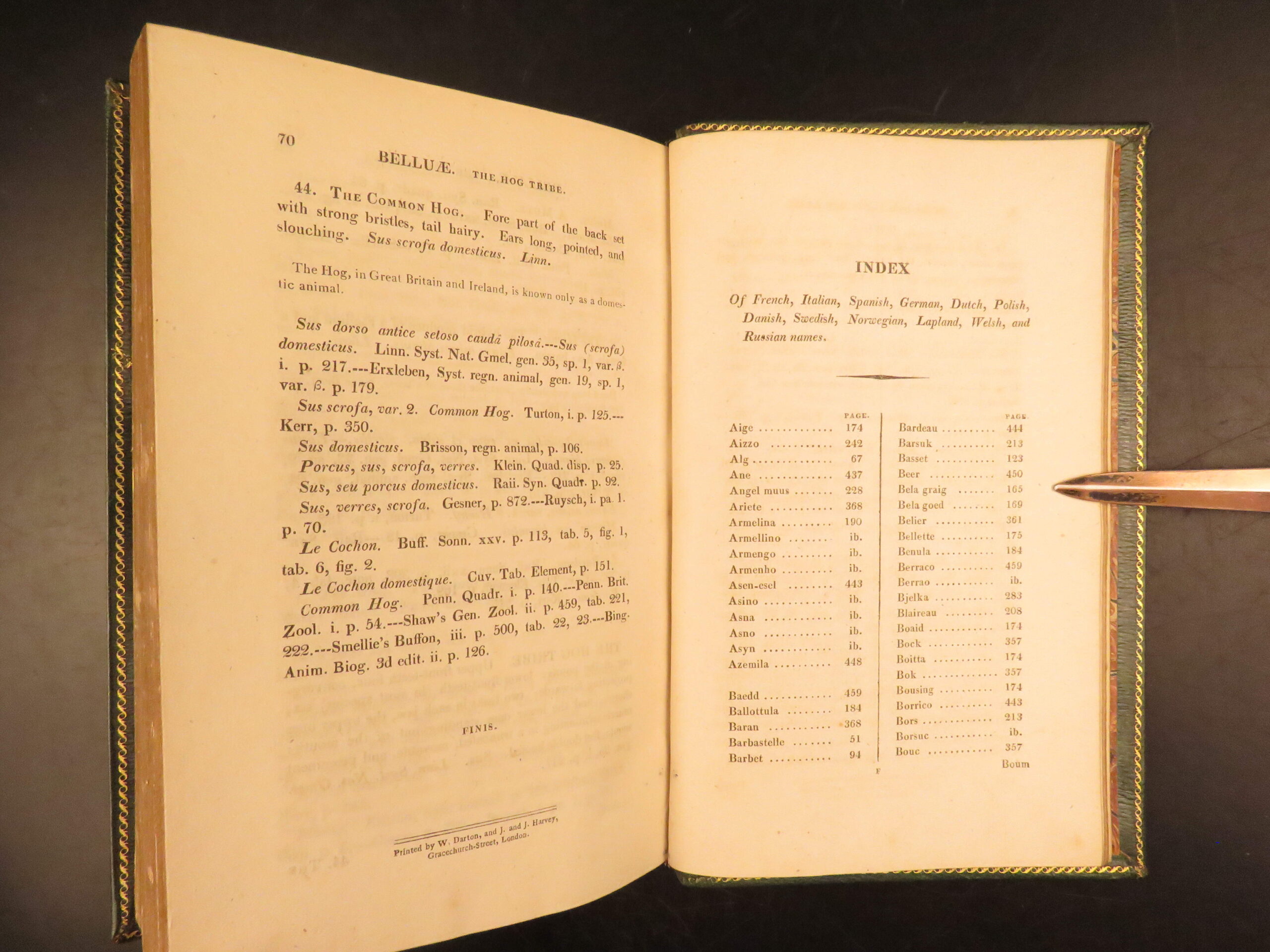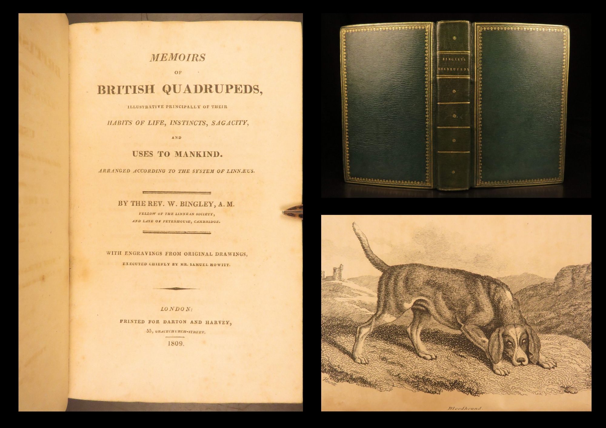 First edition of William Bingley’s Memoirs of British Quadrupeds (1809), featuring all 71 plates by Samuel Howitt, including plates 7 and 8 often lacking in other copies, in green Moroccan leather binding.