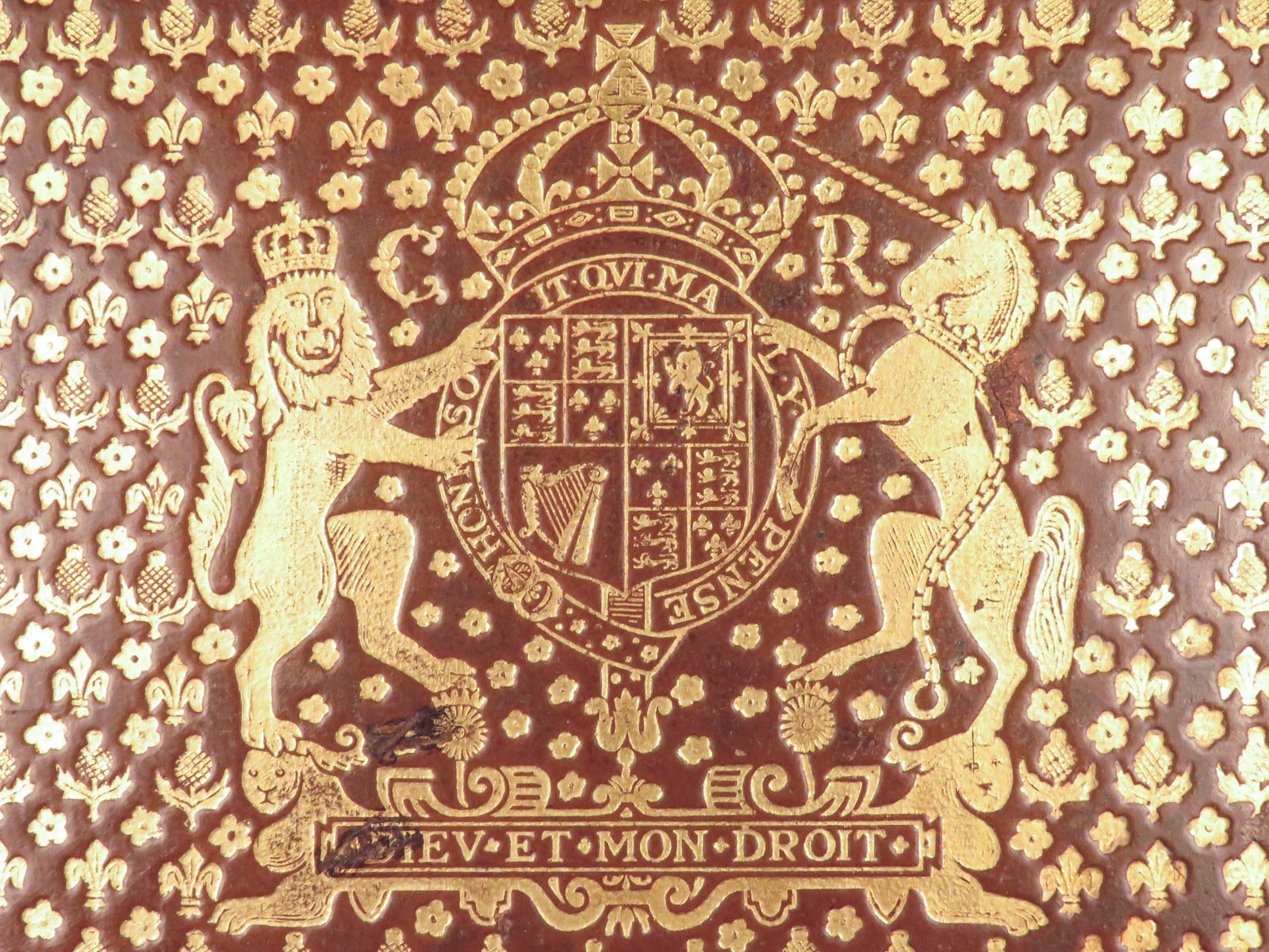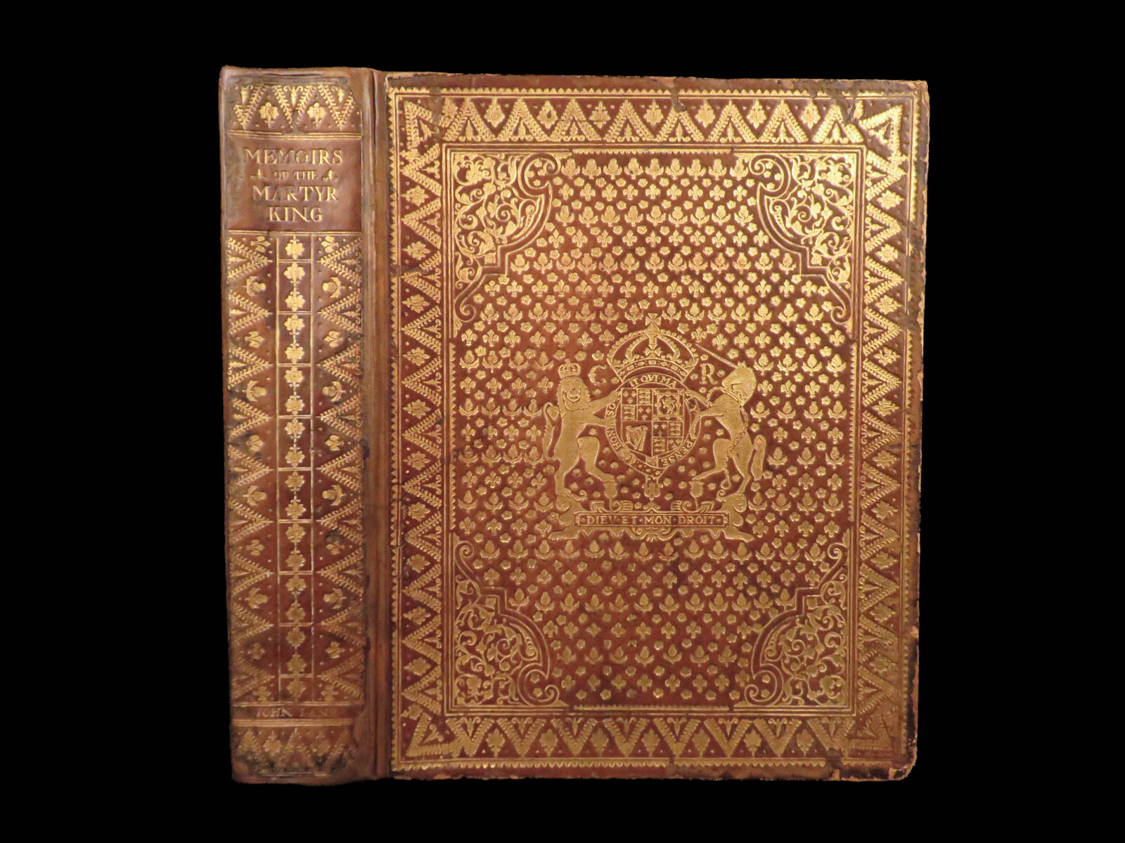 Allan Fea’s Memoirs of the Martyr King (1905 first edition) documents the final years of Charles I, illustrated with 39 engraved portraits and bound in full gilt-tooled leather at impressive folio scale.
