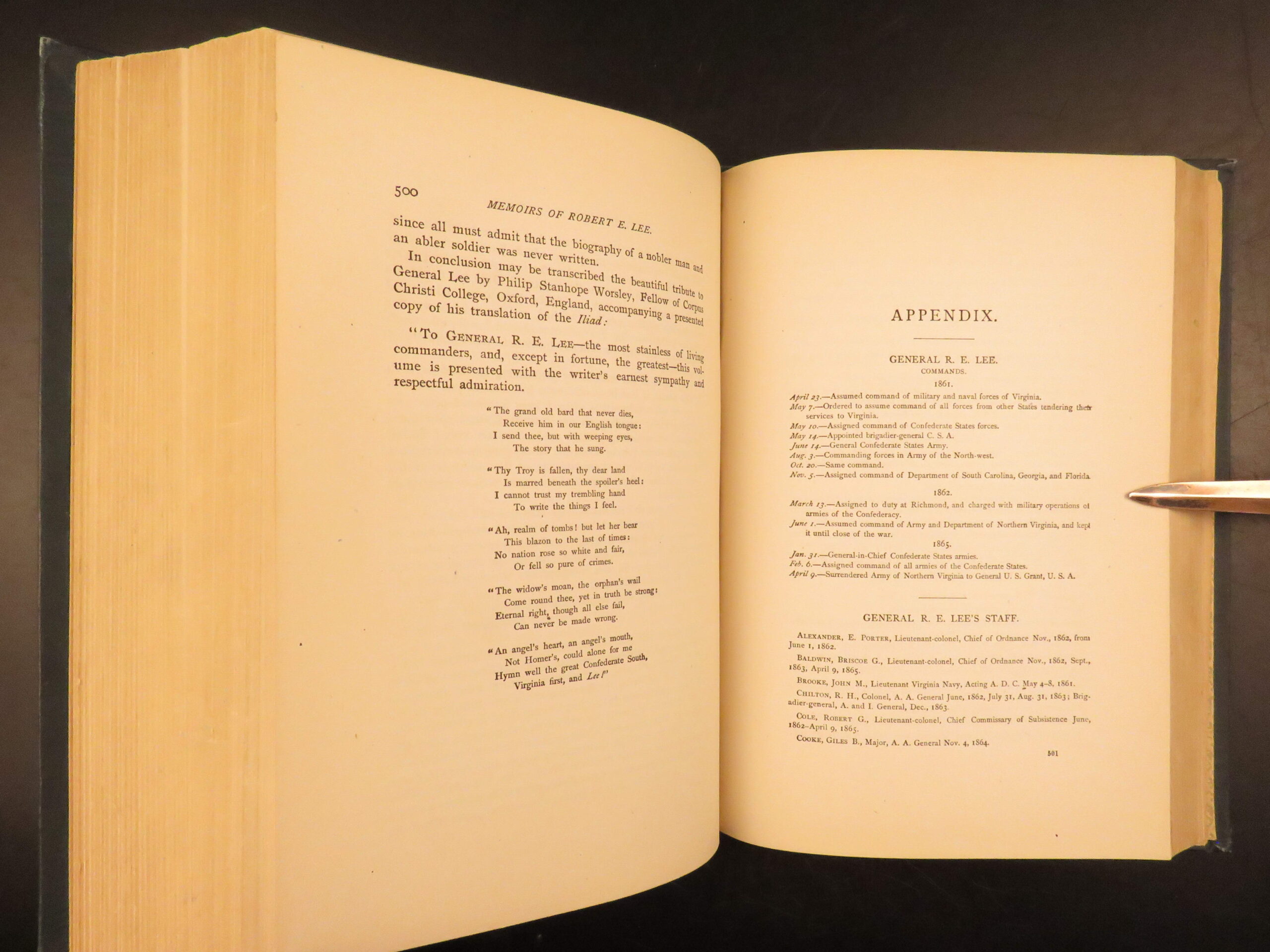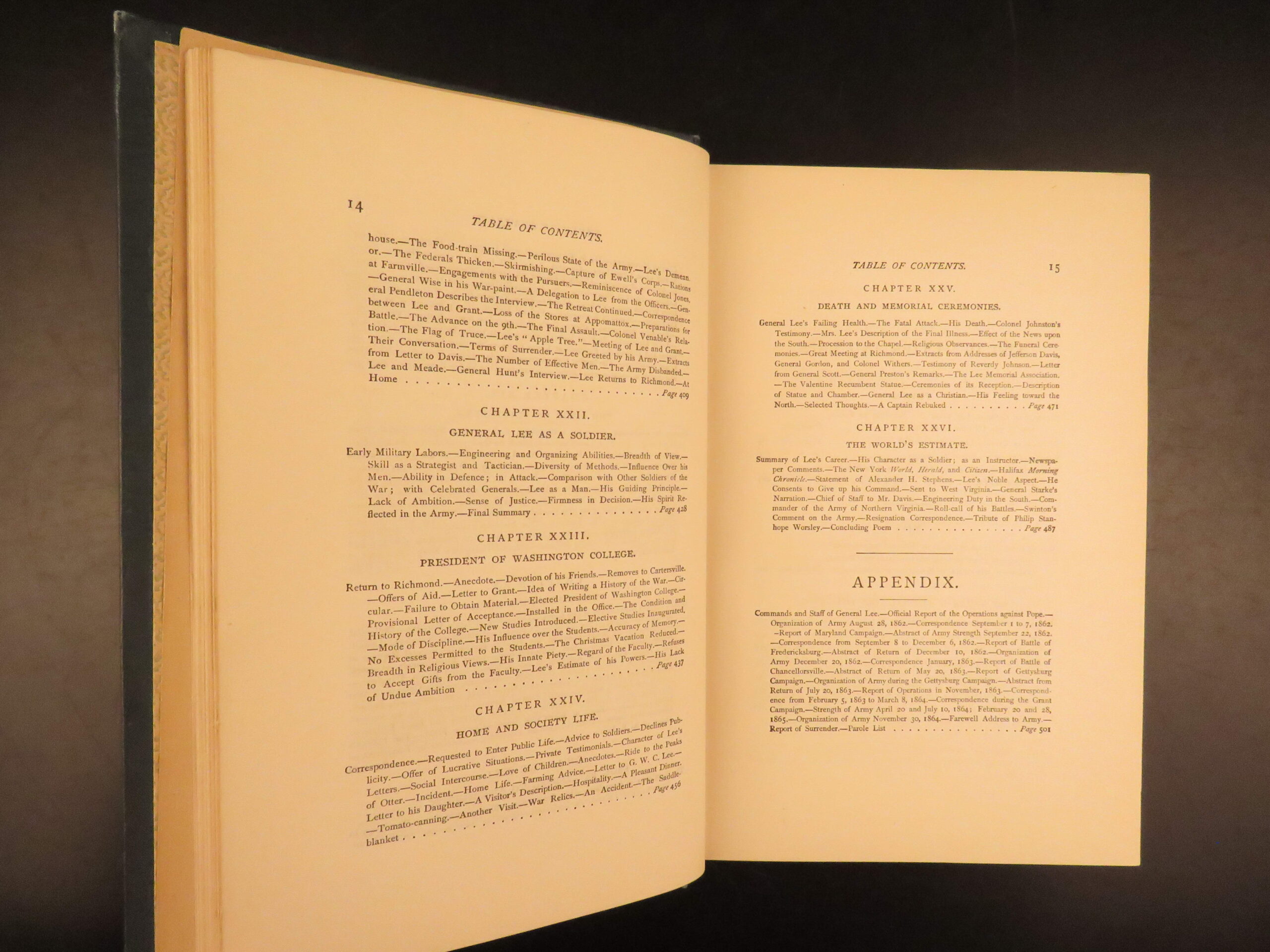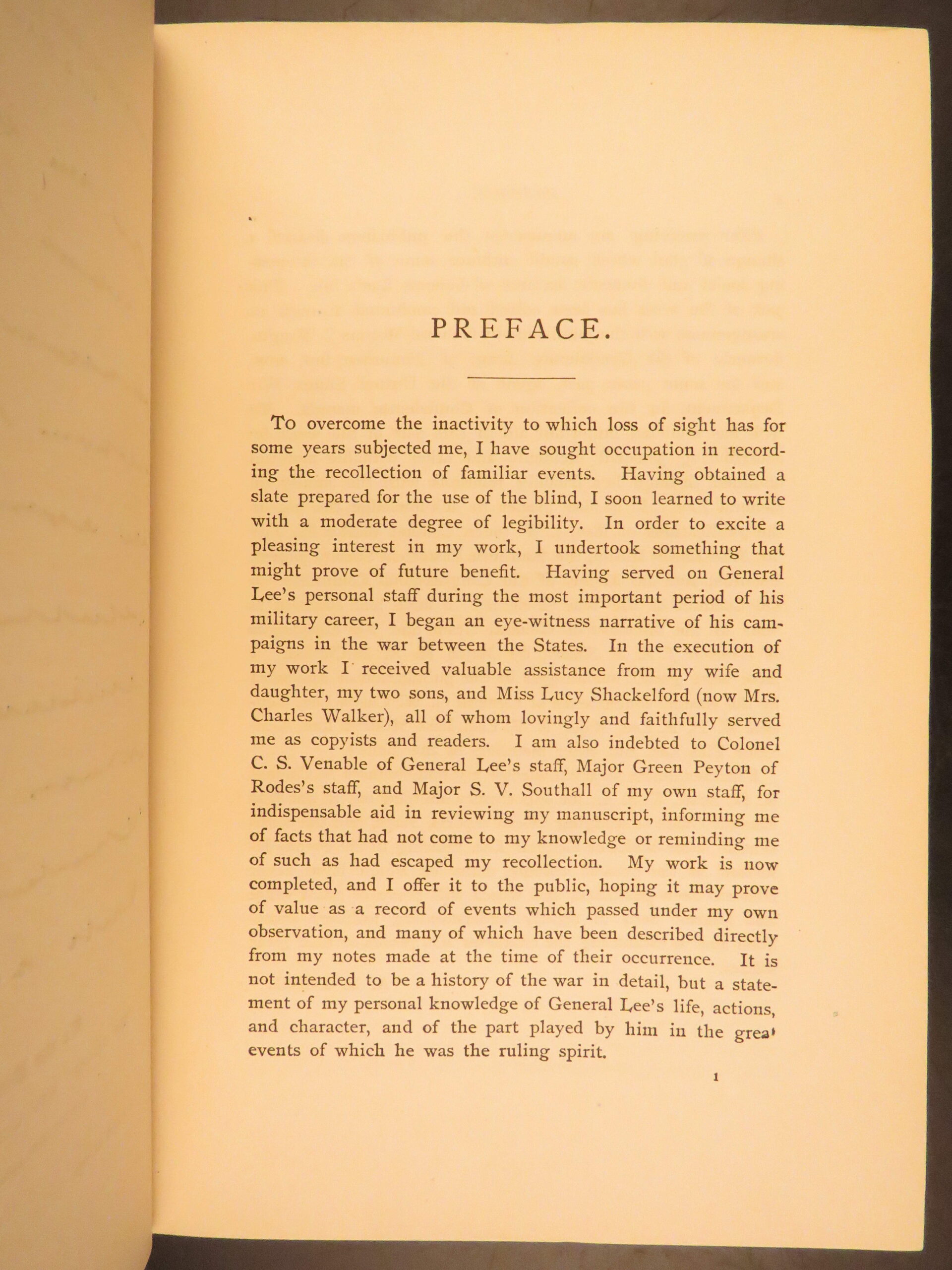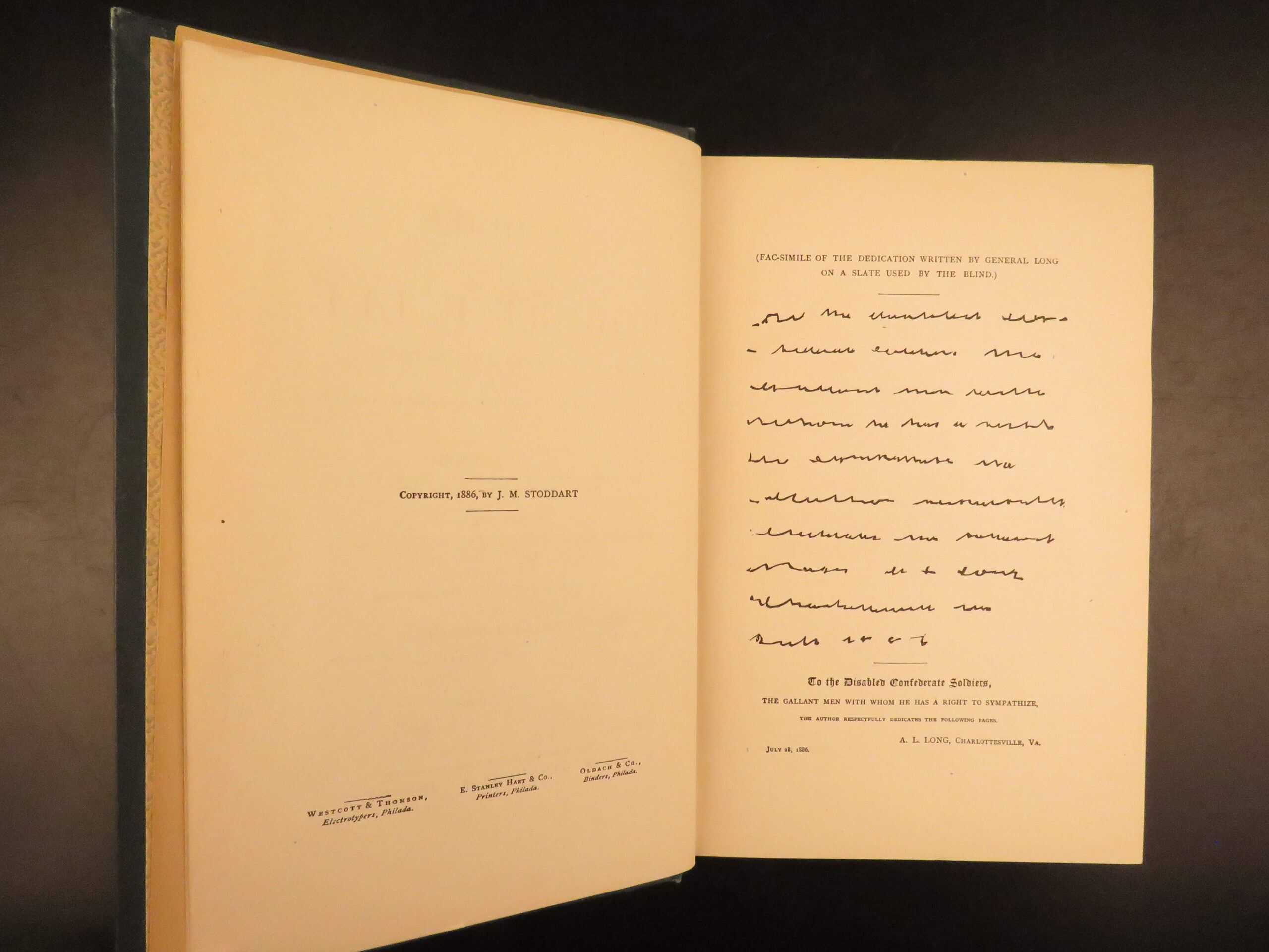 This 1887 first edition of A. L. Long’s Memoirs of Robert E. Lee, a major nineteenth century Civil War biography complete with portraits and maps, details accounts of Lee’s military and personal history.