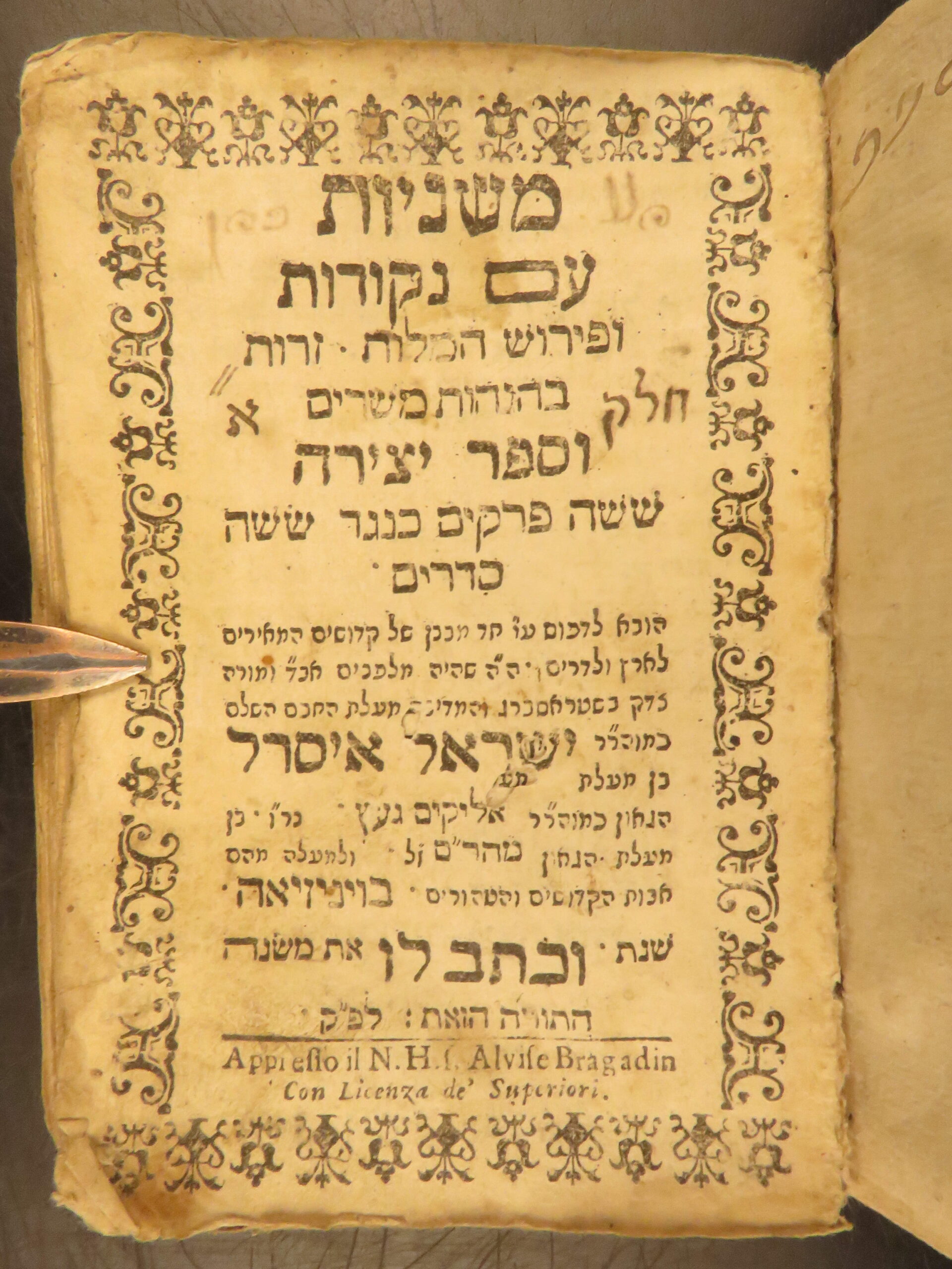 1750 – Hebrew Mishnah with Sefer Yetzirah – Israel Isserl | Venice Printing