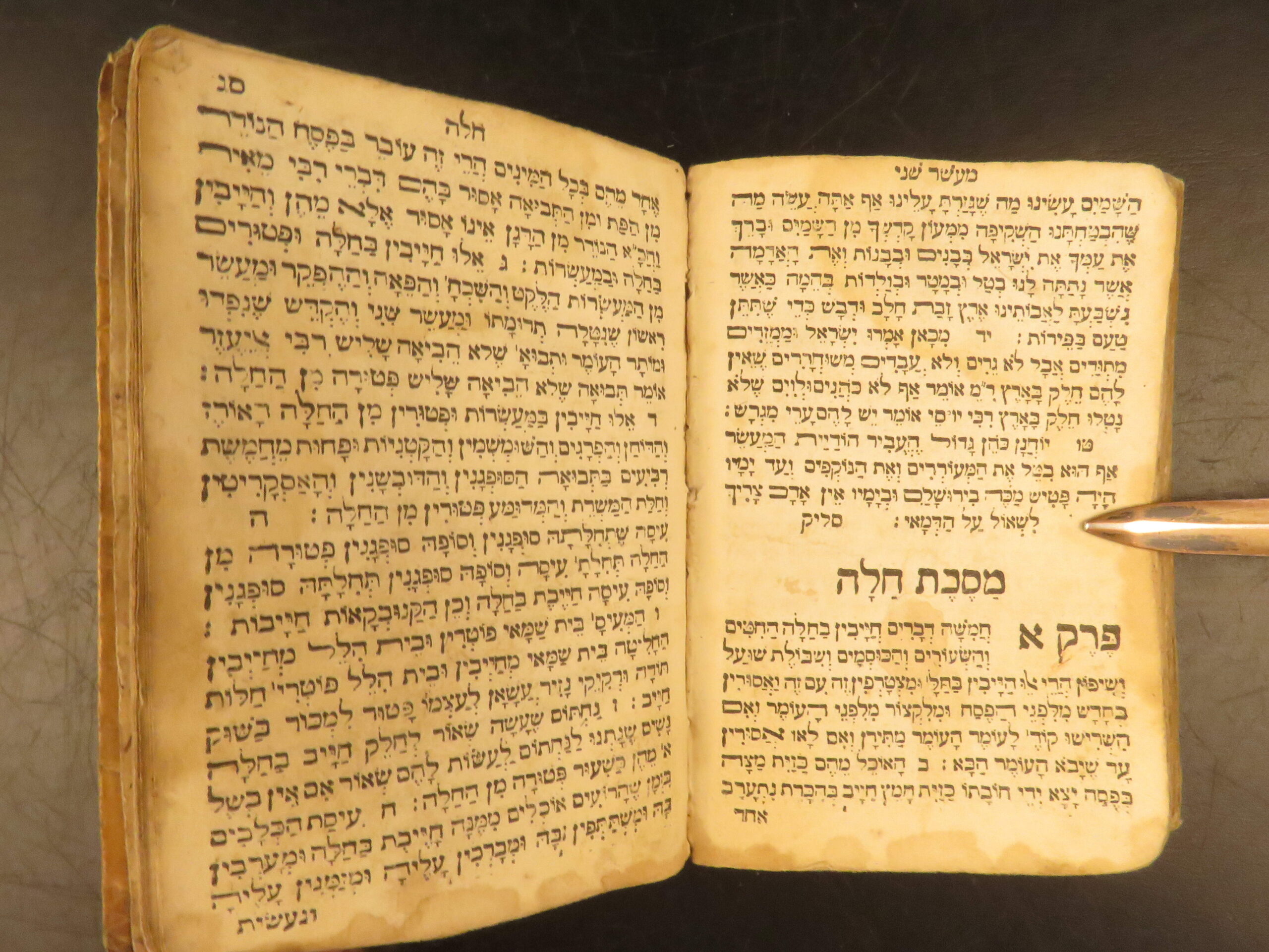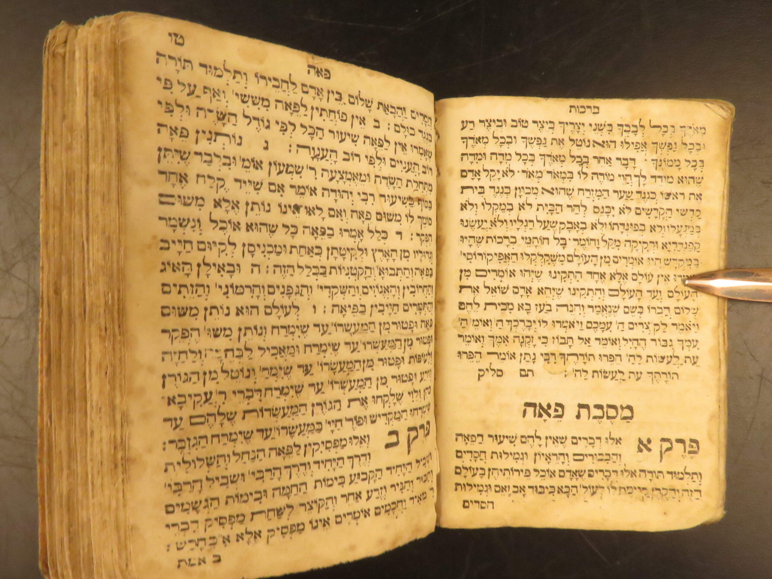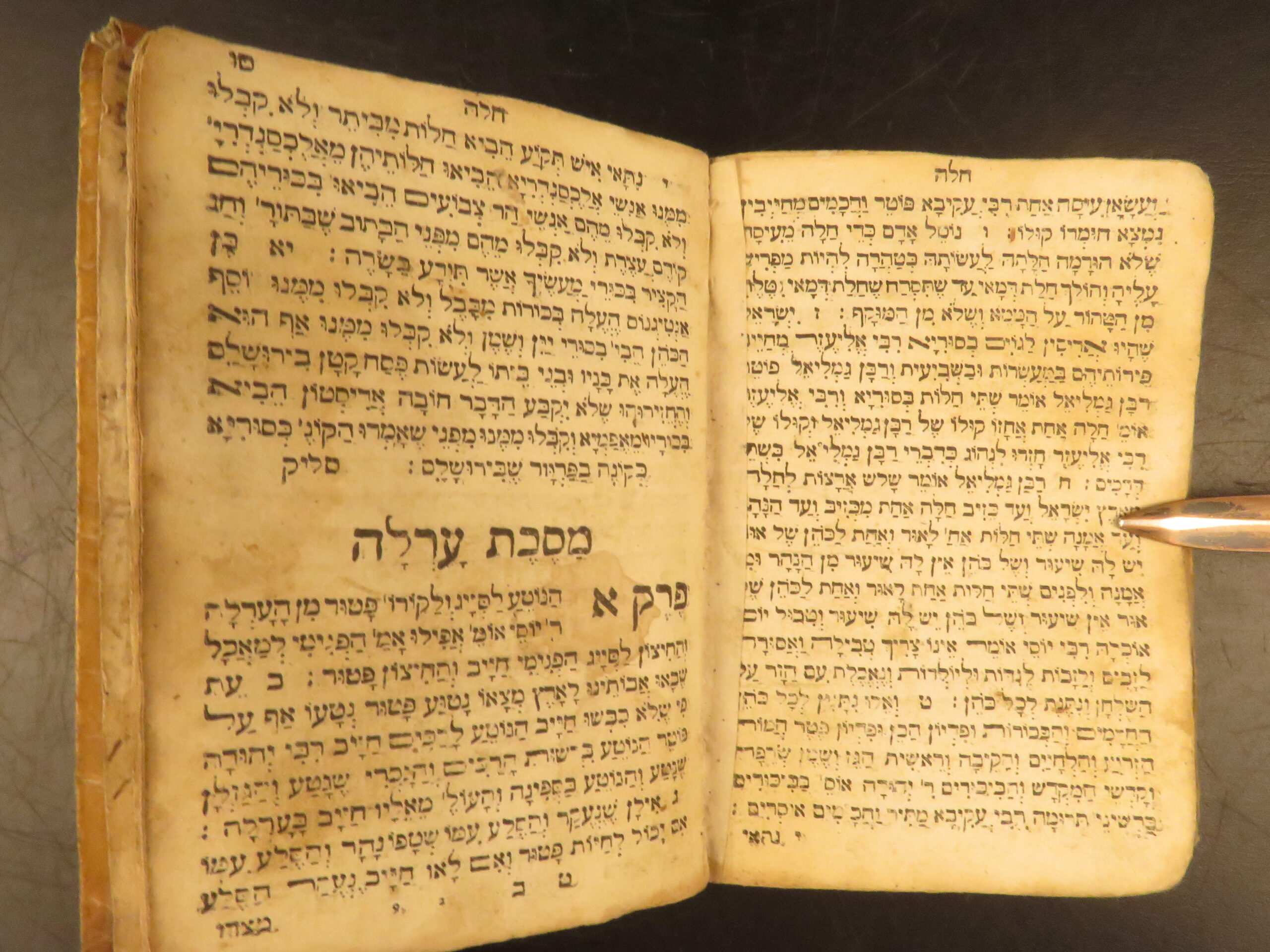 A rare 18th-century Venetian printing of a Hebrew Mishnayot with Sefer Yetzirah. This small, pocketsized edition was collected and edtied by Israel Isserl who provides explanatory notes and vocalizations of the Mishnayot. The mystical Sefer Yetzirah is included at the end. The Bragadin press of Venice was among the most respected Hebrew printers of early modern Europe, known for high-quality Hebrew texts.