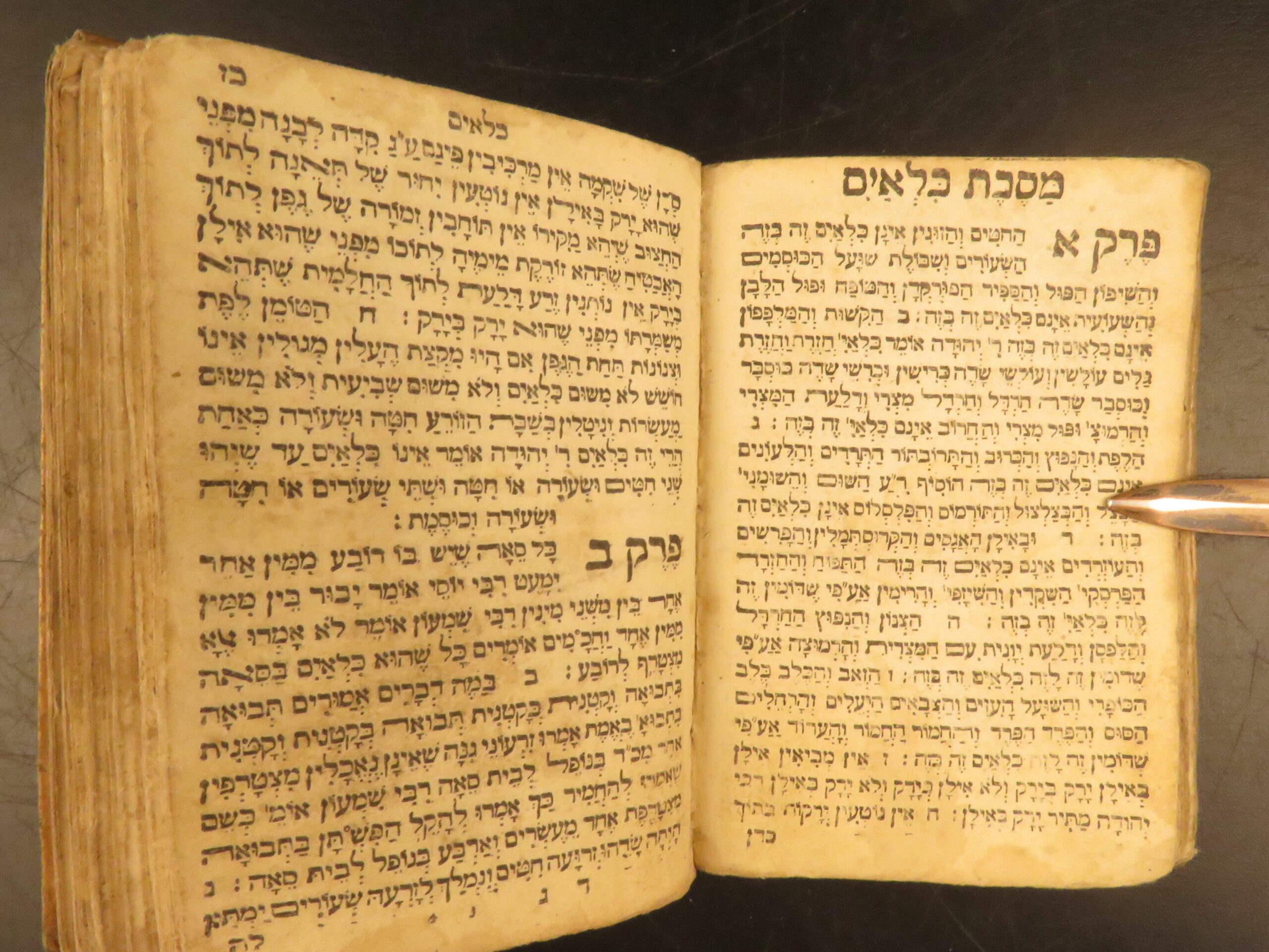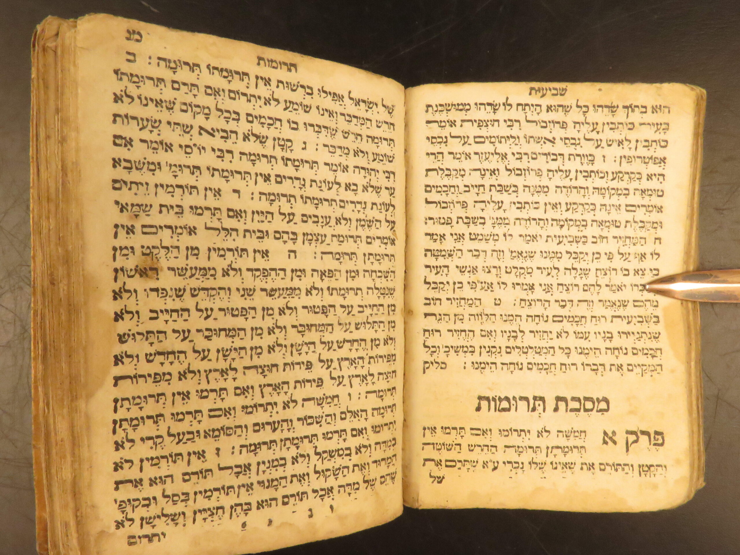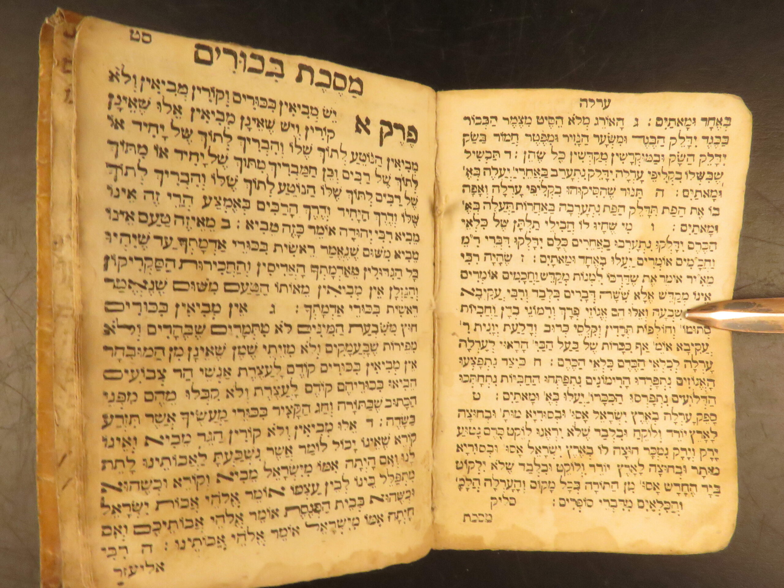A rare 18th-century Venetian printing of a Hebrew Mishnayot with Sefer Yetzirah. This small, pocketsized edition was collected and edtied by Israel Isserl who provides explanatory notes and vocalizations of the Mishnayot. The mystical Sefer Yetzirah is included at the end. The Bragadin press of Venice was among the most respected Hebrew printers of early modern Europe, known for high-quality Hebrew texts.