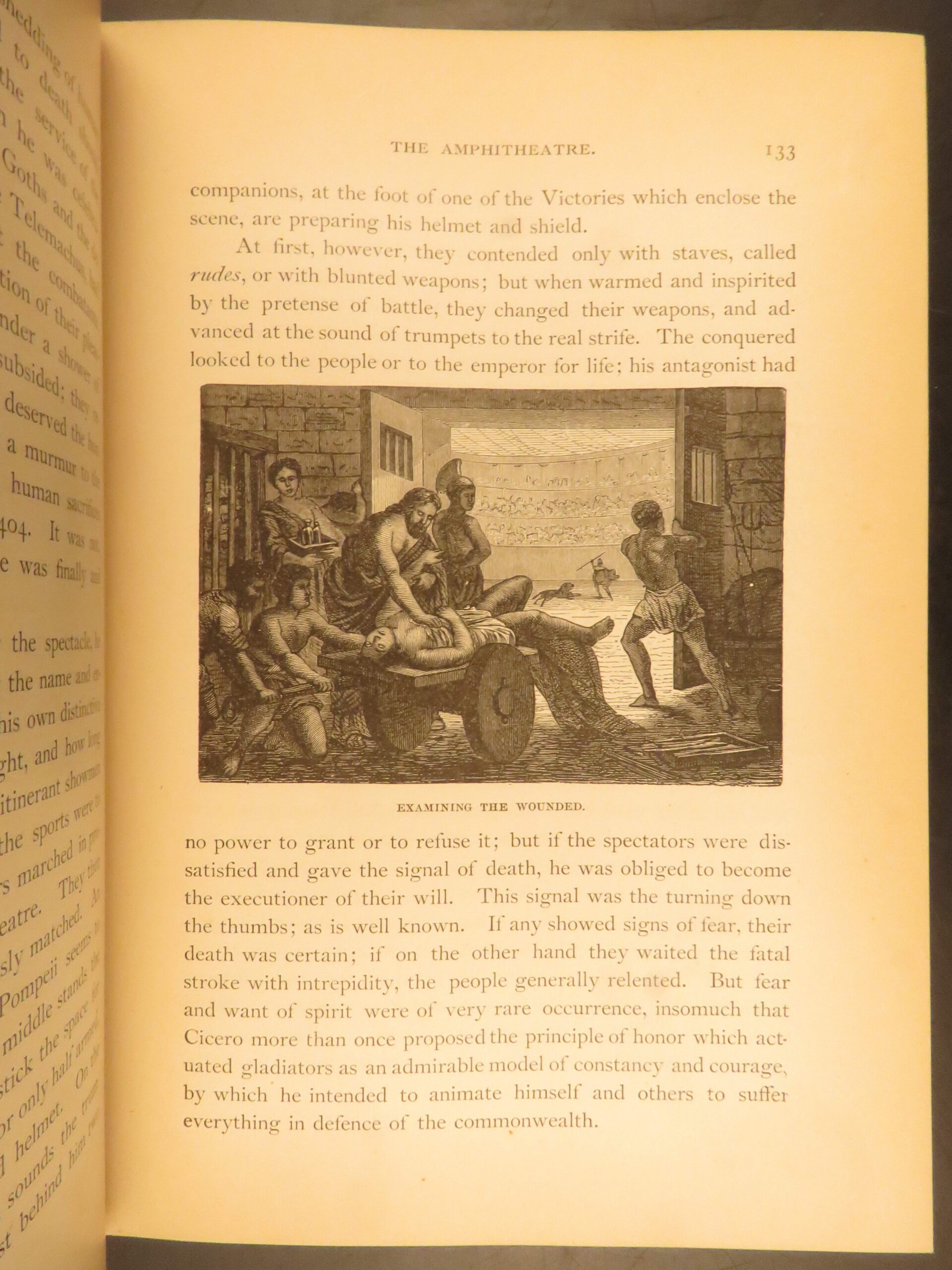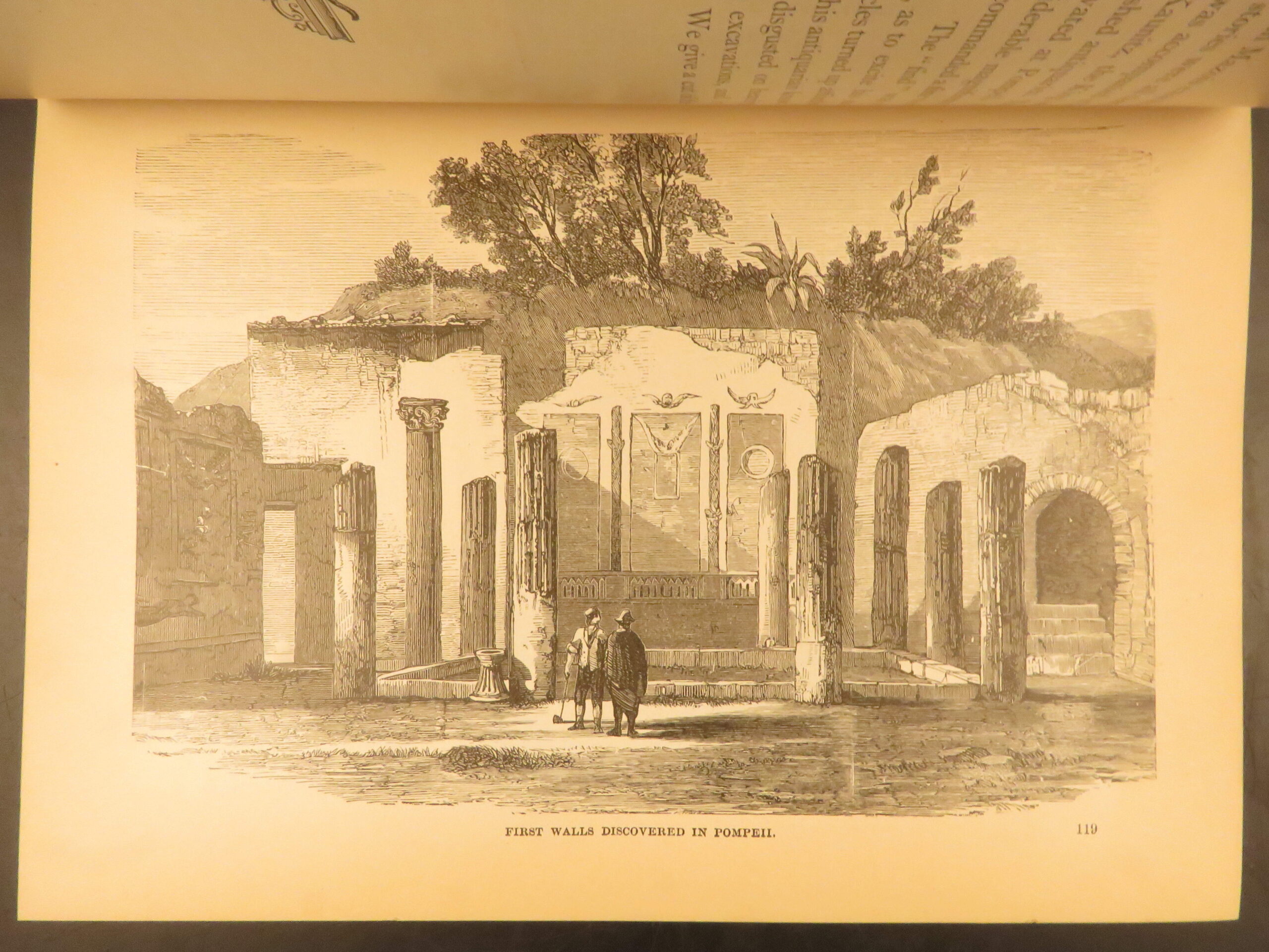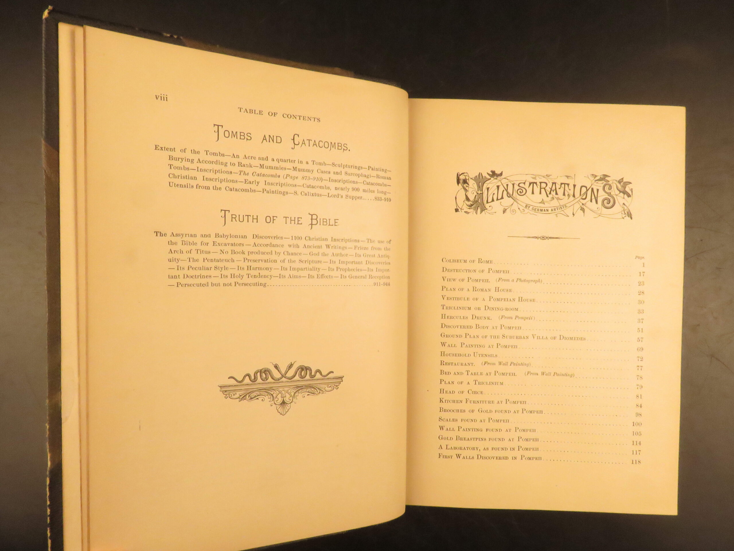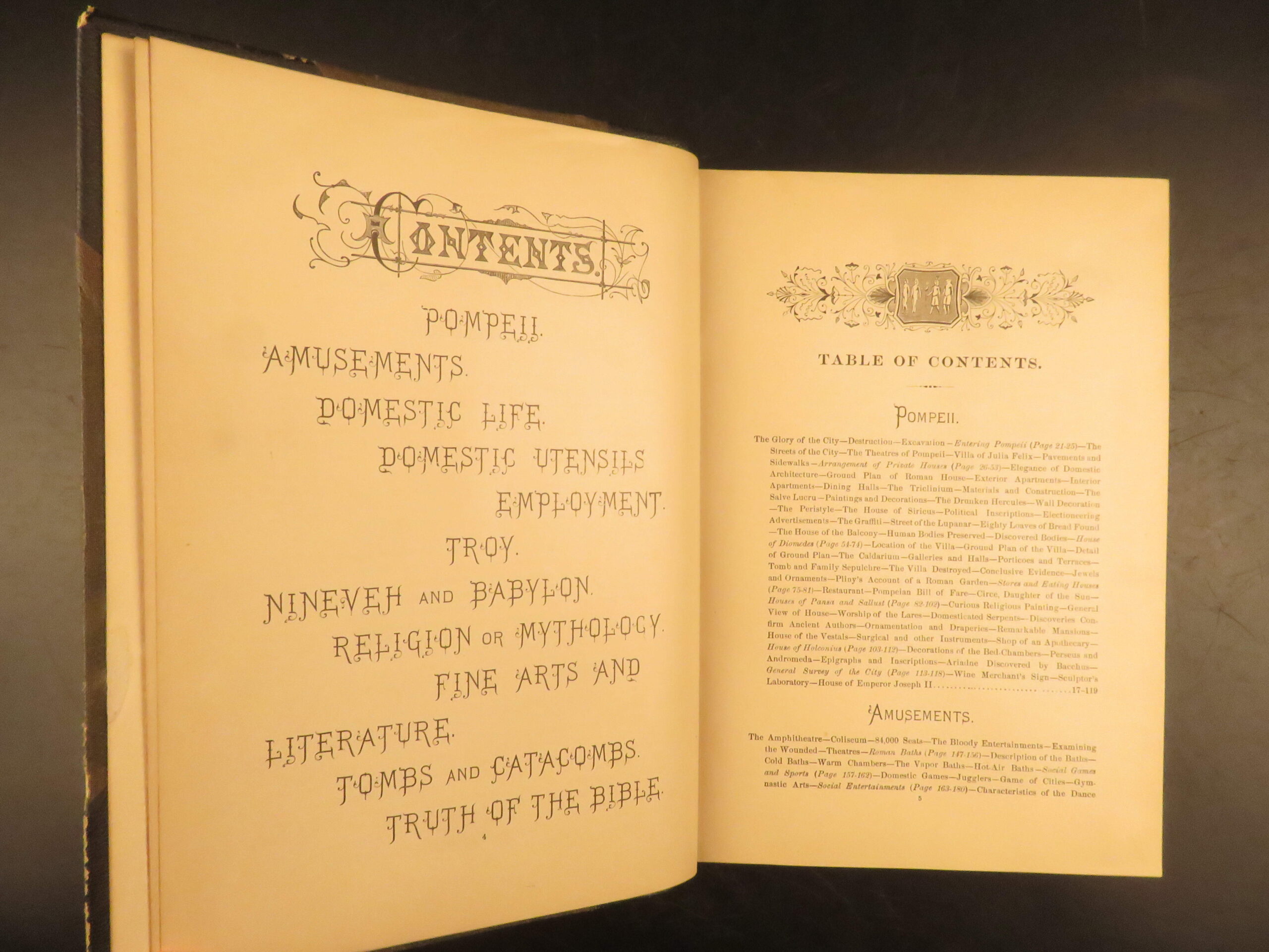 Large 1881 illustrated history exploring classical antiquity through 180 engravings, including Jewish, Egyptian, and Roman themes, with special attention to Pompeii.