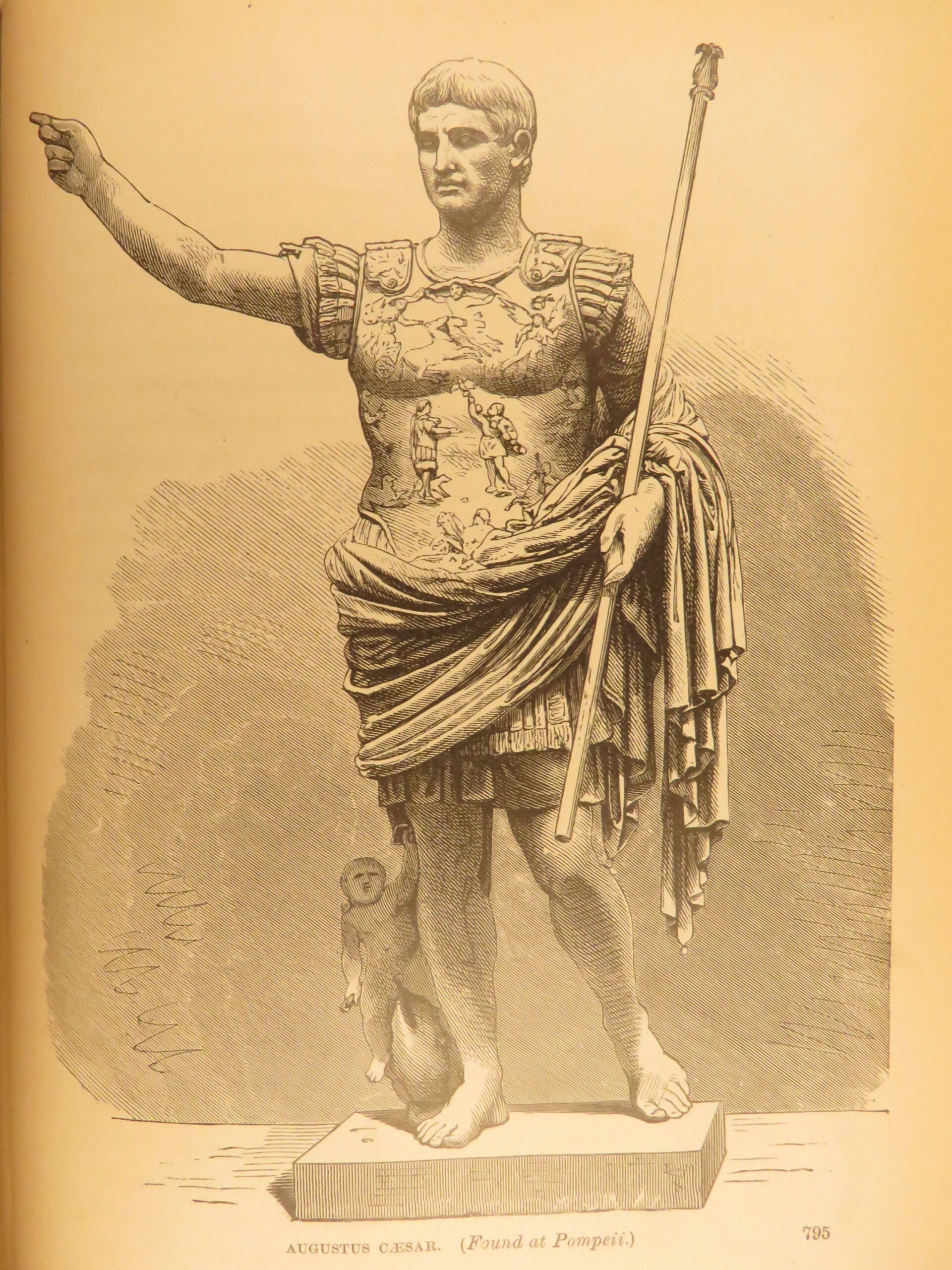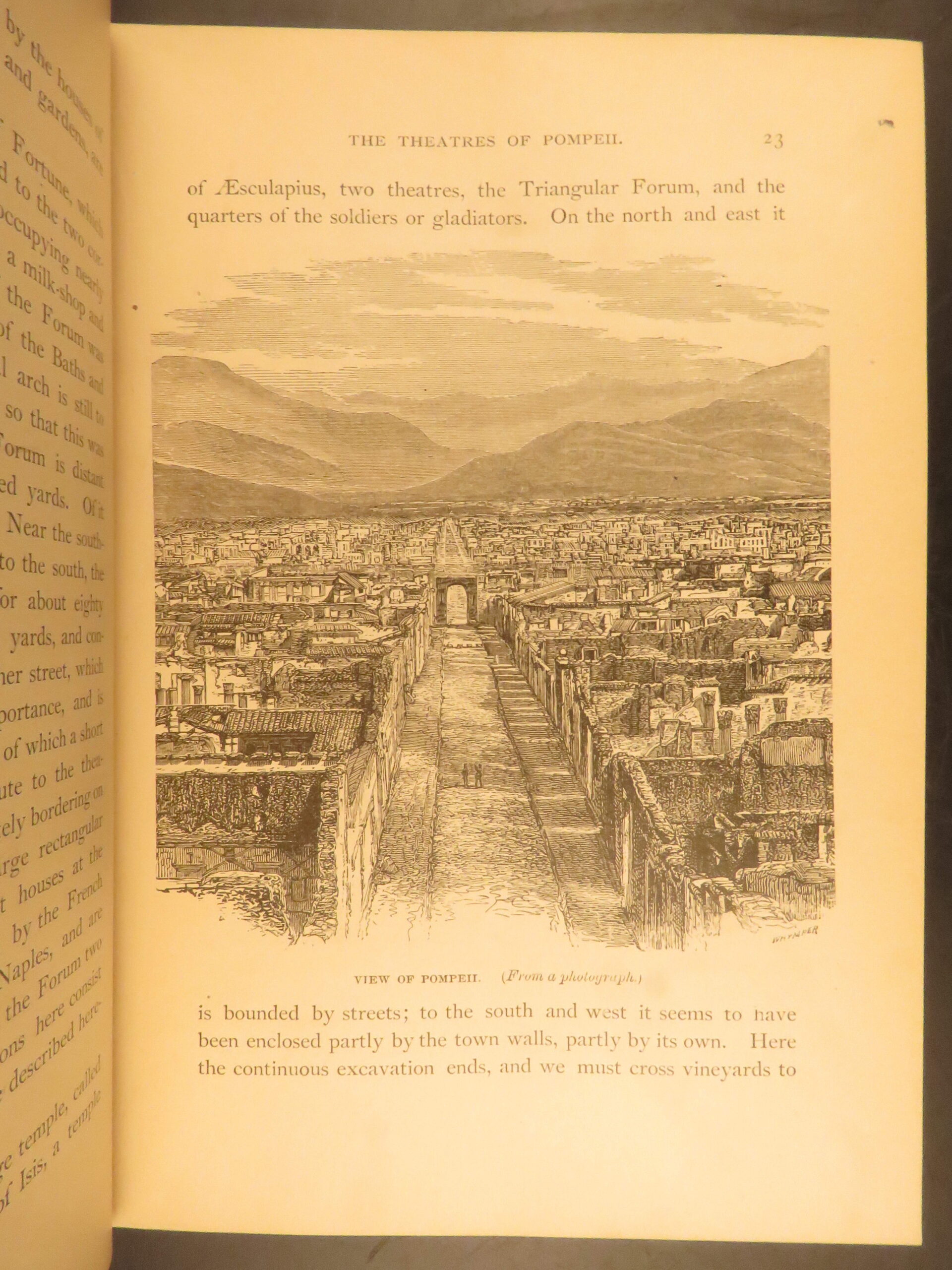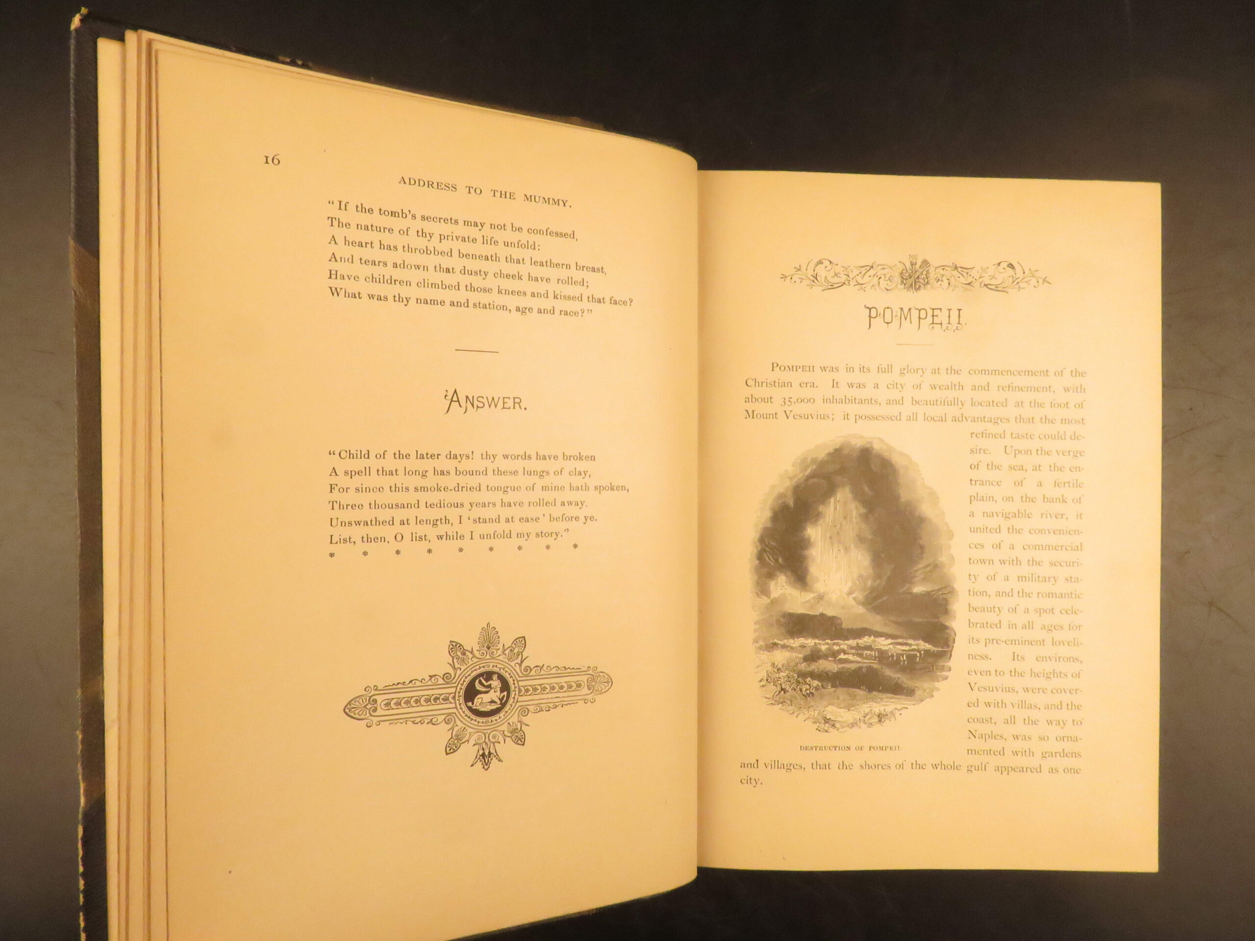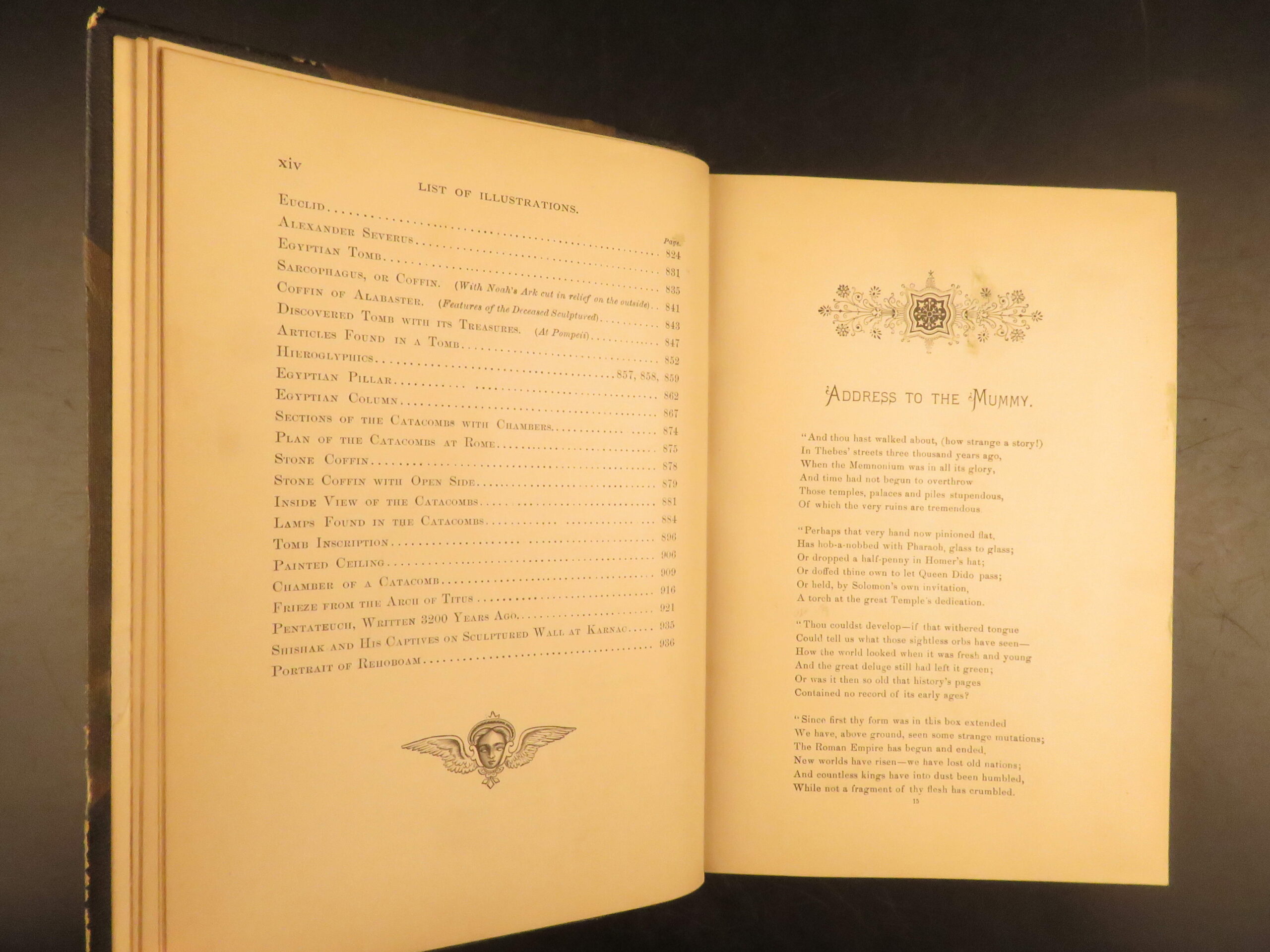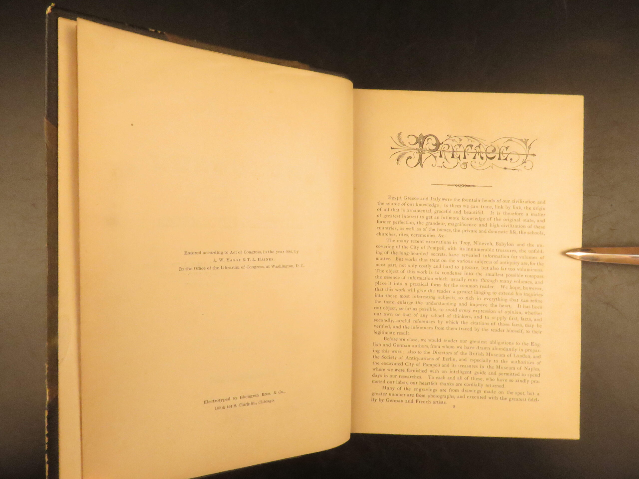 Large 1881 illustrated history exploring classical antiquity through 180 engravings, including Jewish, Egyptian, and Roman themes, with special attention to Pompeii.
