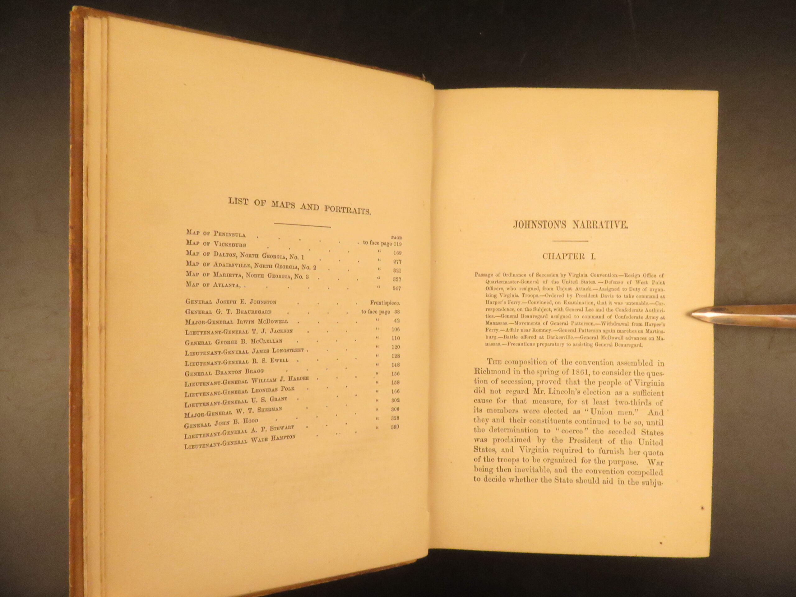 Narrative of military operations – joseph e. Johnston – 1874 | first edition, confederate general memoir |   first edition of confederate general joseph e. Johnston’s 1874 famous controversial us civil war memoir filled with criticism of confederate leadership and illustrated with 21 engraved portraits and maps.