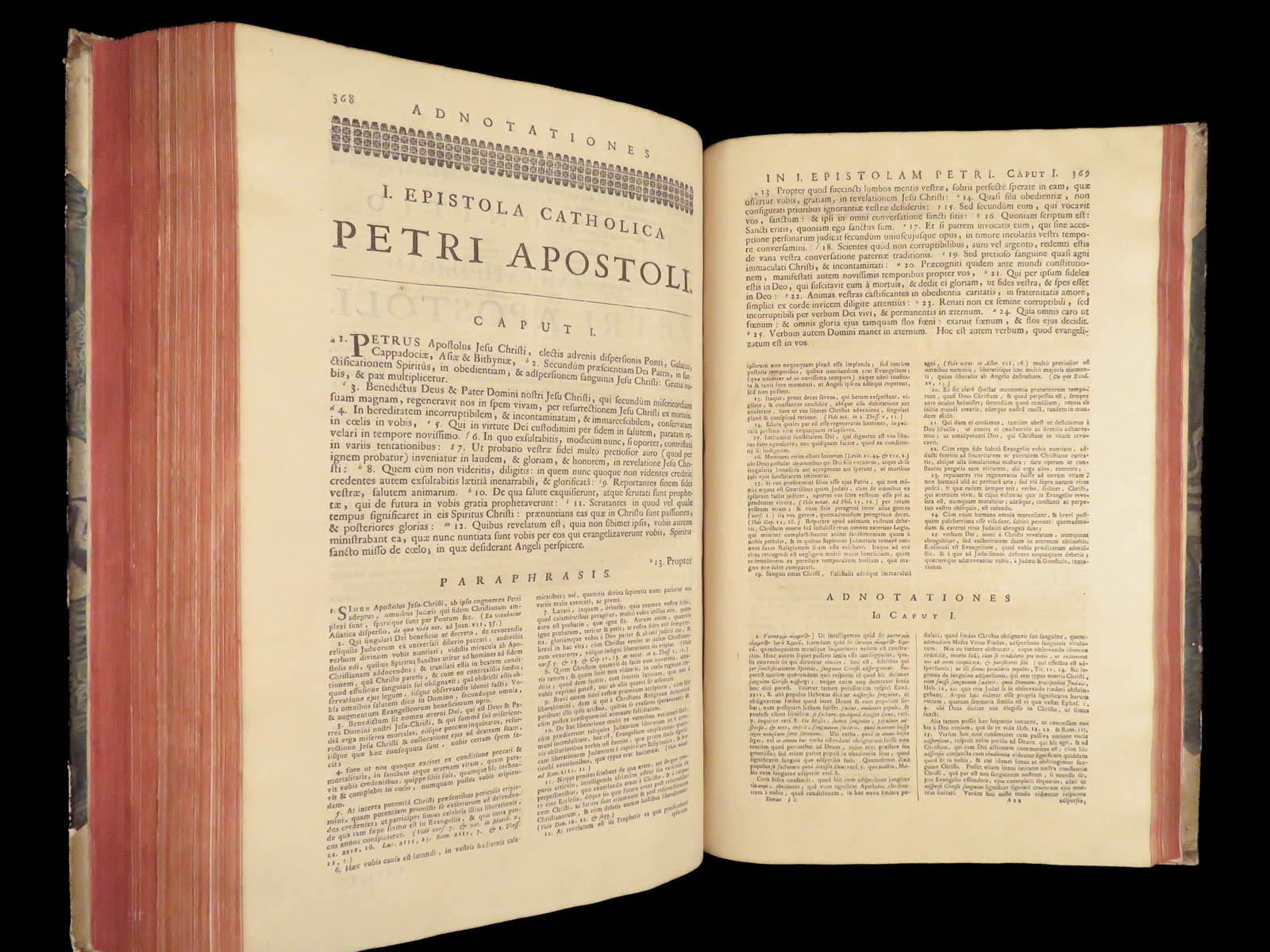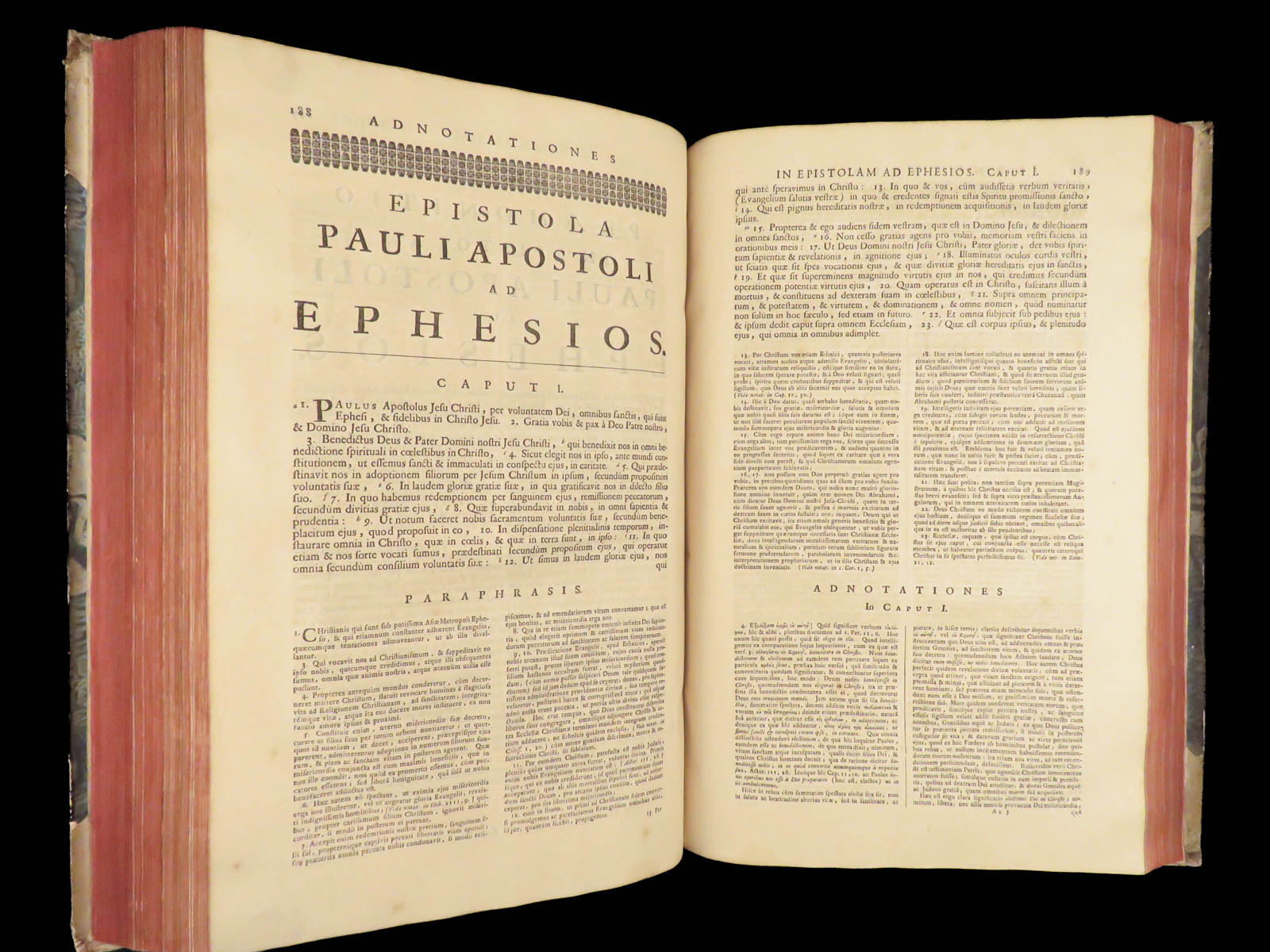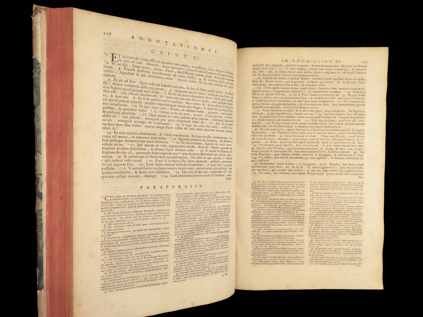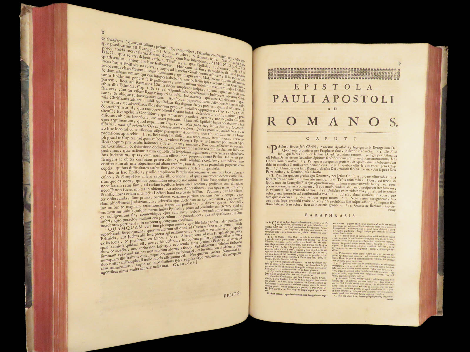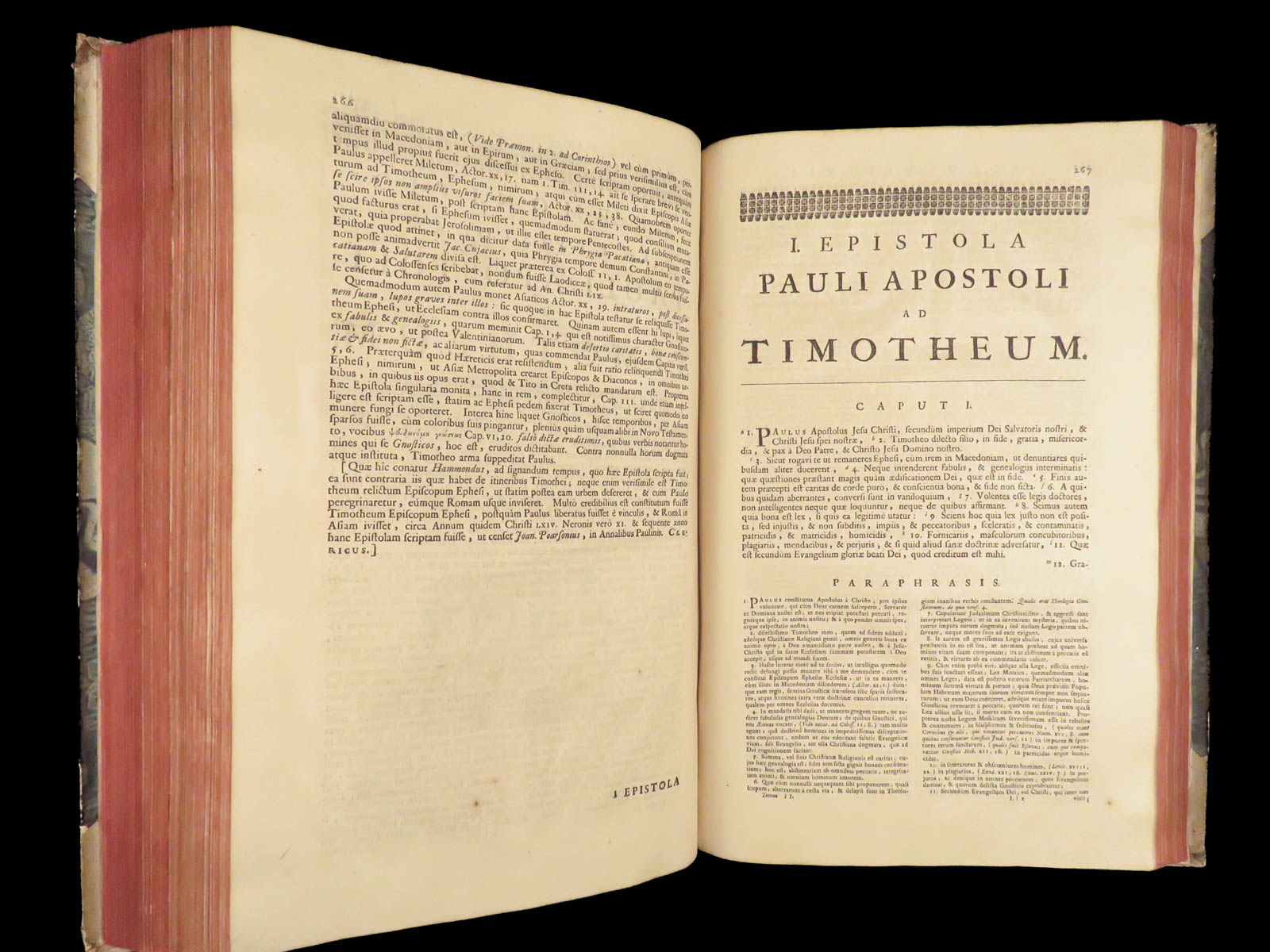 Amsterdam 1698 Latin New Testament with Henry Hammond’s paraphrase and annotations, translated by Jean Le Clerc, an influential edition of seventeenth-century Biblical scholarship.