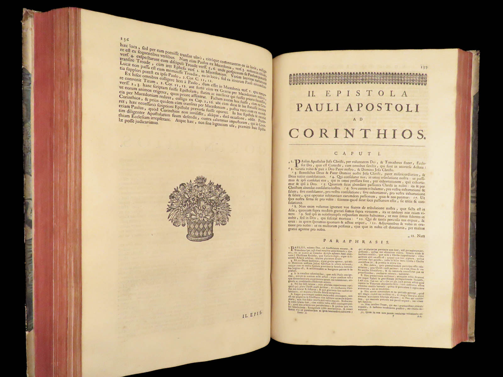 Novum Testamentum Domini nostri Jesu Christi is a rare 1698 edition of the Vulgate New Testaments Bible by Henry Hammond includes extensive annotations of the scripture, as well as the Hammond ‘Paraphrase’, translated into the Vulgate Latin by Jean Leclerc.