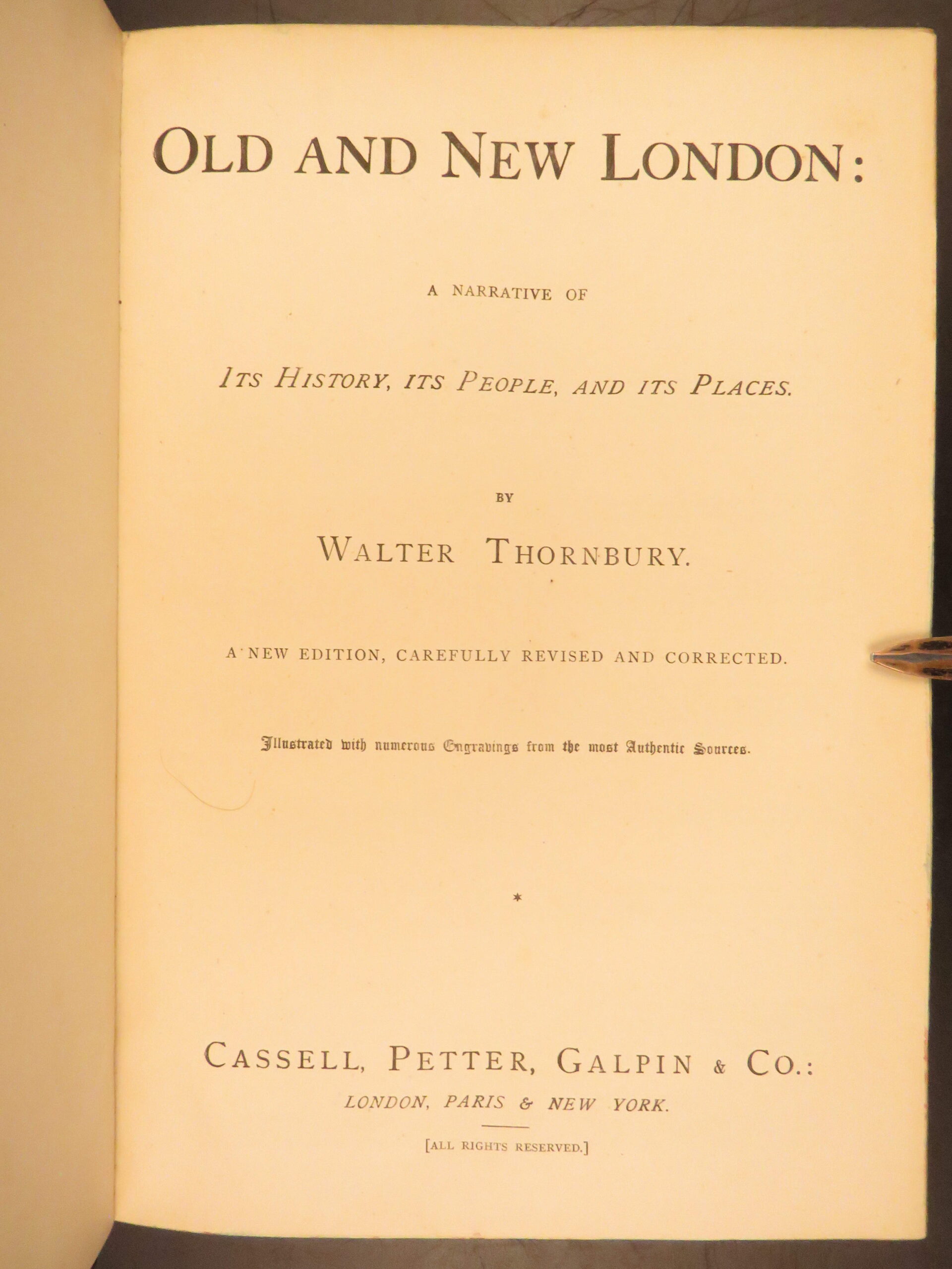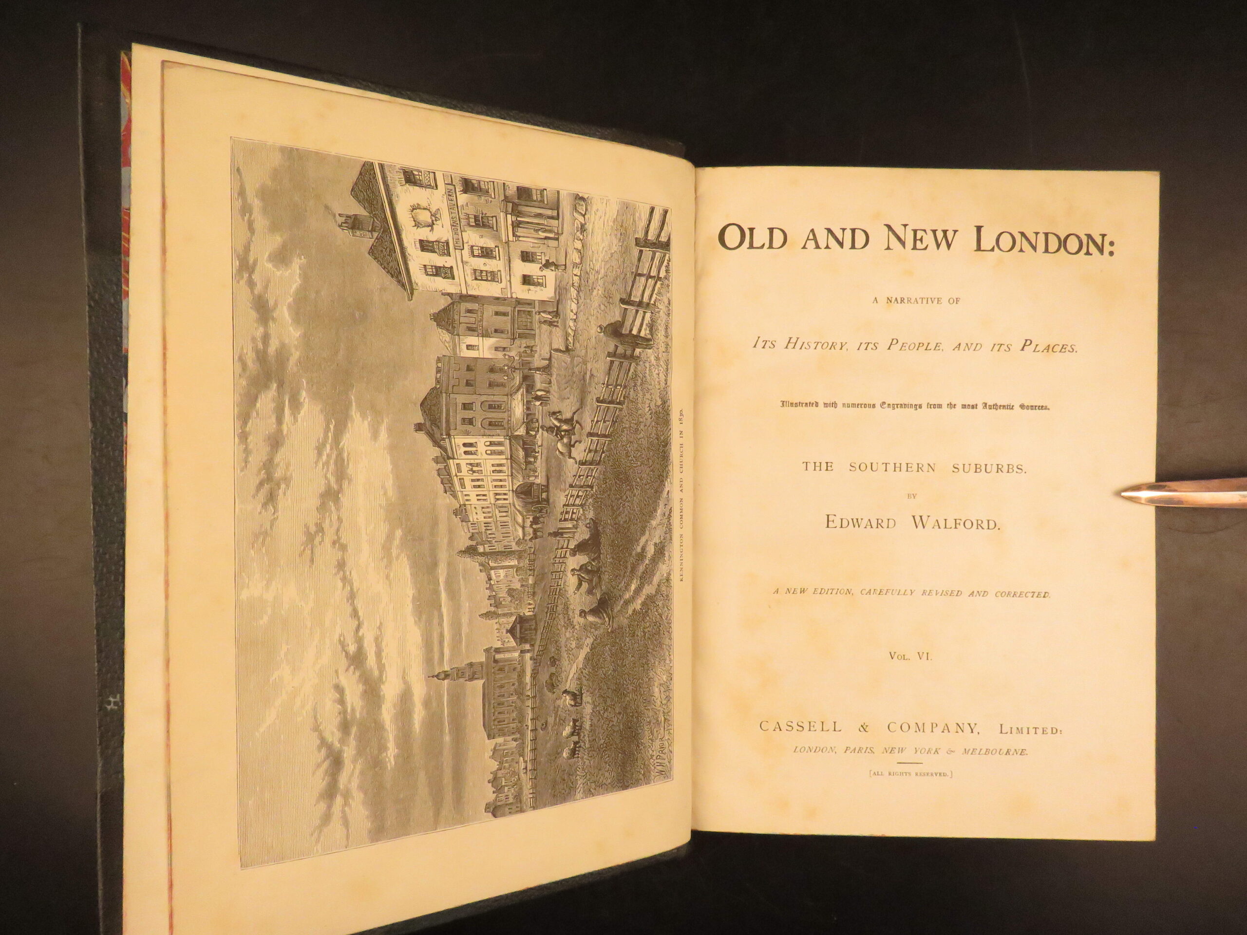 Old and New London by Edward Walford, Cassell 1879, six volume illustrated Victorian history covering the City, Westminster, and surrounding districts with numerous engraved views.