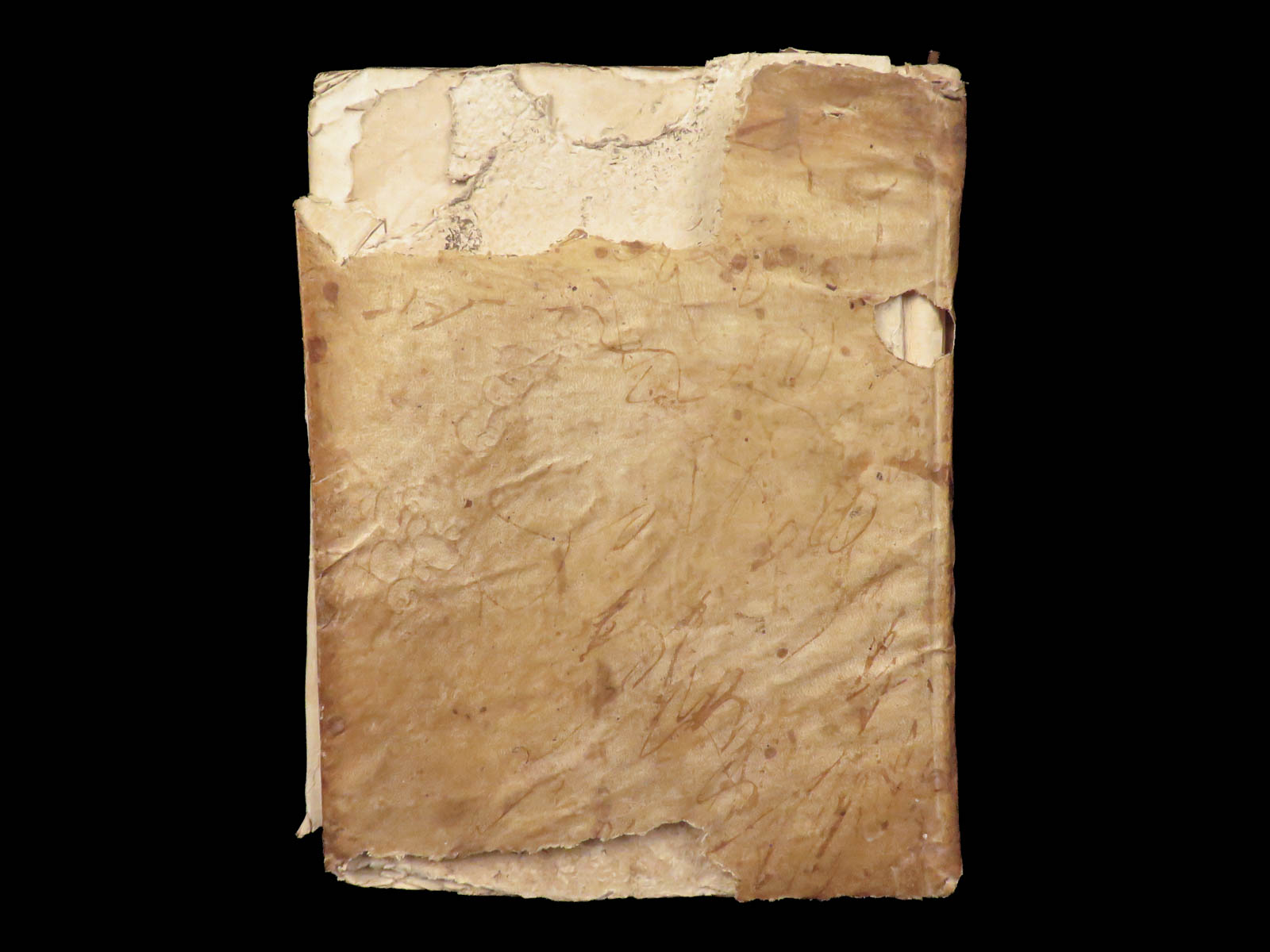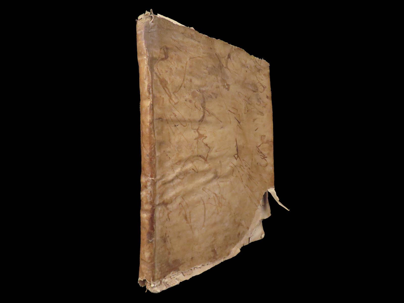 Bound in vellum with wear and some loss; corners of several pages are defective though text remains complete; Text block secure. Overall, the book is in fair condition