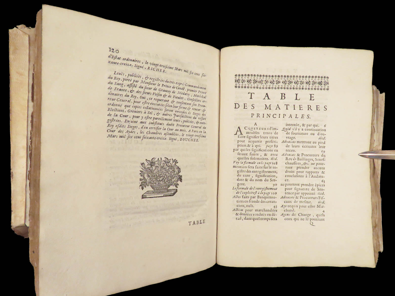 The Ordonnances de Louis XIV was the official orders on taxes and other international tariffs. This 1680 edition includes everything on the salt-tax, ordinances to regulate consumption and sale of salt as well as the punishments for salt smugglers. In fact, there was no other book written that was as complete or thorough on all salt-related taxes and laws during 17th- and 18th-century France.