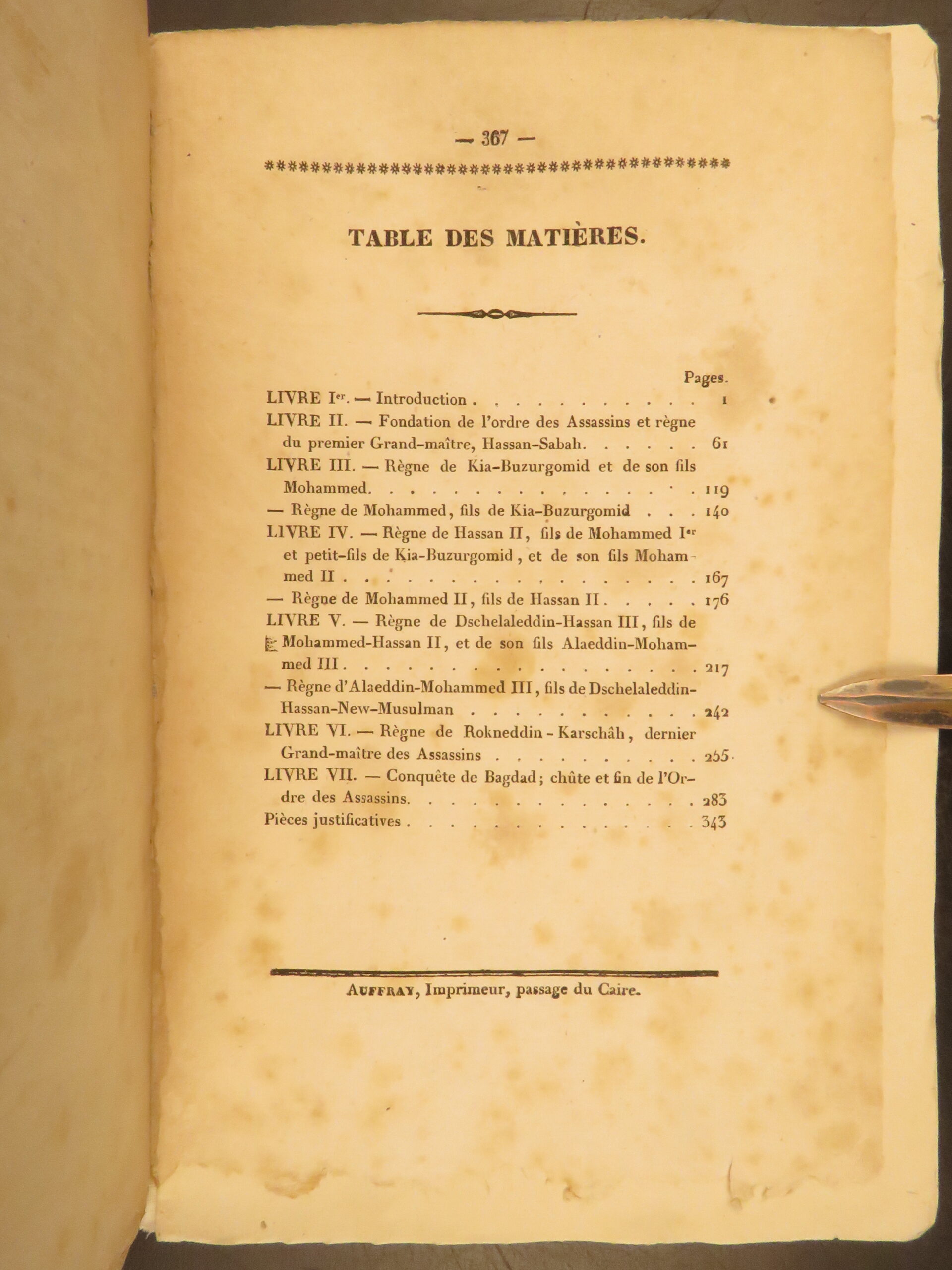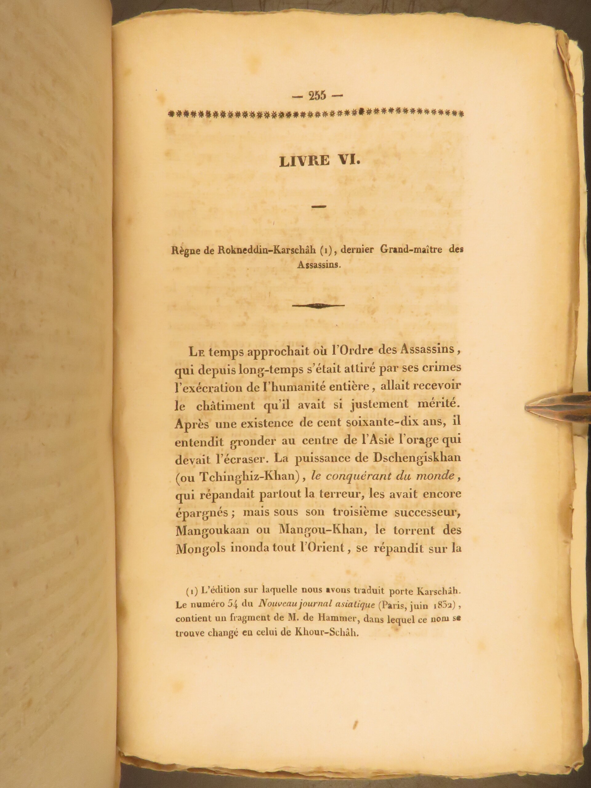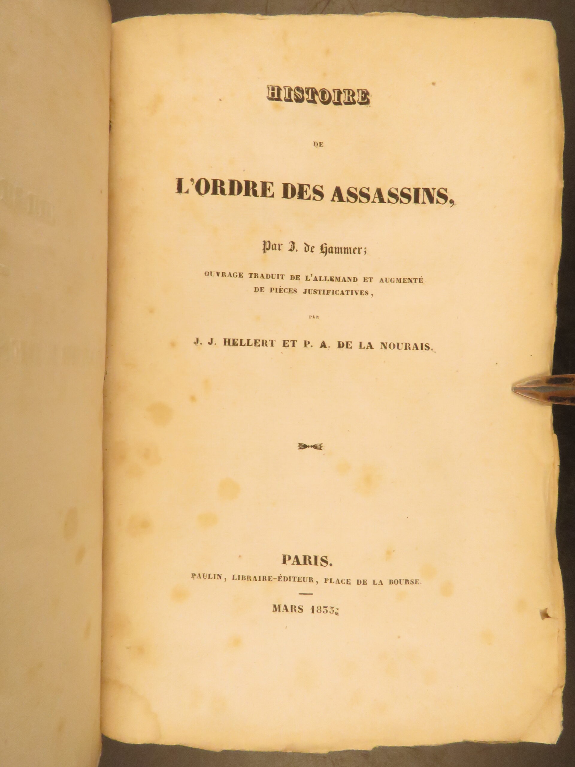 1833 – History of Order of Assassins – Hammer | First French Edition of the Nizari Ismailis