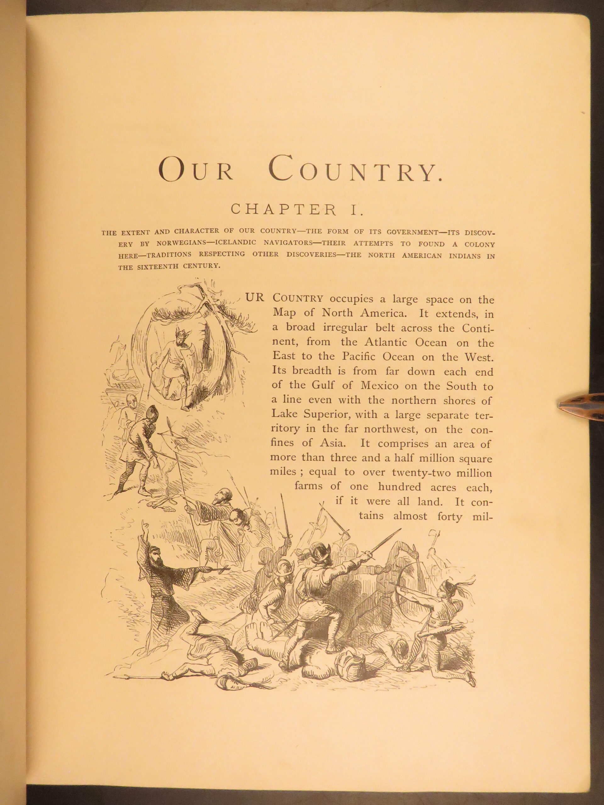 A rare 19th-century historical account of America. Written by Benson Lossing, this book, Our Country, provides a comprehensive look at the history of the United States beginning with the discovery of the Americas. Lossing’s book contains important information of the American Revolution, the Civil War, important men of America, presidents, and includes, at the end of Volume III, the Declaration of Independence, the Articles of Confederation, the Constitution, and Washington’s Farewell Address, and much more.