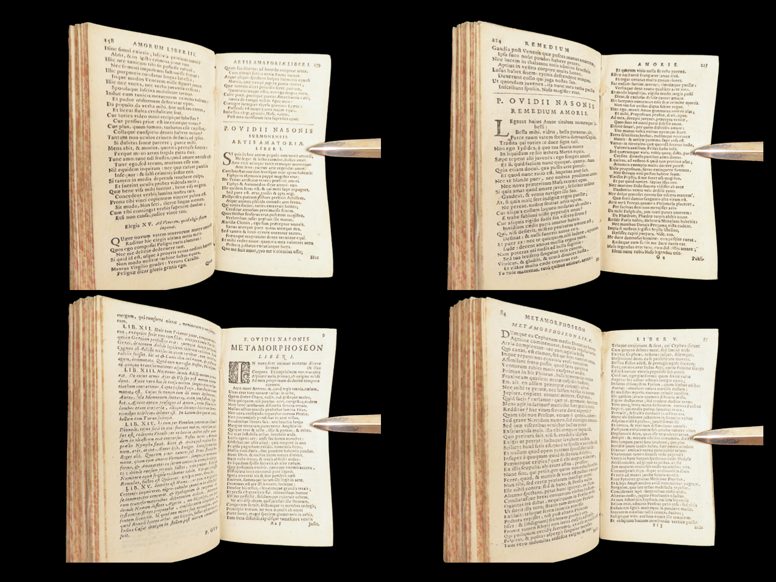 - Heroidum Epistolae, Amorum libri III, De Arte Amandi libri III, De Remedio Amoris libri II