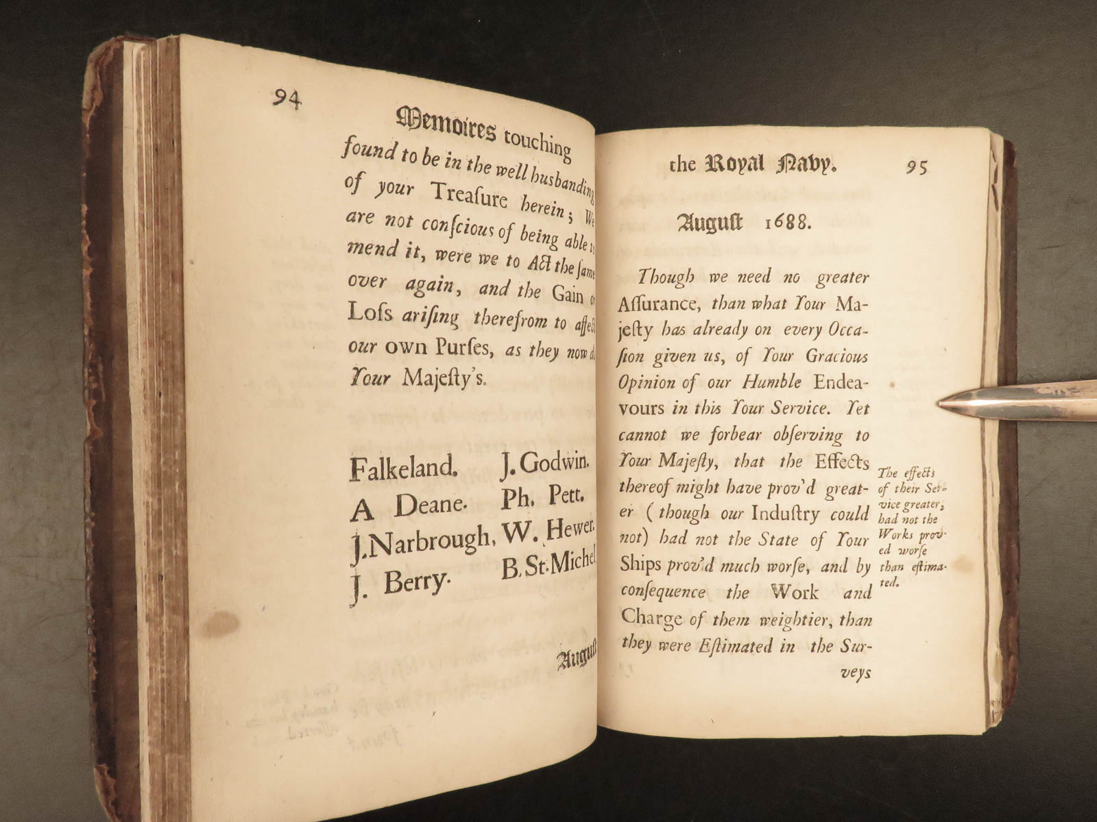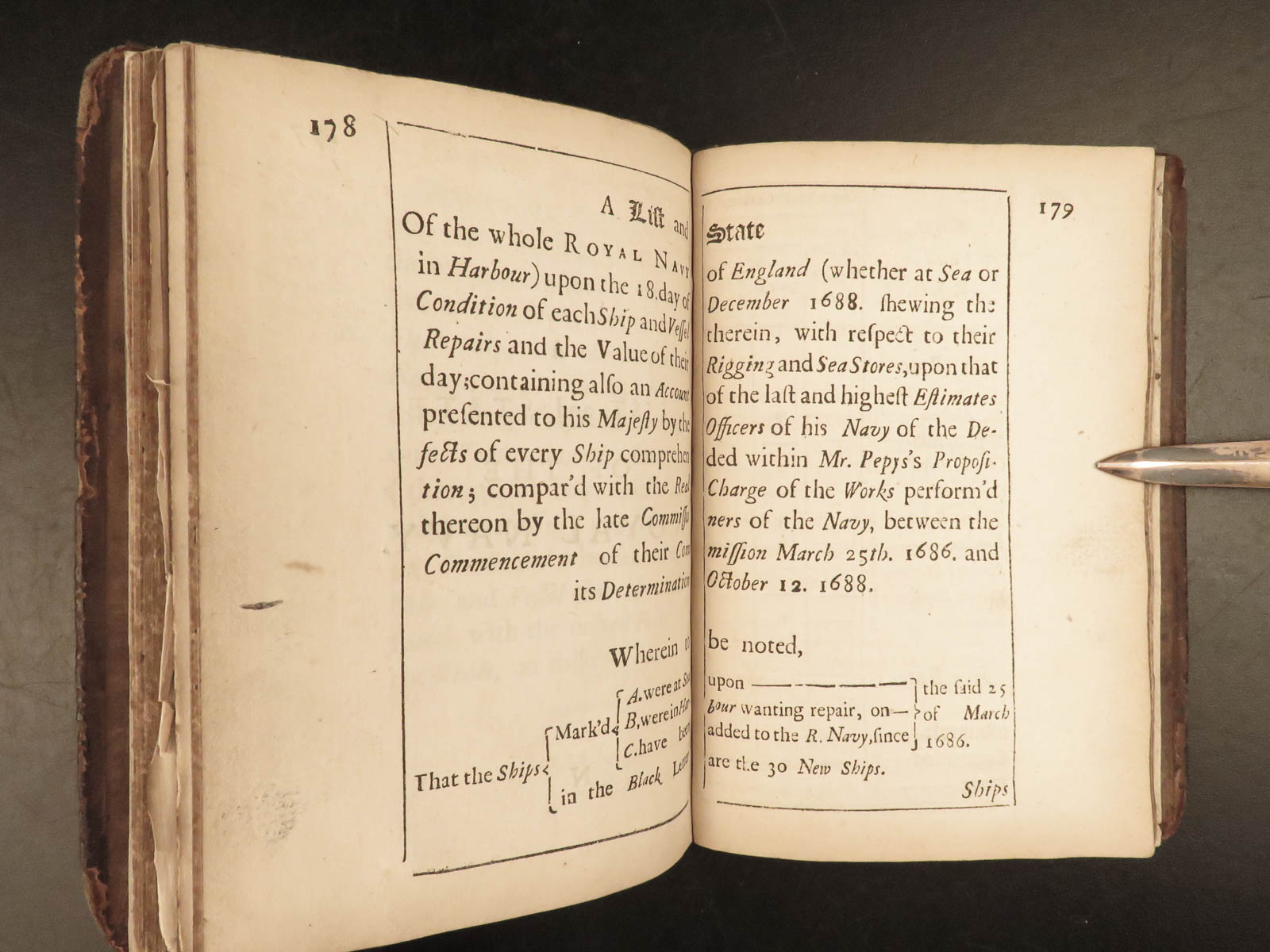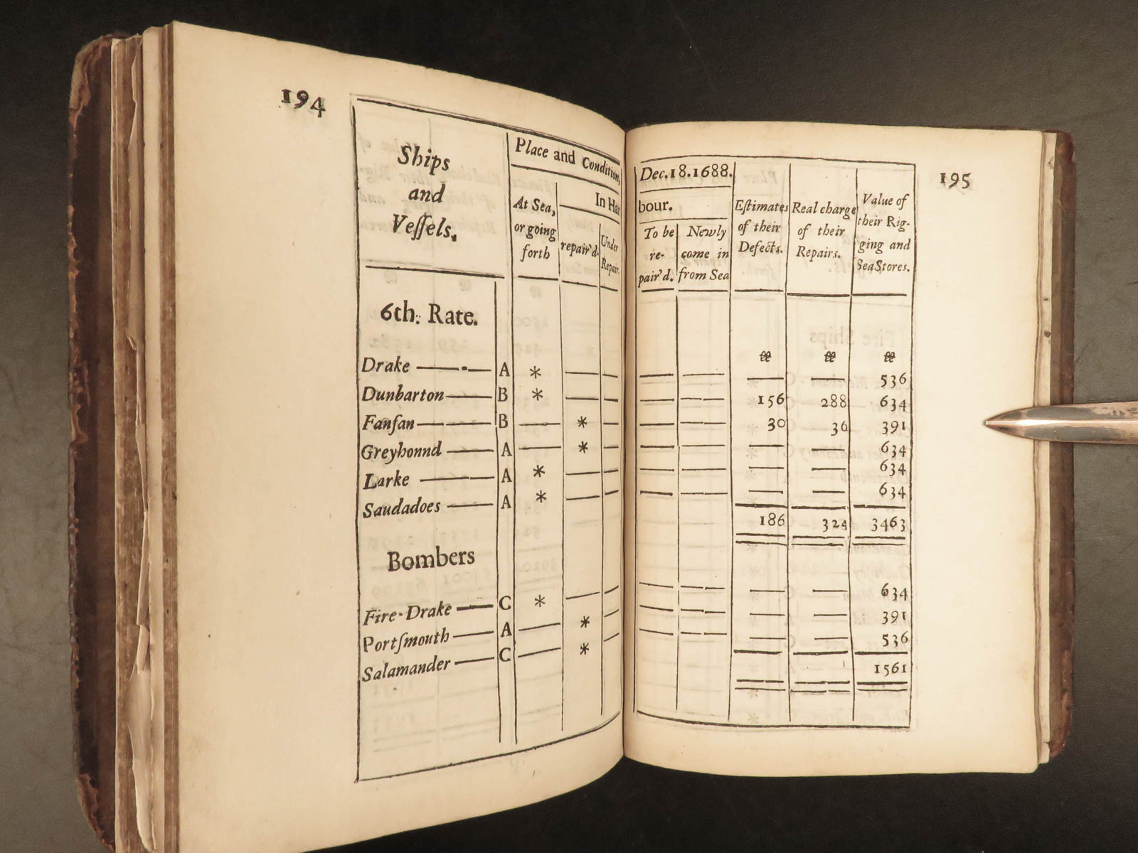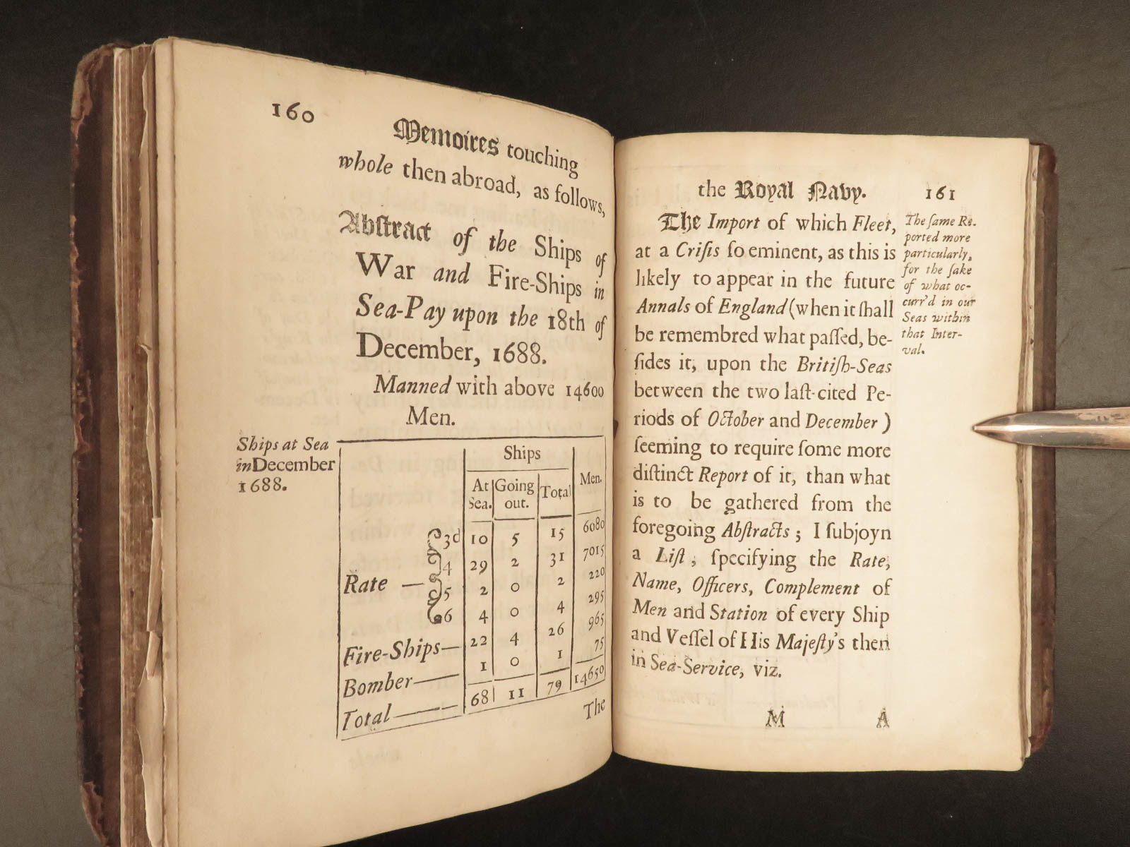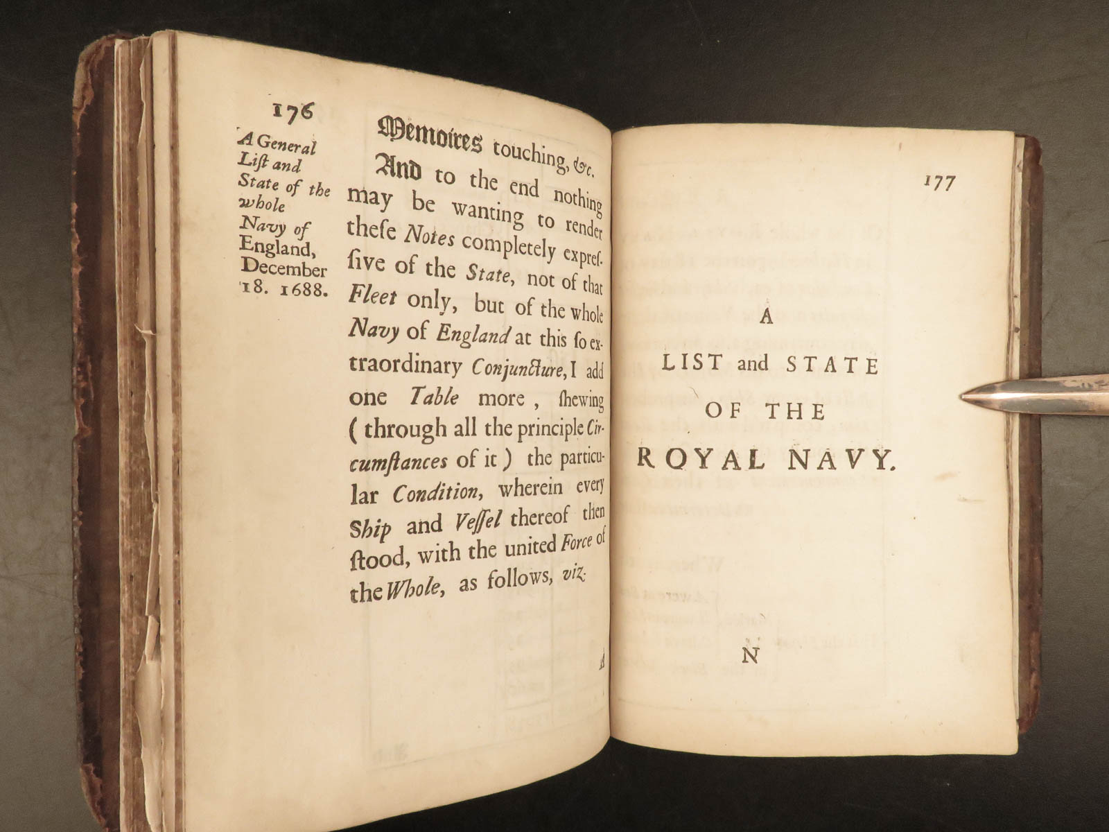 1690 Samuel Pepys 1ed State of Royal NAVY of England Glorious Revolution SHIPS