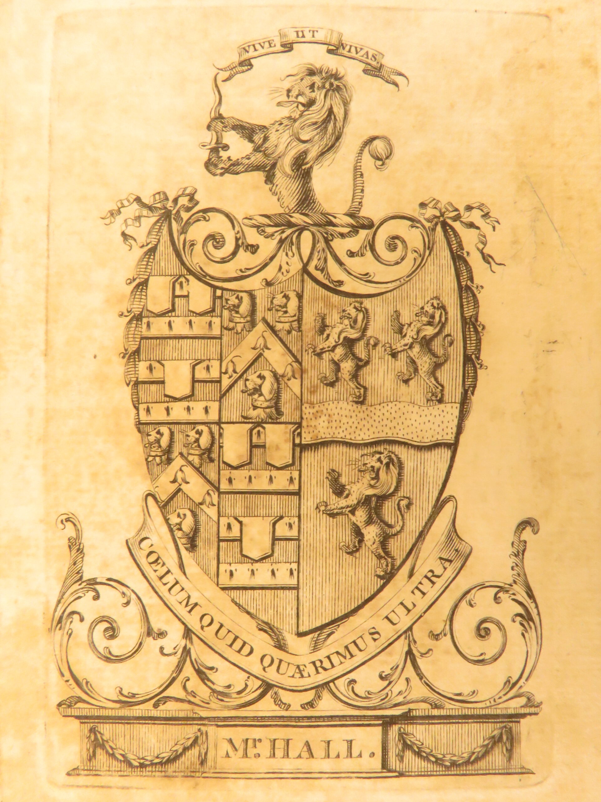 - Provenance: Armorial bookplate – Mr. Hall; motto “Coelum Quid Quaerimus Ultra”
