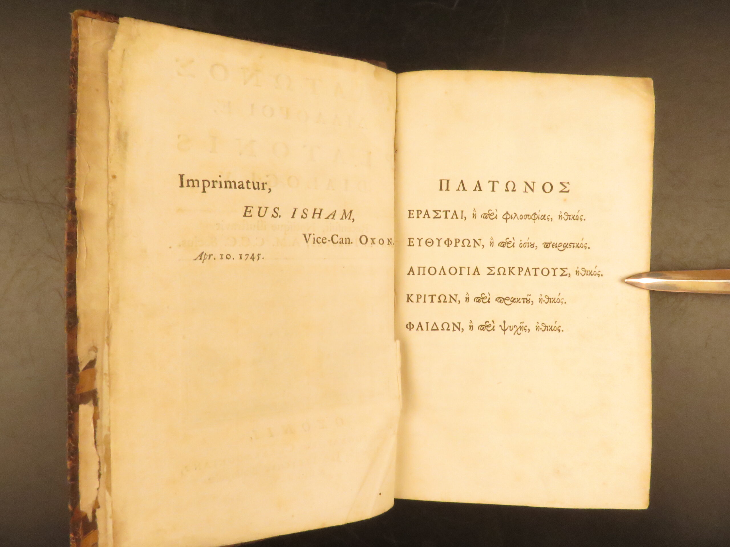1745 – First Oxford edition of Plato’s Dialogues | Platonis Dialogi