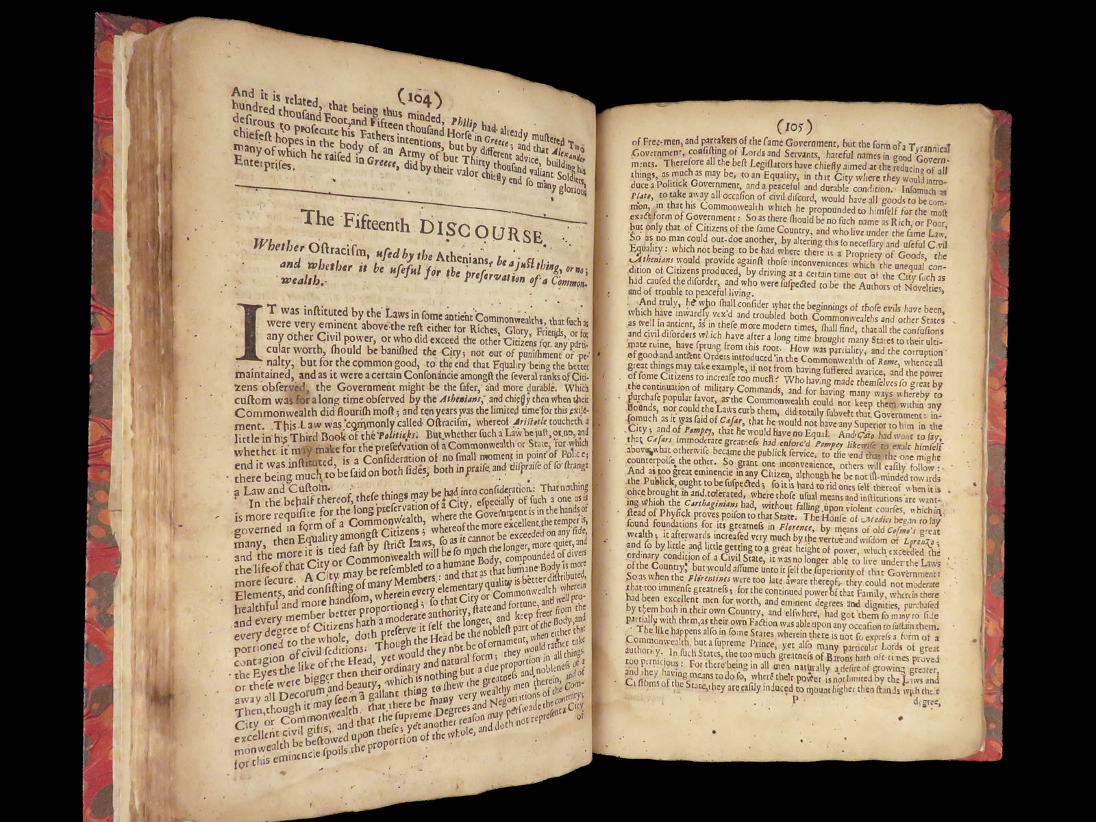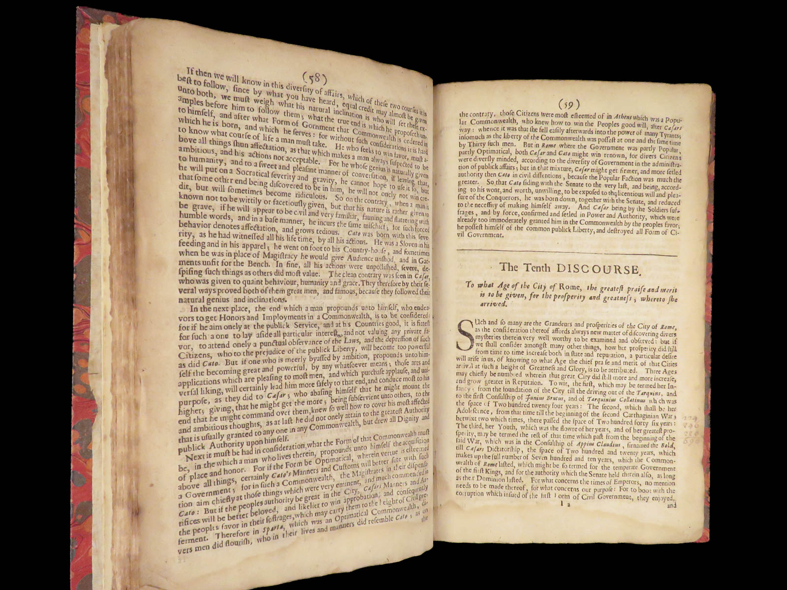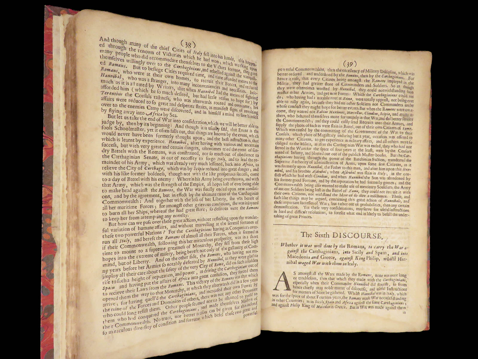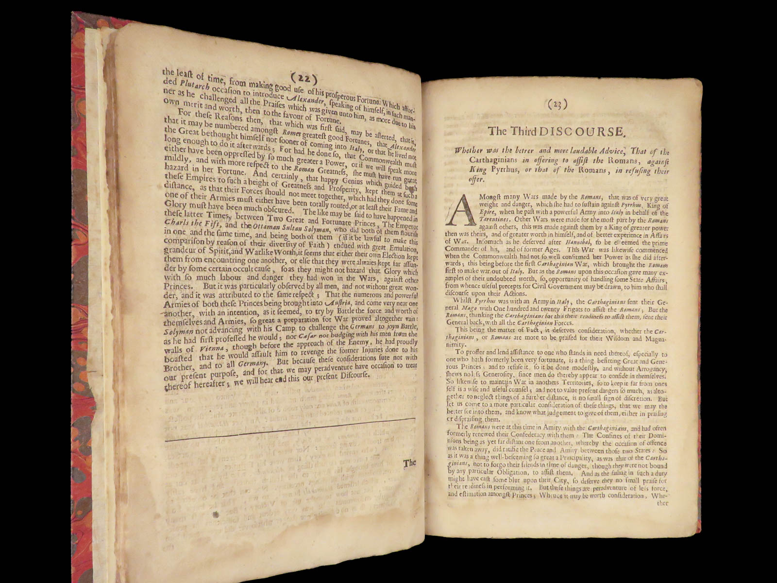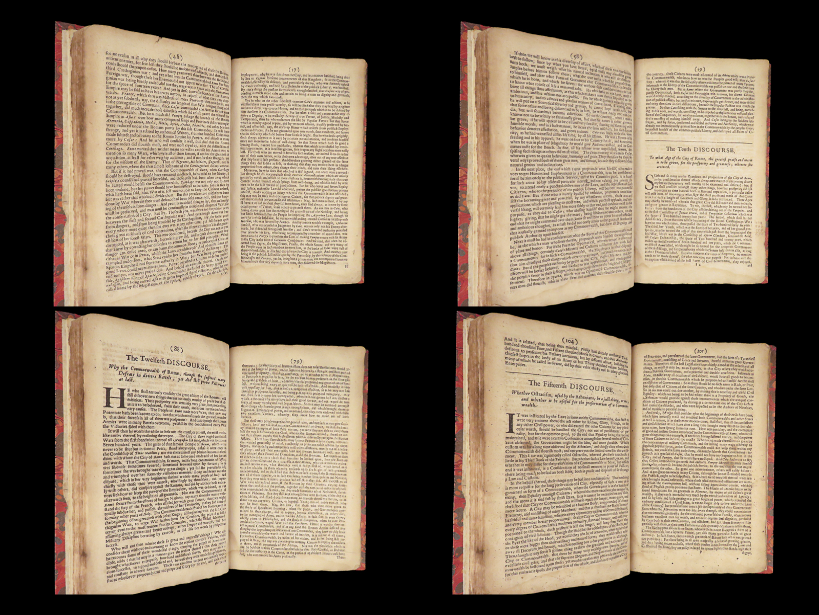 This 1657 printing is the first English edition of Discorsi politici, translated into English by Henry Carey, 2nd Earl of Monmouth.