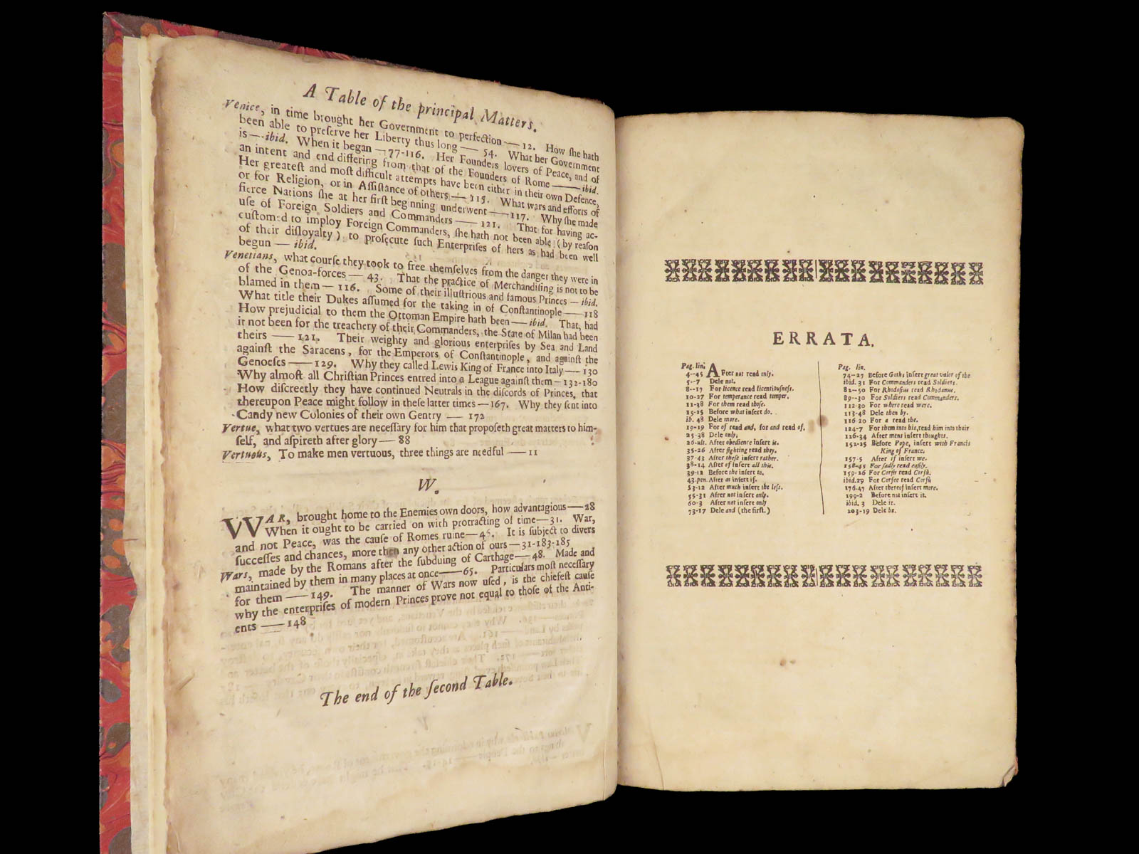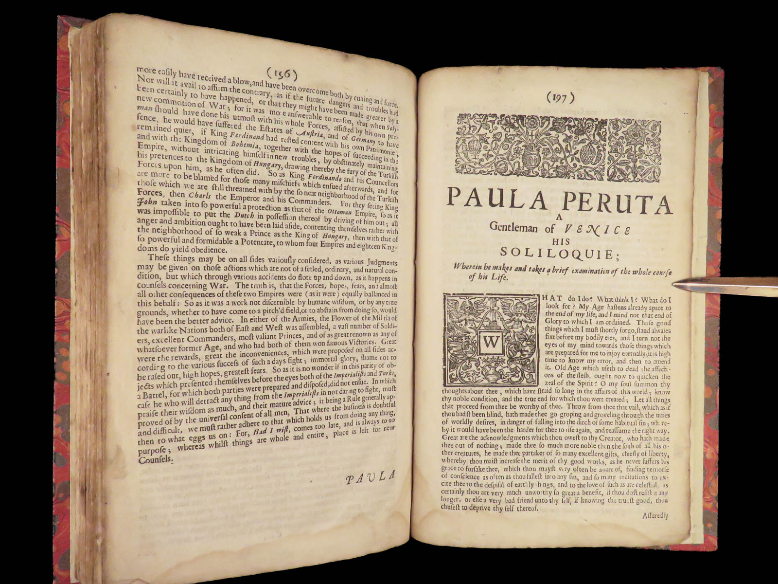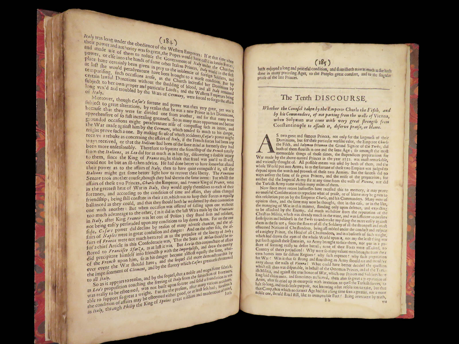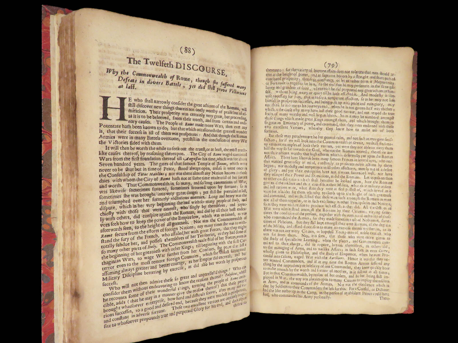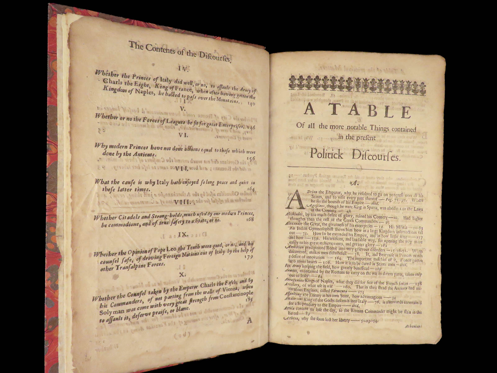 This 1657 printing is the first English edition of Discorsi politici, translated into English by Henry Carey, 2nd Earl of Monmouth.