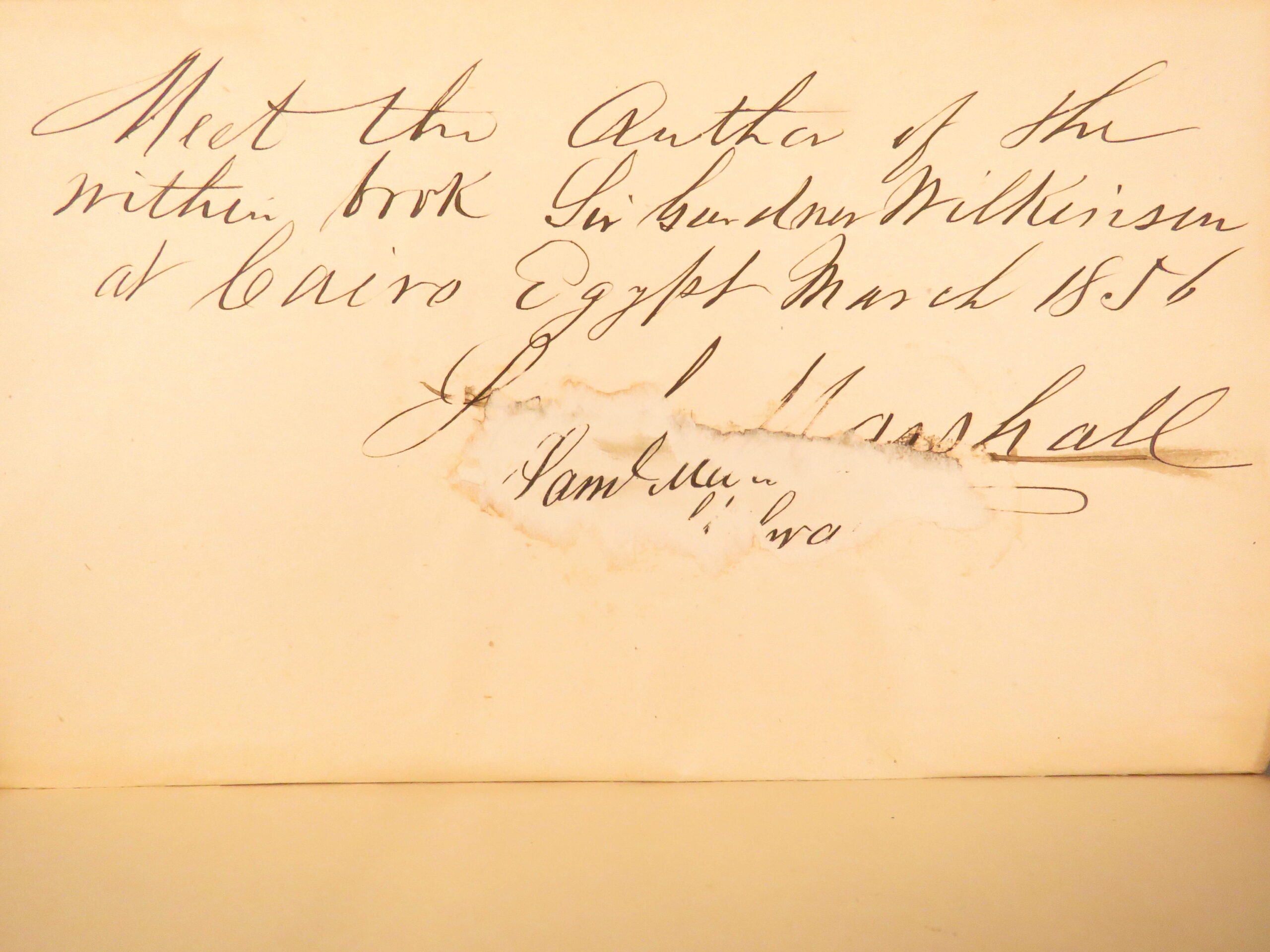 - Provenance: Handwritten inscription from [Saml. Marshall], who met Wilkinson in Cairo, Egypt in March 1856.