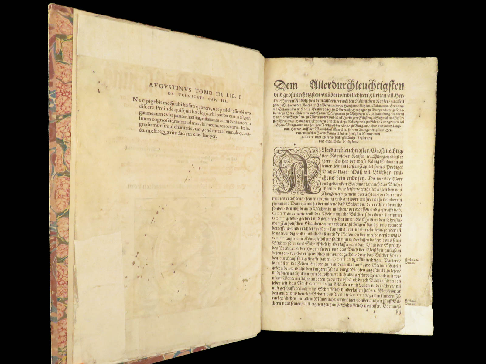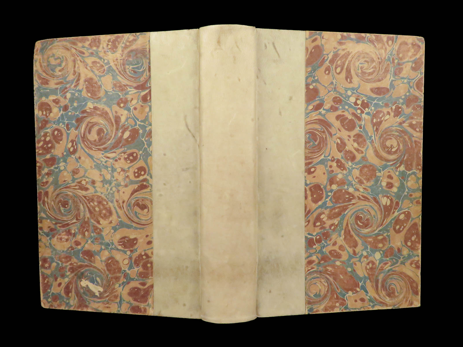 - Beautiful vellum over marbled boards and marbled end papers