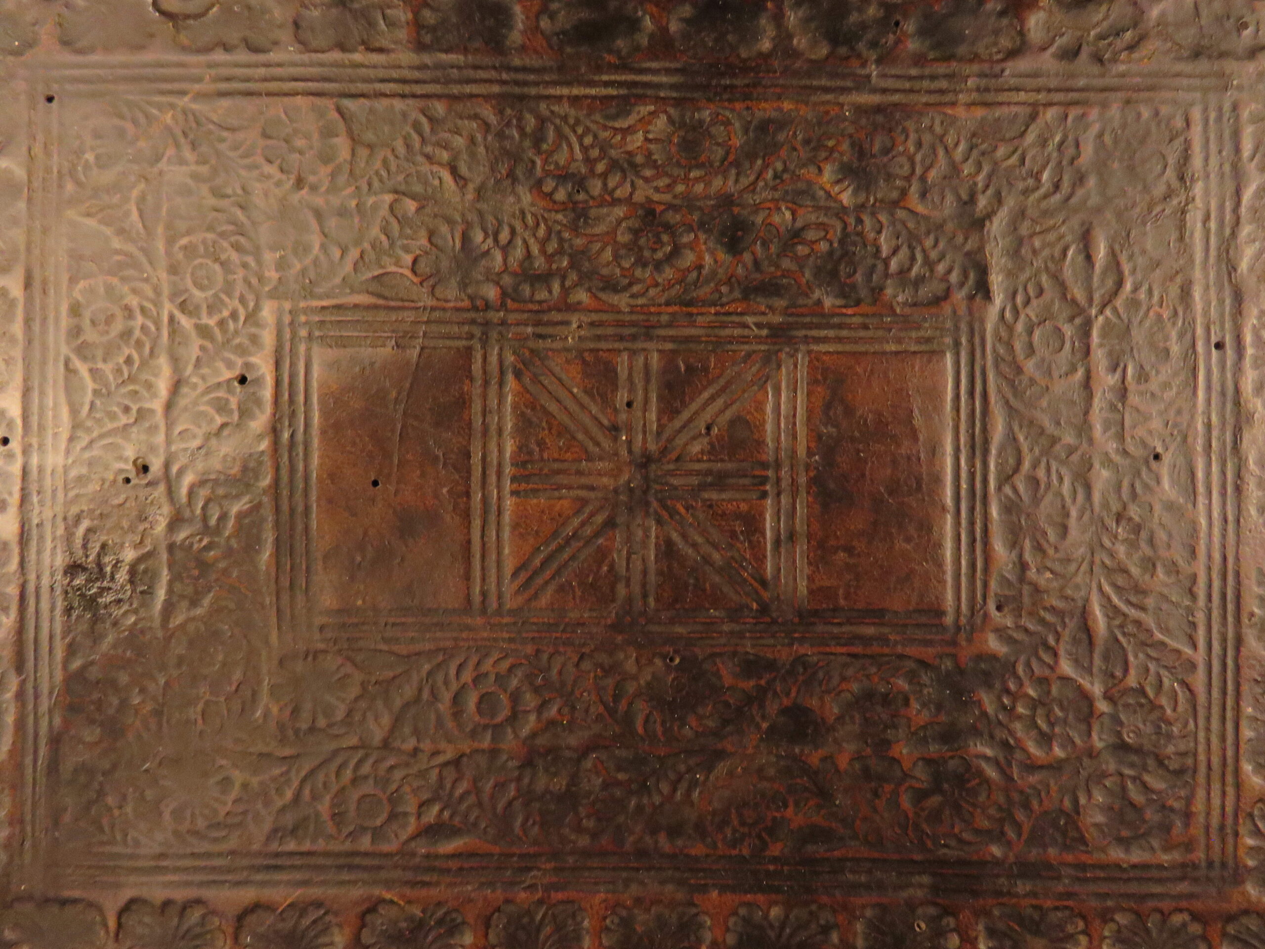 Good. Period full leather binding with tooling, showing minor loss at corners and edges. Text block is intact and firm. Pages clean with visible woodcut prints. Brass clasps no longer functioning.