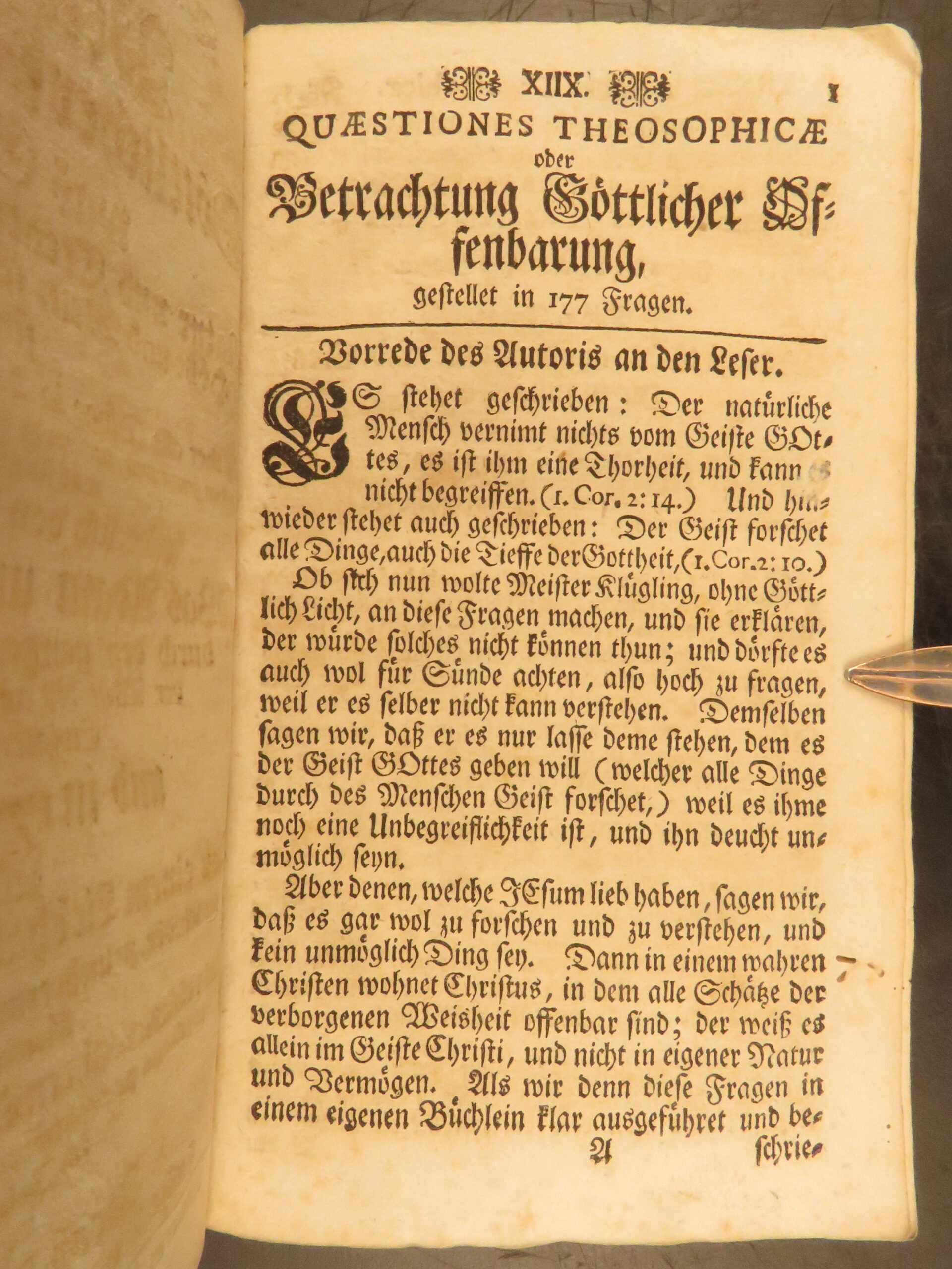 Quaestiones Theosophicae – Jakob Böhme – 1730 | Early German Mystical Philosophy