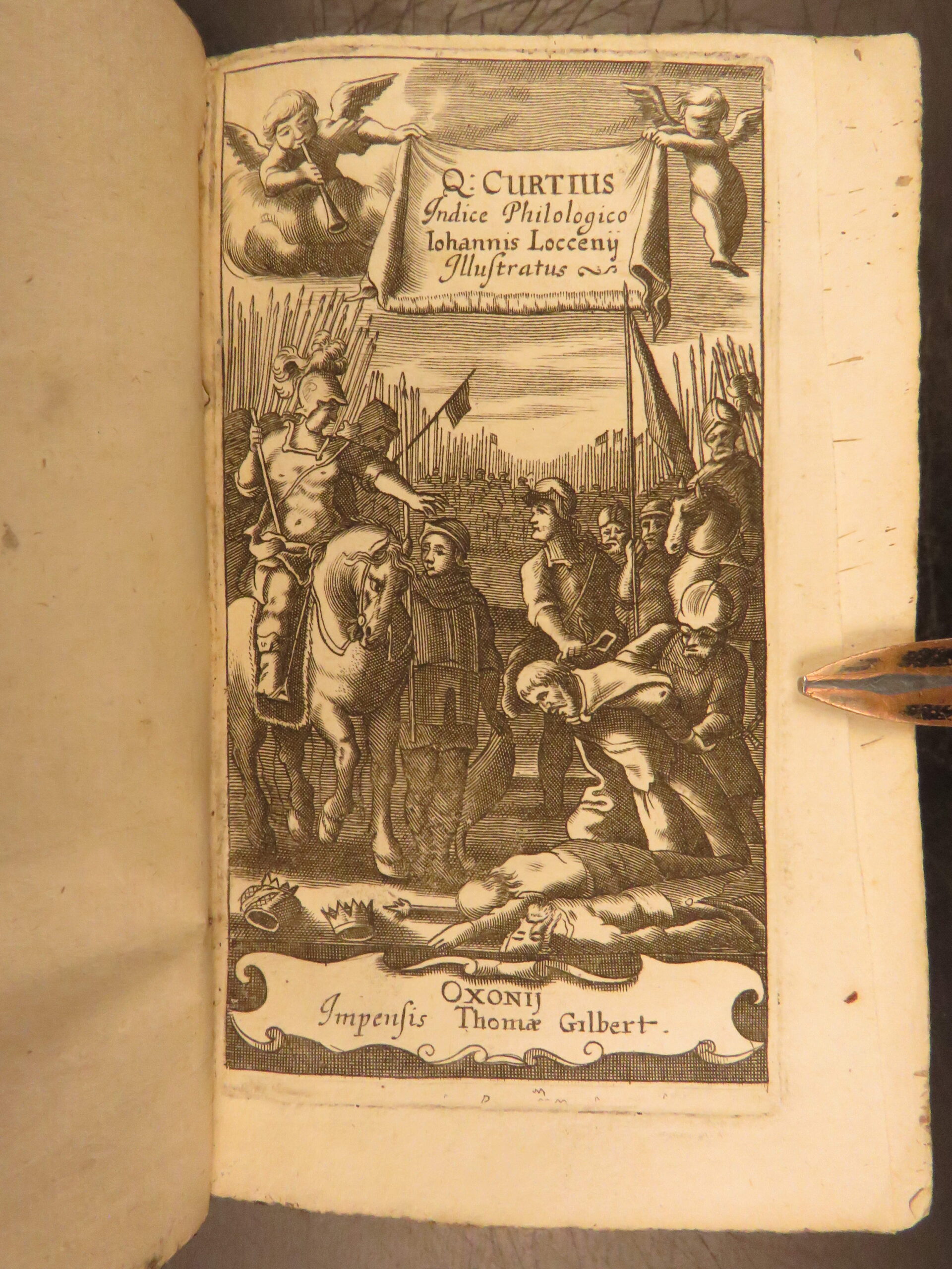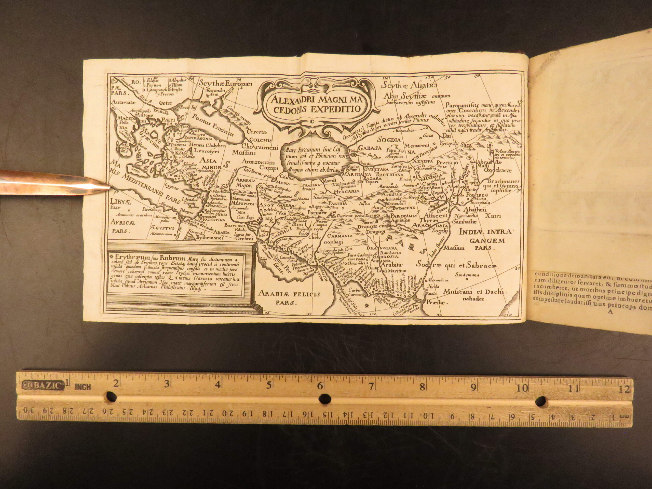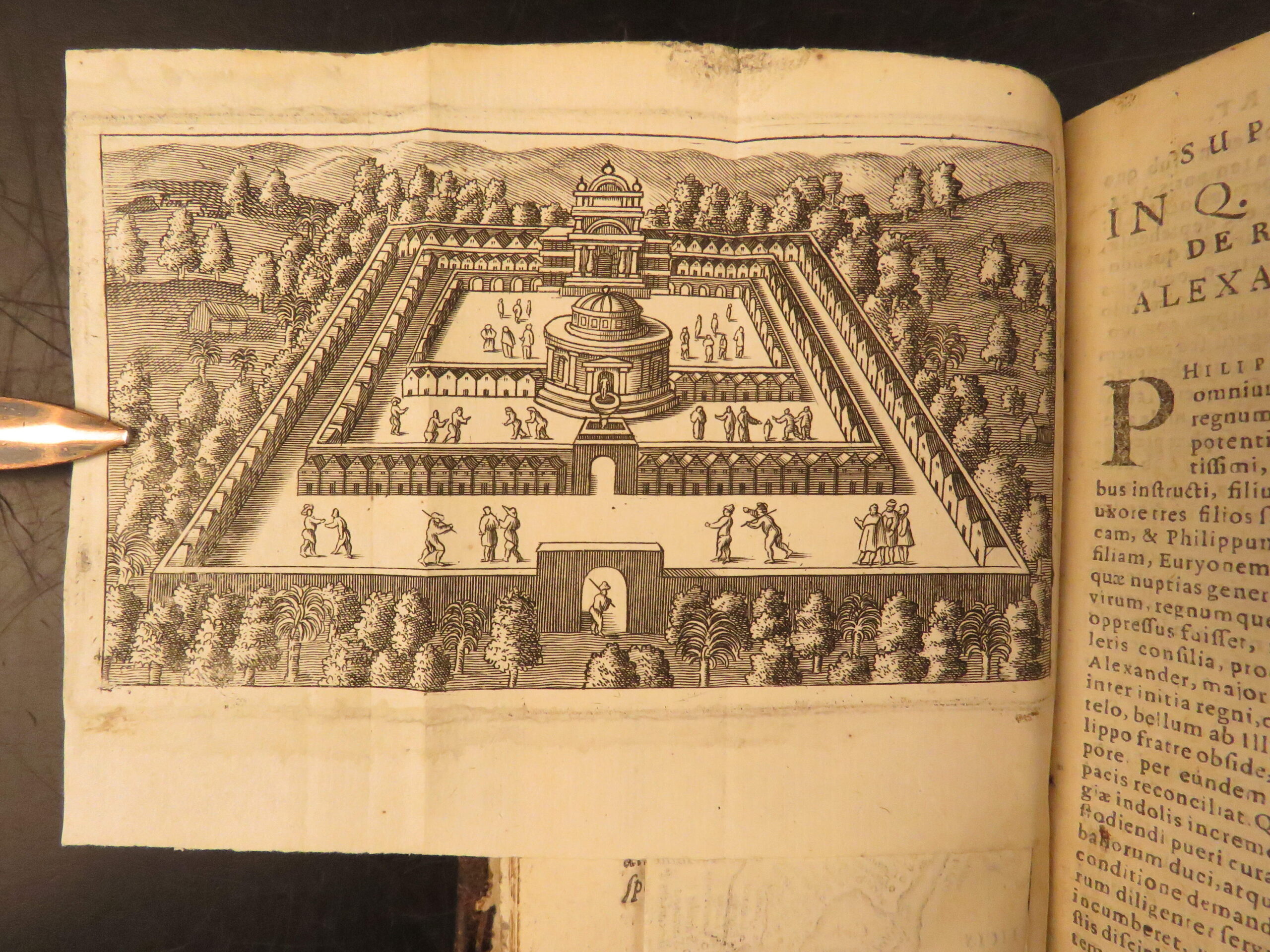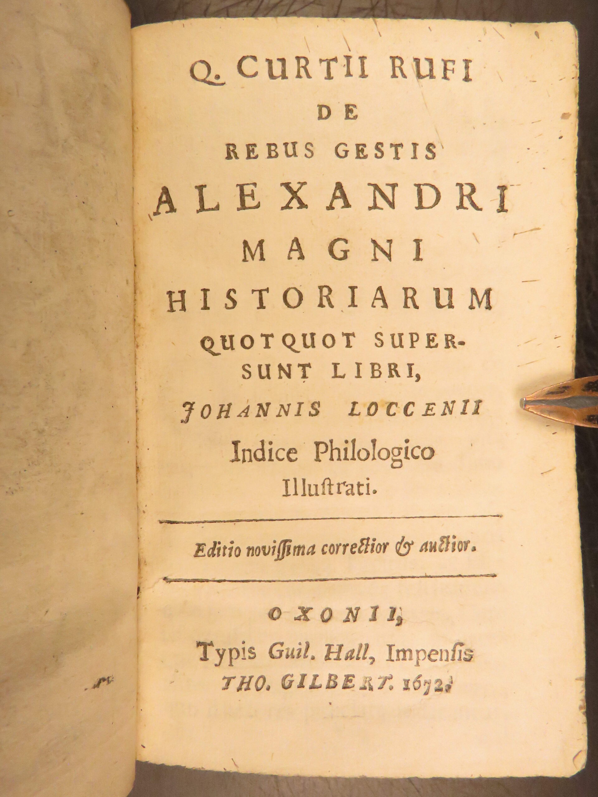 Curtius Rufus’ De Rebus Gestis Alexandri Magni, Oxford 1672, is a Latin account of Alexander the Great with folding engravings in full leather.