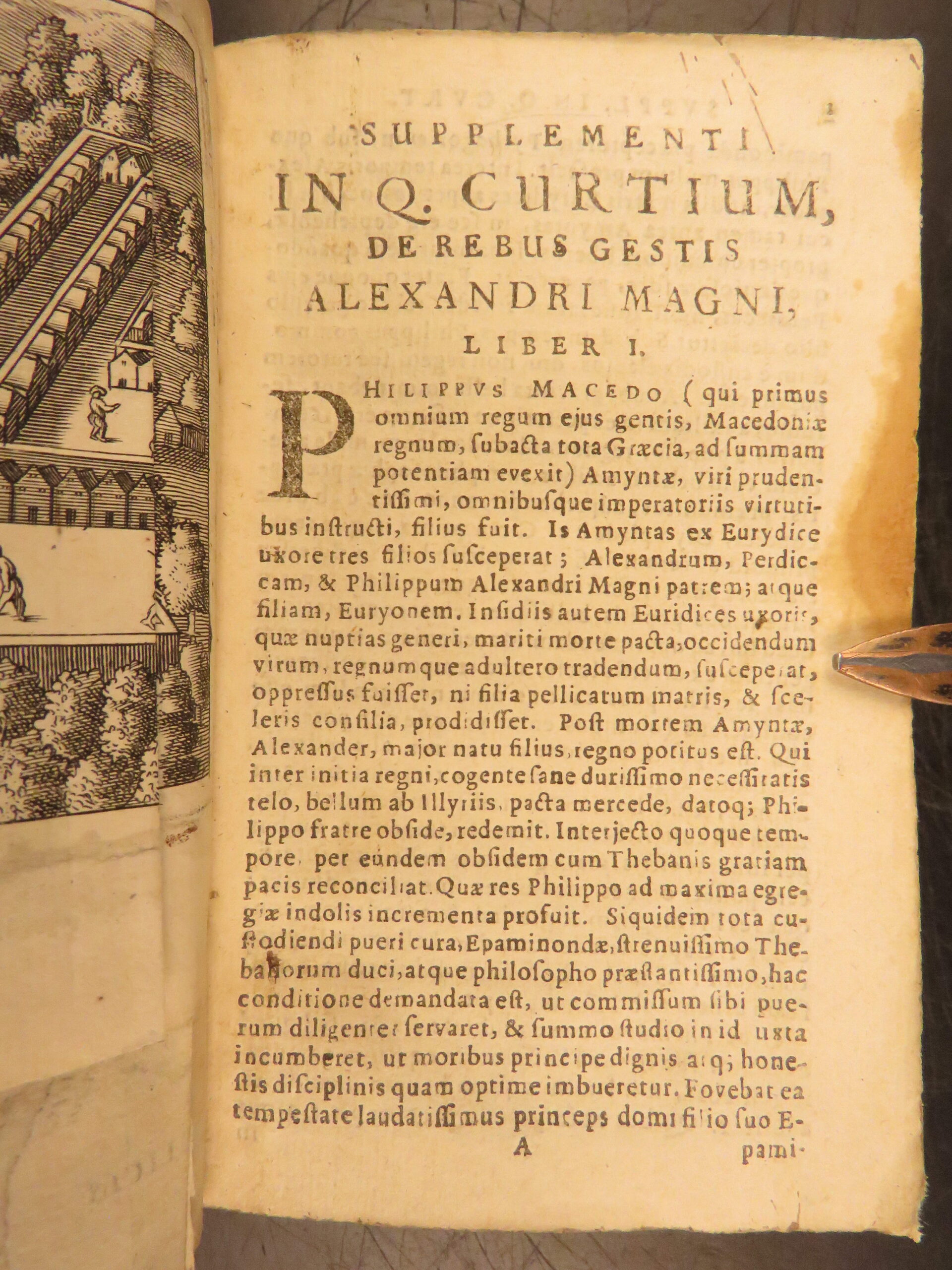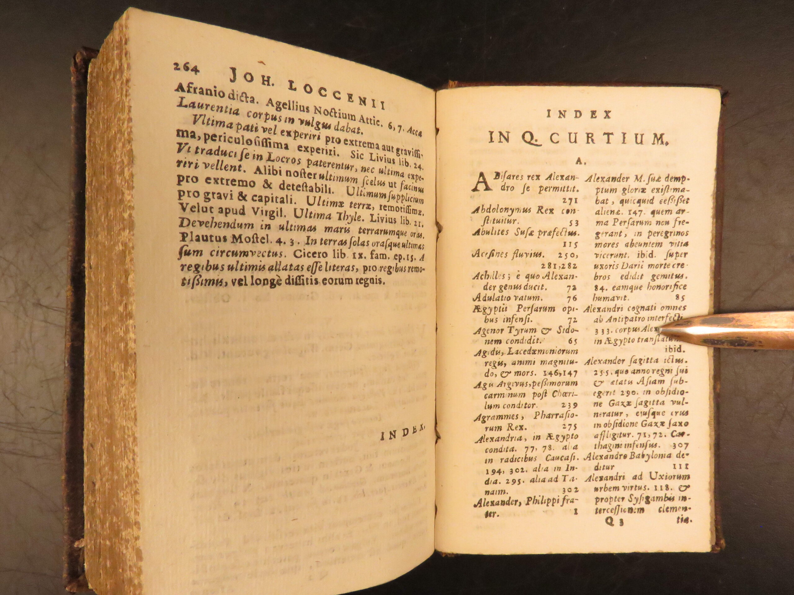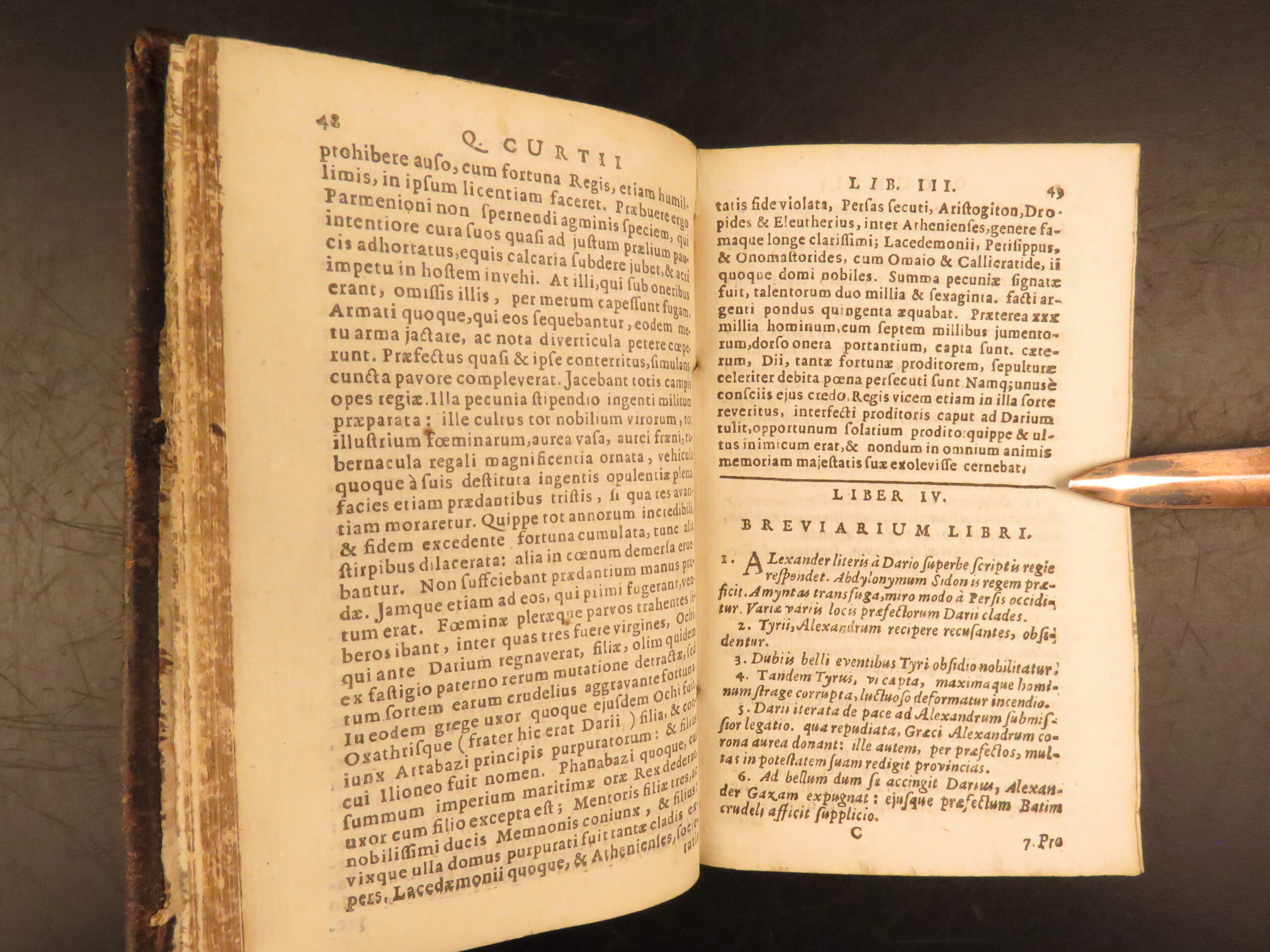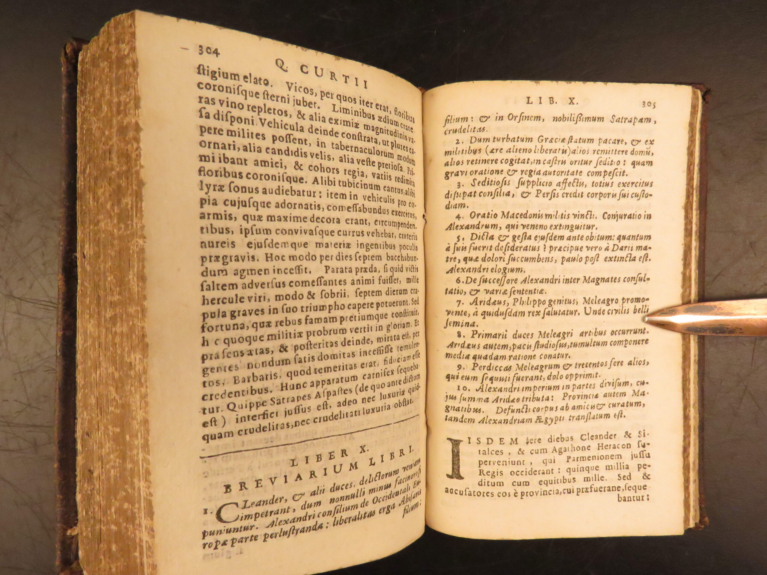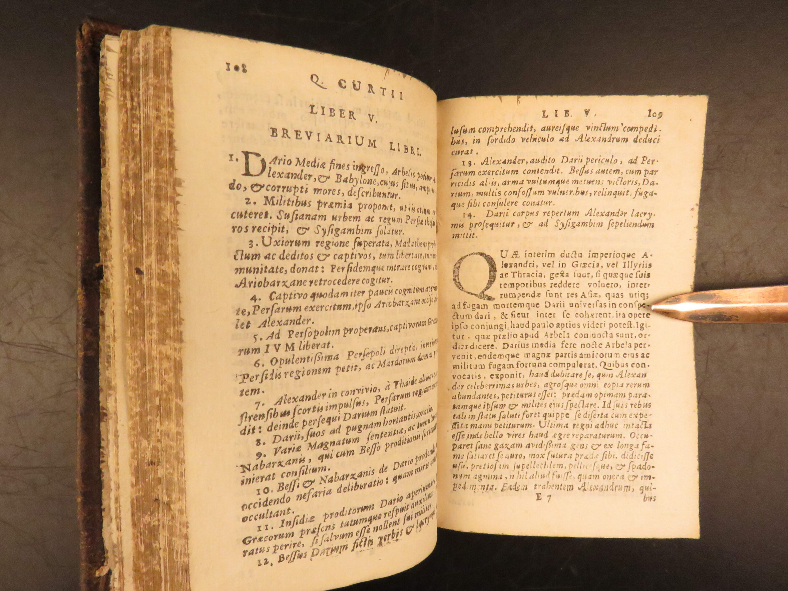 Curtius Rufus’ De Rebus Gestis Alexandri Magni, Oxford 1672, is a Latin account of Alexander the Great with folding engravings in full leather.