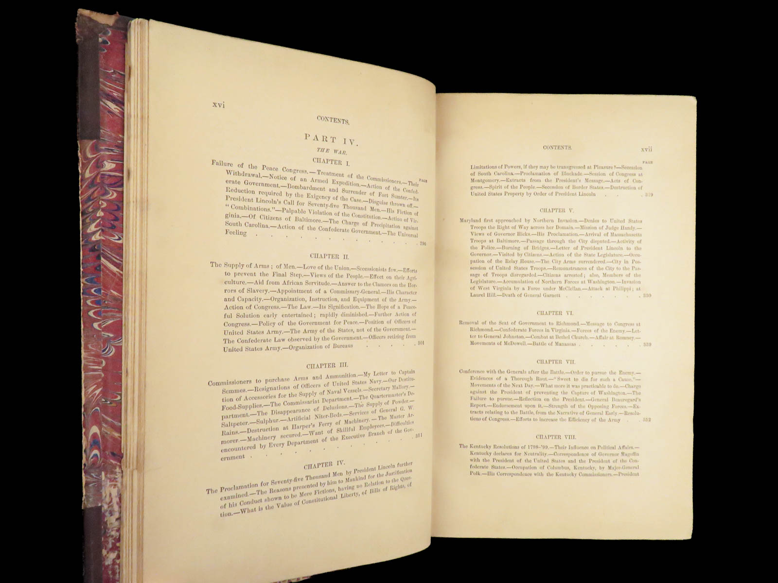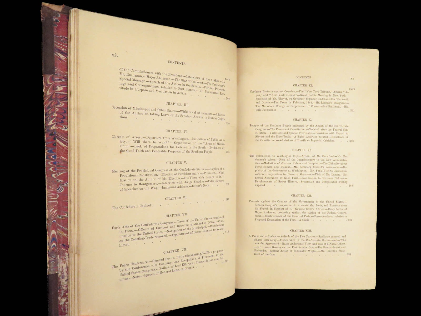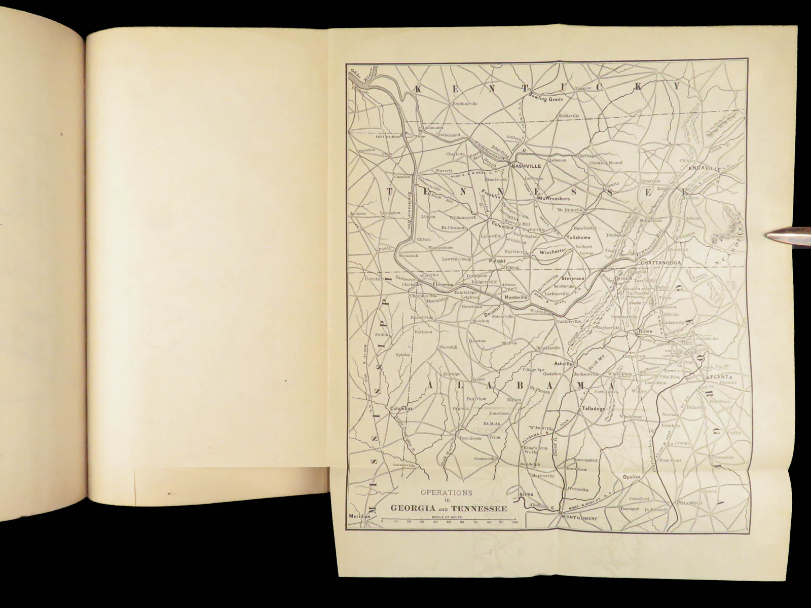First published in 1881, The Rise and Fall of the Confederate Government by Jefferson Davis appears here as a complete two-volume first edition set in original cloth bindings, with all issued illustrations and thirteen large, folding battle maps intact. Davis presents a combined personal narrative and political justification related to secession, Confederate leadership, military campaigns, and Southern politics. Prominent figures discussed include Lee, Jackson, and Calhoun, alongside detailed engraved maps covering major military operations in Virginia, Georgia, Tennessee, and the Carolinas. All components and pagination align precisely with established references, confirming the set as the correct first issue.