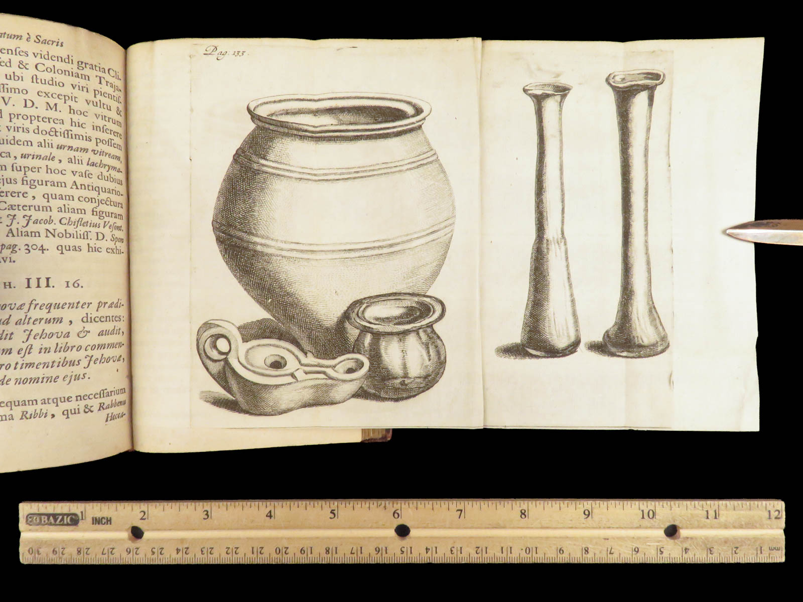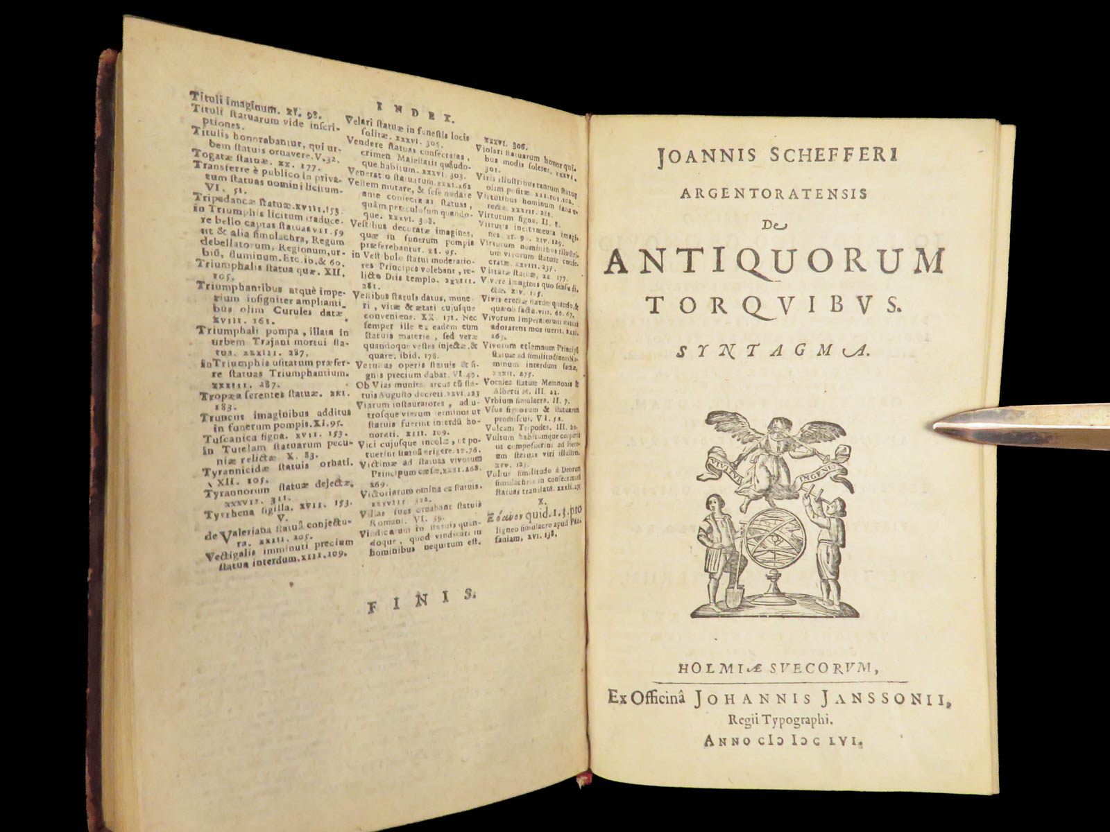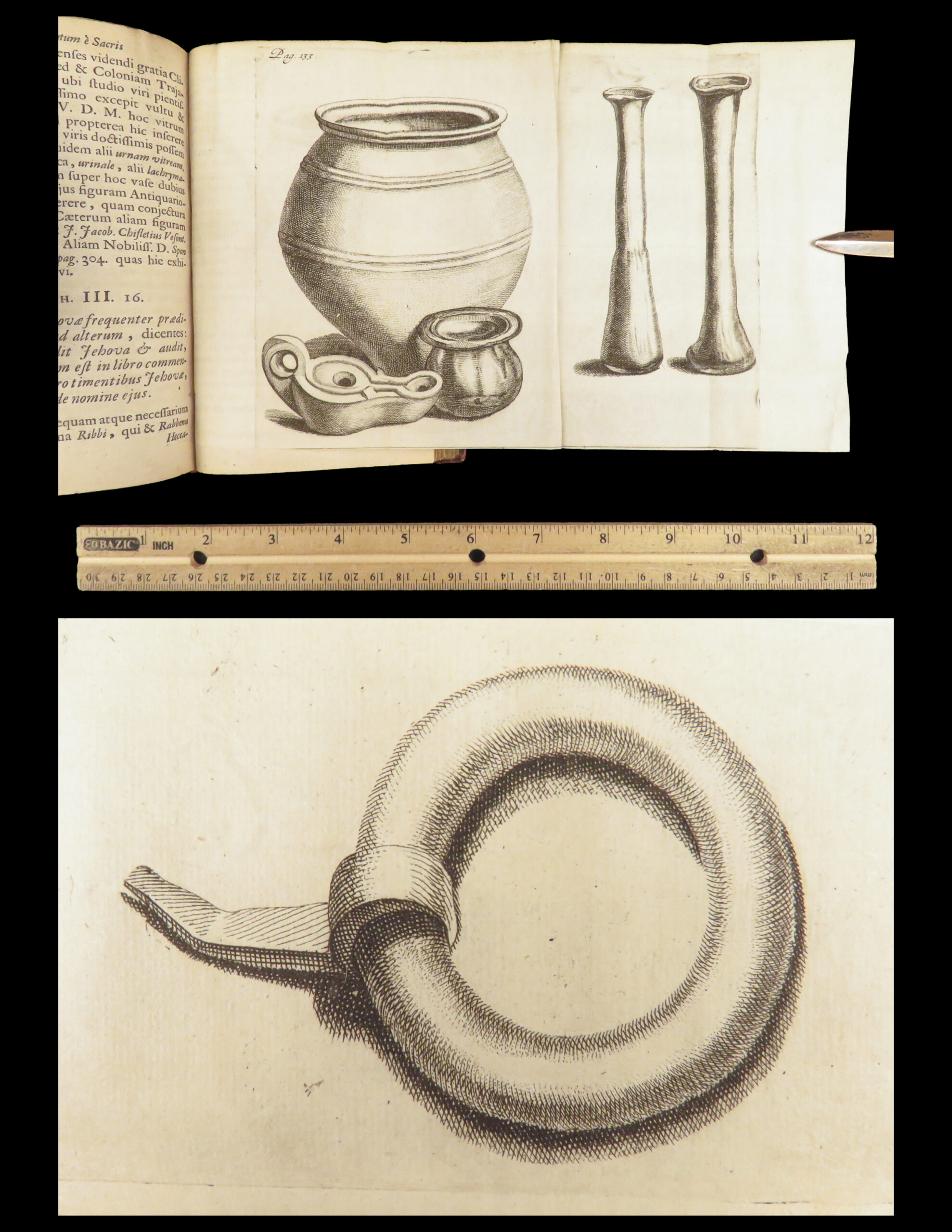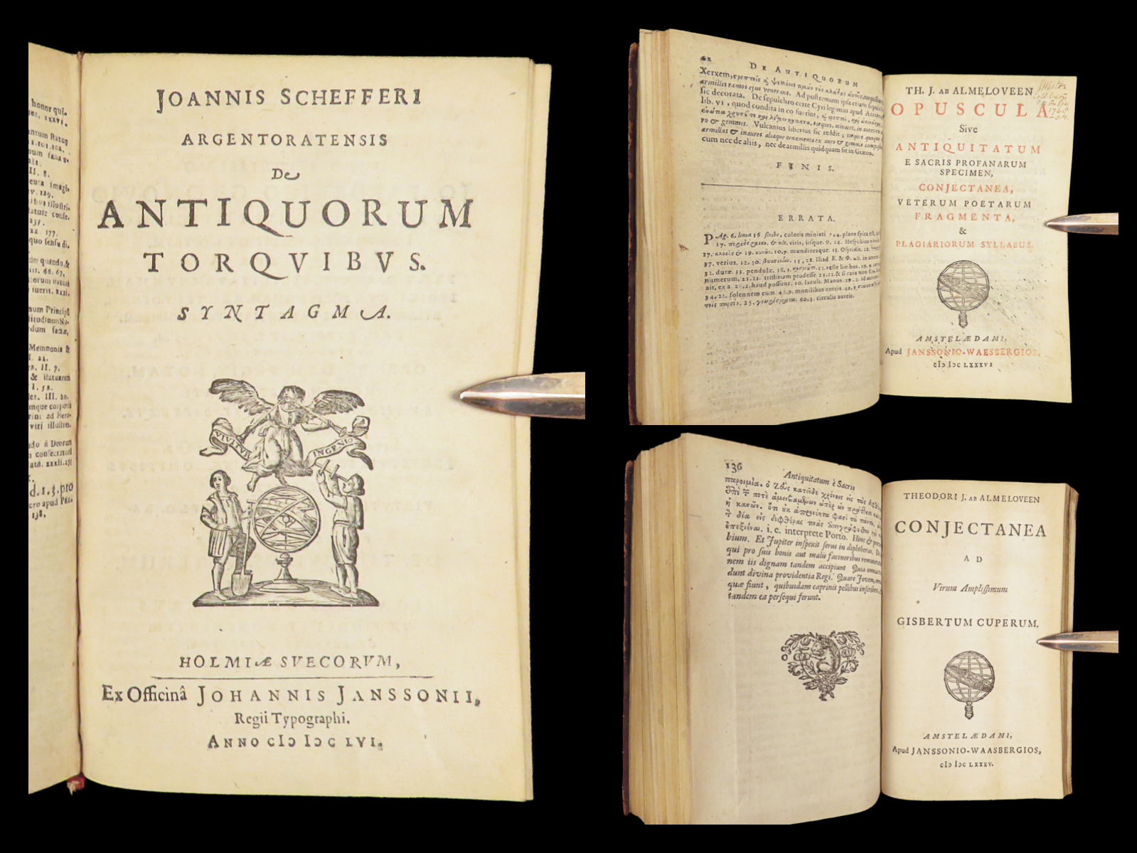 This 1656 edition is also bound with Johannes Scheffer’s De antiquorum torquibus, a study on ancient torques, or neck-rings. Scheffer describes ornamental neckwear worn by Celts, Gauls, and Romans in military and cultural traditions with references made by classical authors such as Livy, Pliny, Virgil, and Tacitus. This volume contains four folding engravings.