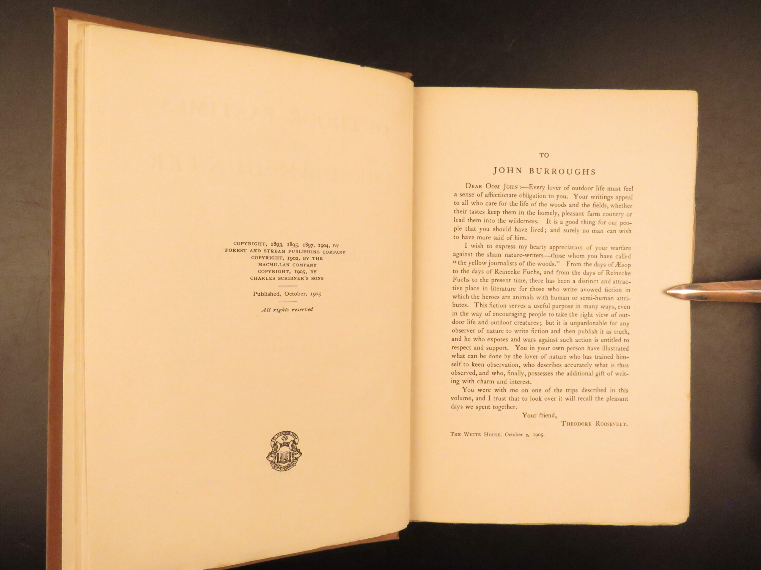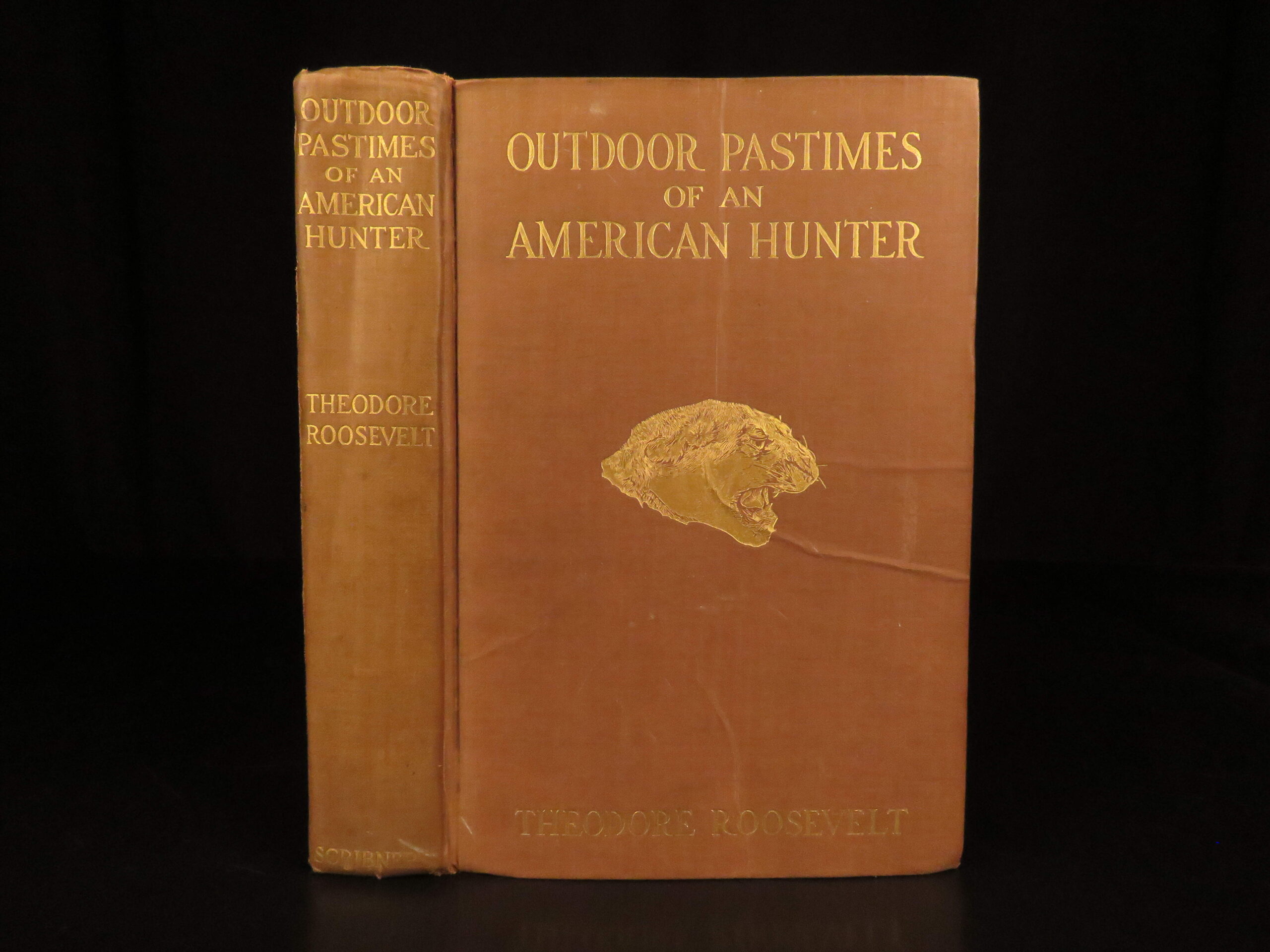 This first edition of Theodore Roosevelt’s Outdoor Pastimes of an American Hunter published in 1905 includes all 48 lithographs in the original brown cloth binding.