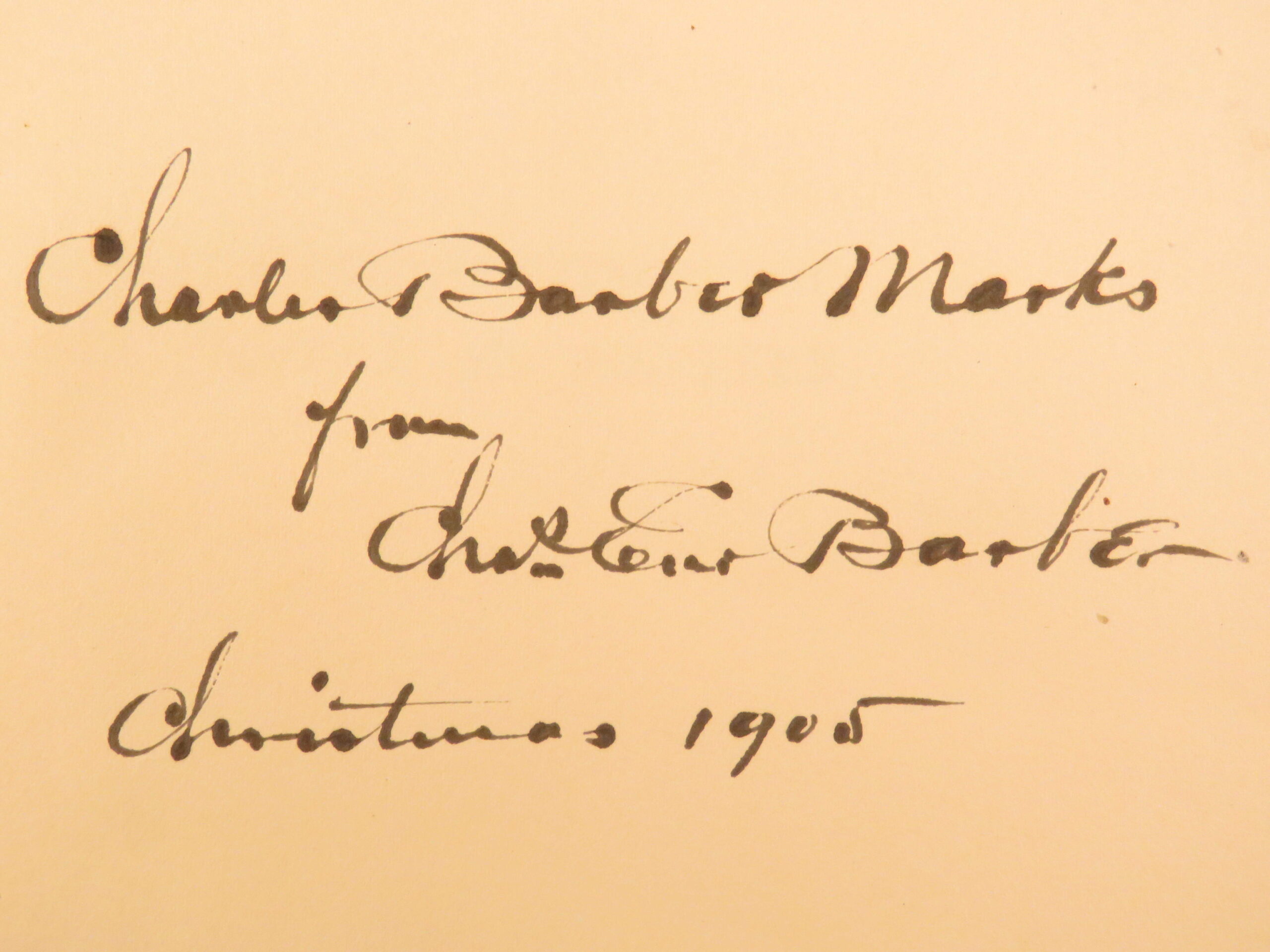 - Provenance Handwritten inscription to Charles Barber Marks (who was a first lieutenant in the US 76th Field Artillery Regiment during WWI) from Chas. [E] Barber, Christmas 1905.